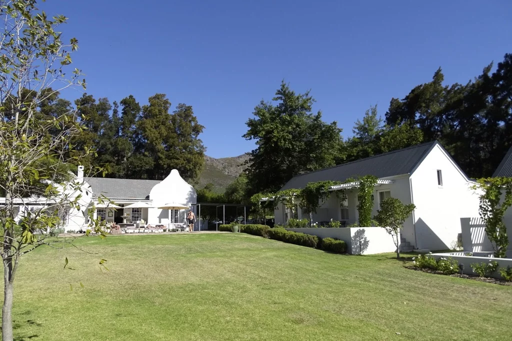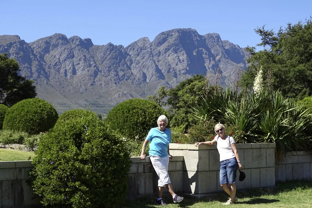 Dem Highway R43 weiter folgend passierten wir das Städtchen Worcester und von dort ging es dann den Franschhoek Pass hinauf. Von dort oben hat man einen herrlichen Blick über das Tal und die vielen Weinhänge. Welch' ein Unterschied zur wüstenähnlichen Landschaft der letzten Stunden. Jetzt war auf einmal wieder Grün die dominierende Farbe. Unsere Unterkunft heißt Lavender Guest House und liegt mitten in den Lavendelfeldern am Fuße der Berge. Ein Freudenfest für den Geruchssinn!! Kurz frischmachen und dann ab in den Ort. Nach der Fahrerei des Tages tat ein kleiner Spaziergang durch diesen hübschen Ort sehr gut. Und ein nettes Bistro für's Abendessen und eine gute Flasche südafrikanischen Wein war auch schnell gefunden.