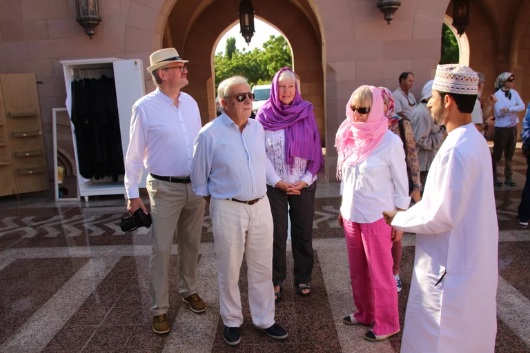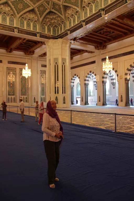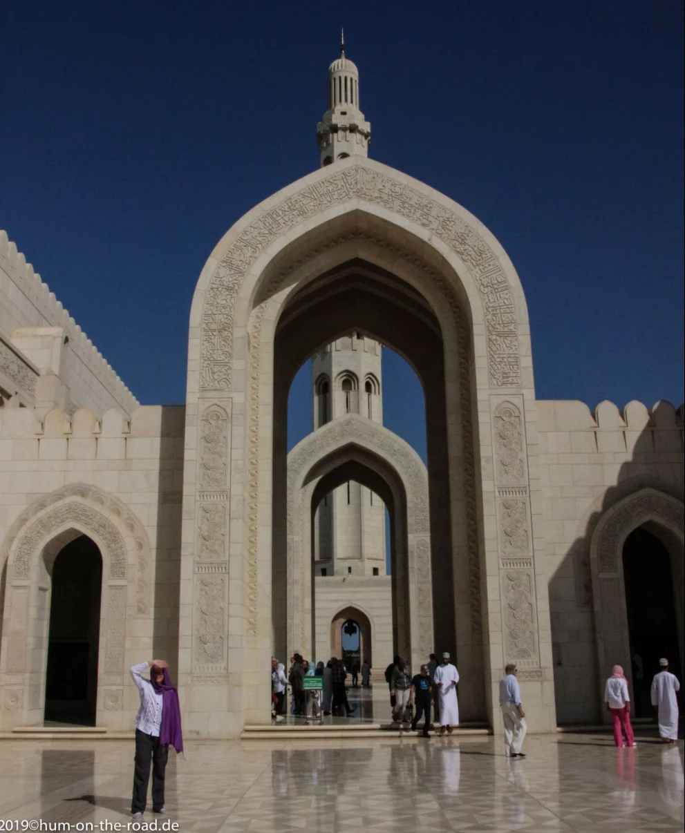 Heute morgen wurden wir um 8:30 Uhr von unserem Führer Mahid abgeholt. Der Tag war Muscat und der näheren Umgebung gewidmet. Ein absolutes Highlight war die Besichtigung der Sultan Qaboos Moschee. Sie ist die Hauptmoschee im Oman und gilt als eines der wichtigsten Bauwerke des Landes. Sie ist gleichzeitig auch eine der weltweit größten Moscheen.