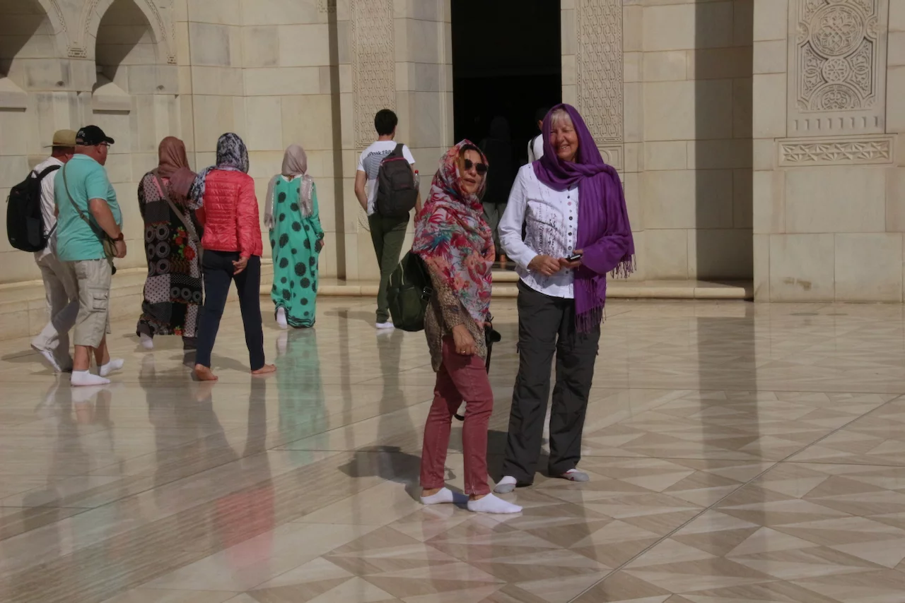 Die Superlativen dieses architektonischen Kunstwerks sind wirklich atemberaubend. Die große Männergebetshalle ist quadratisch angelegt und bietet Raum für 6.500 Gläubige. Die Frauen müssen sich mit Platz für nur 750 Gläubige mit einer deutlich kleineren, aber nicht weniger kunstvoll gestalteten Gebetshalle zufrieden geben.