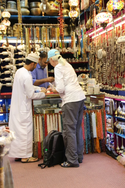 Auf dem Matrah Souq trafen wir dann auf eine Mischung aus Alt und Neu – Hier gibt es nichts was es nicht gibt, dazu orientalische Klänge und exotische Düfte im Überfluss. Die Händler sprechen einen zwar an, sind aber ansonsten sehr zurückhaltend. Das haben wir in Ländern wie Tunesien, Marokko oder Dubai schon ganz anders erlebt. Lottchen hat Postkarten gekauft und nach "heftigem" Handeln 1 Omani-Real = 2,30 Euro und die Briefmarken rausgeschlagen.