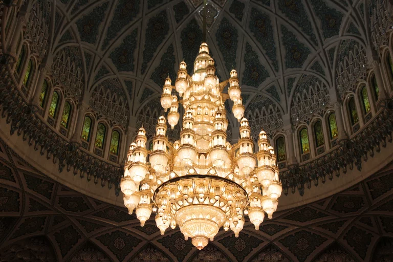 Über dem Raum wölbt sich eine 50 m hohe, reichverzierte Kuppel, in deren Mitte einer der größten Lüster der Welt hängt. Seine Grundkonstruktion besteht aus vergoldetem Metall. Er misst 8 × 14 m, trägt 1.122 Lampen, ist reich mit Swarovski-Kristallen behängt und wiegt 8 Tonnen. Der Blick von unten auf dieses Meisterwerk ist einfach atemberaubend.