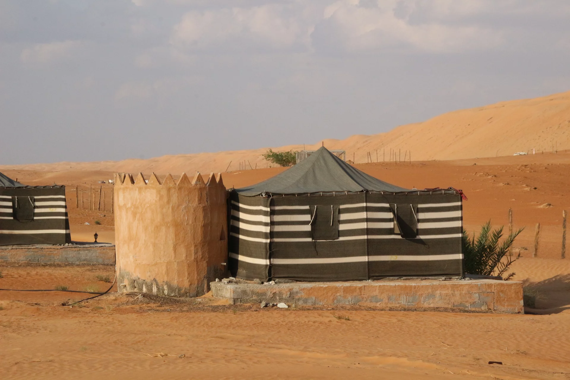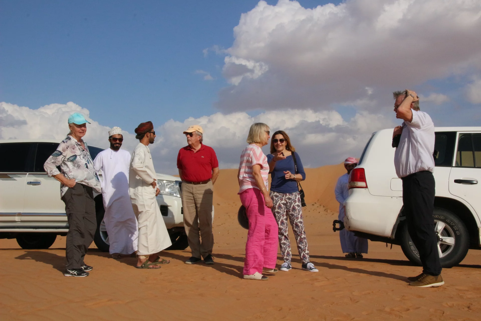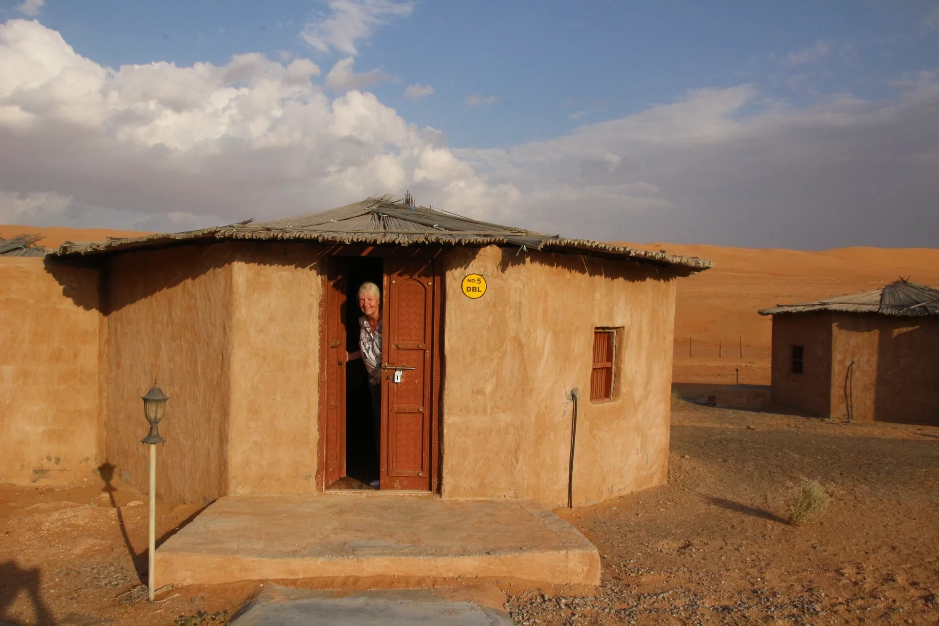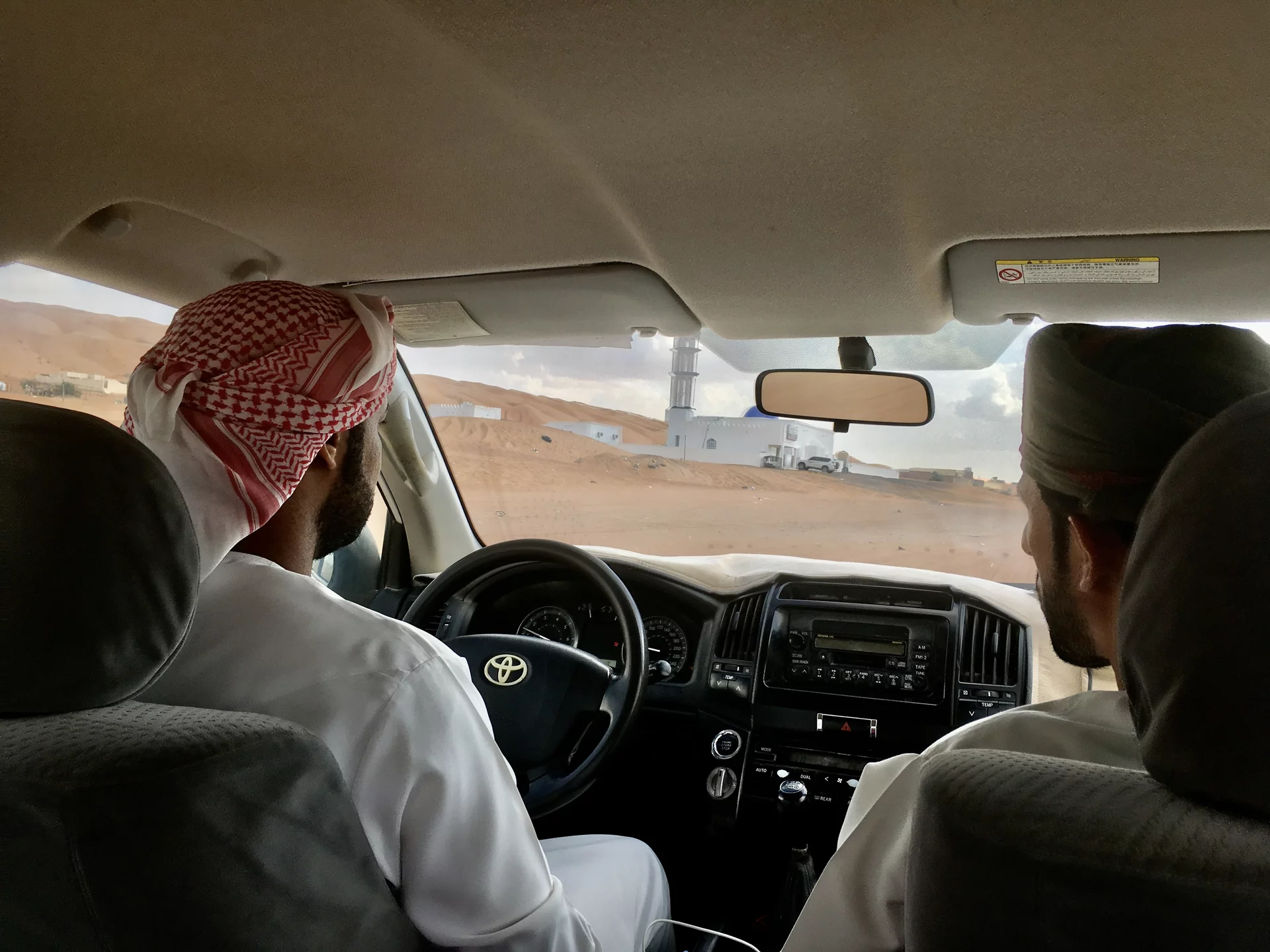 Das richtige Abenteuer begann dann gegen Mittag. An einer Tankstelle vor den Toren der Wüste in der Stadt Biddiyah wurden zunächst die Fahrzeuge gewechselt. Mit großmotorigen Allradfahrzeugen ging es dann zunächst in die Wüste zu einem Beduinen Camp. Nach einem herzlichen Empfang, traditionell mit Datteln und omanischem Kaffee oder Tee, gab es ein leckeres Mittagessen. Danach ging es weiter zum Safari Desert Camp, unserer Unterkunft für eine Nacht. Auf dem Weg dorthin bekamen wir bereits einen kleinen Vorgeschmack darauf, was es heißt, durch die Dünen zu “heizen”.