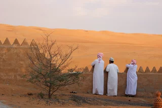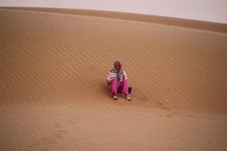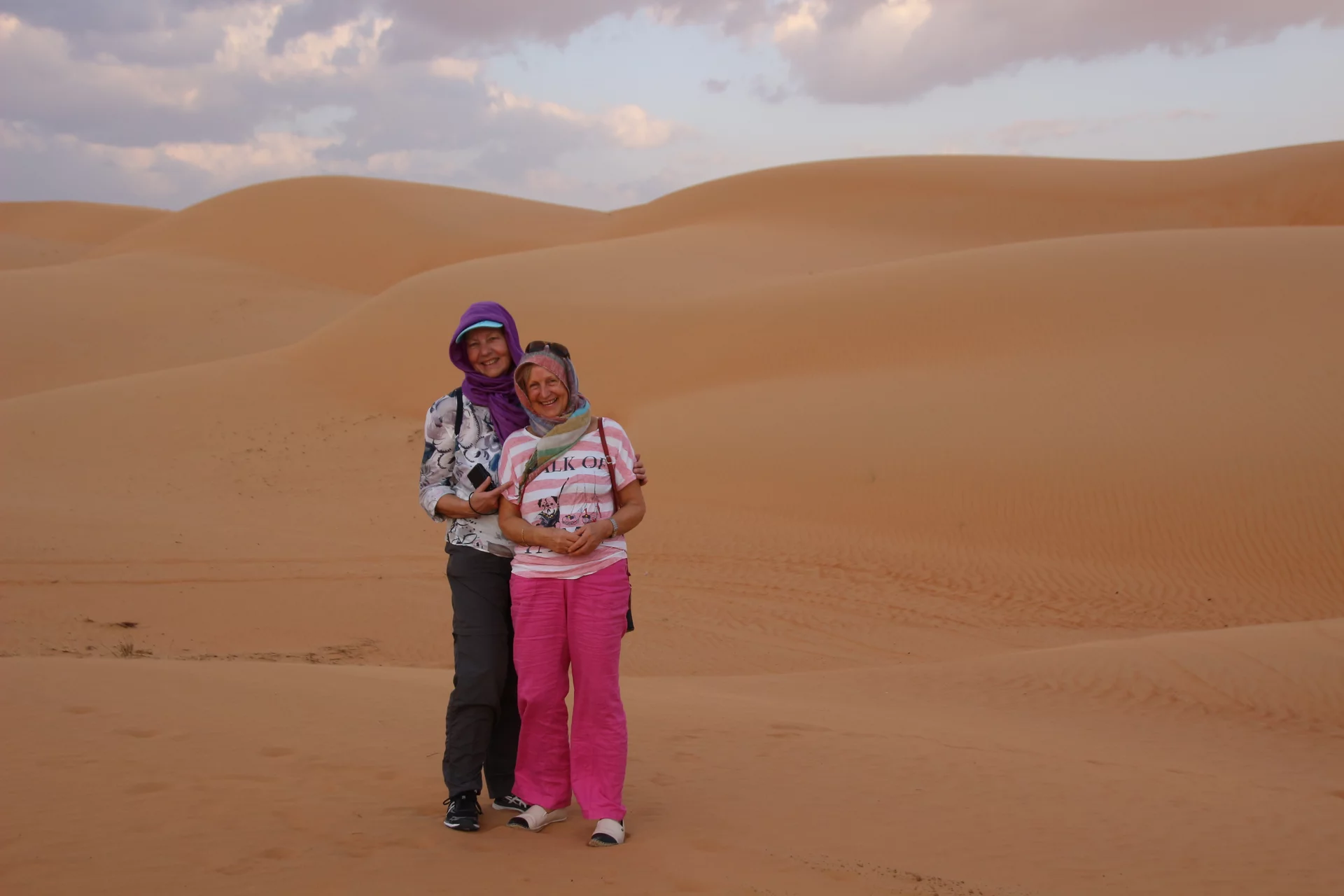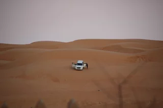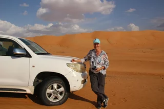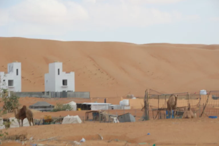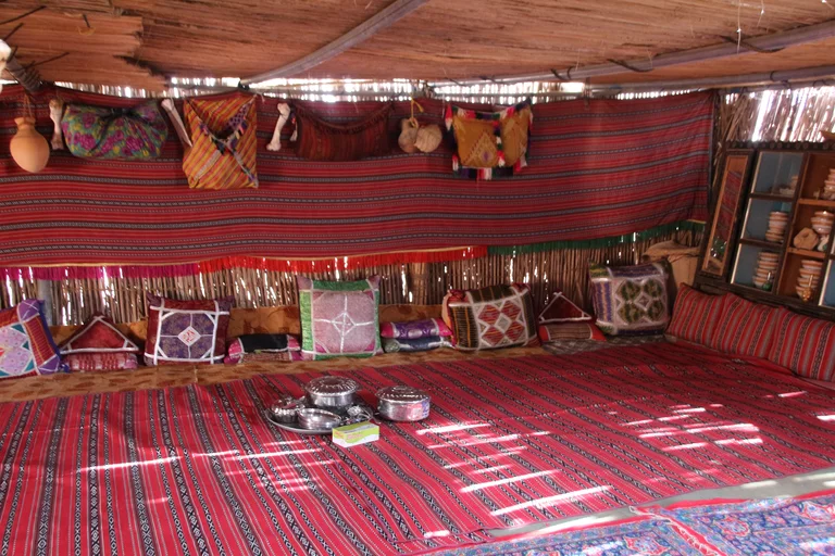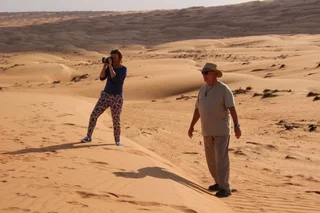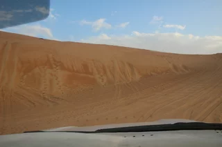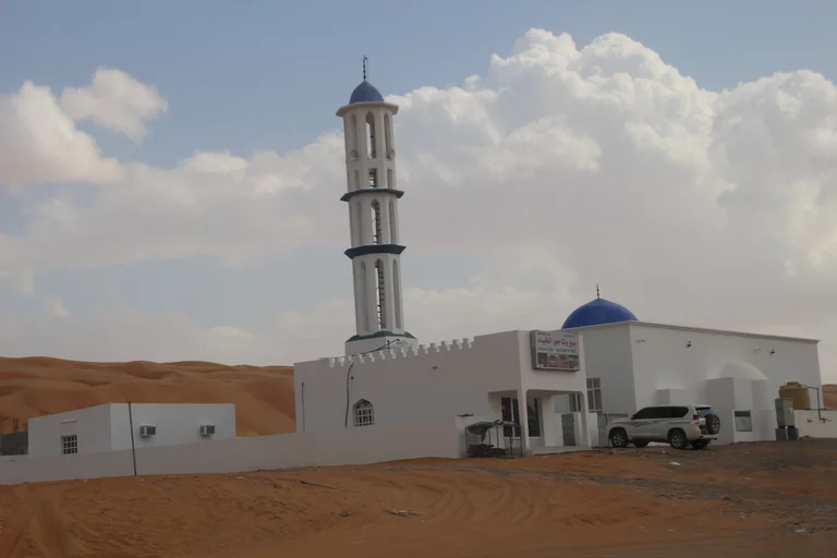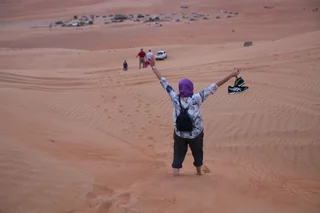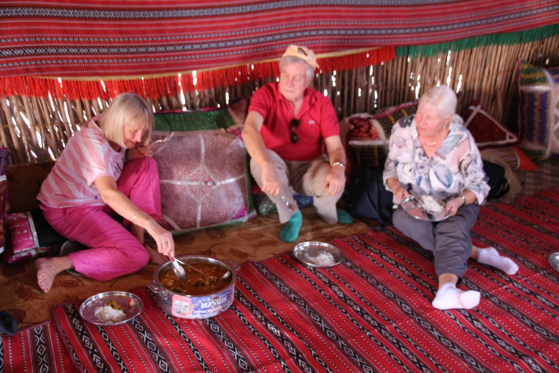 Das richtige Abenteuer begann dann gegen Mittag. An einer Tankstelle vor den Toren der Wüste in der Stadt Biddiyah wurden zunächst die Fahrzeuge gewechselt. Mit großmotorigen Allradfahrzeugen ging es dann zunächst in die Wüste zu einem Beduinen Camp. Nach einem herzlichen Empfang, traditionell mit Datteln und omanischem Kaffee oder Tee, gab es ein leckeres Mittagessen. Danach ging es weiter zum Safari Desert Camp, unserer Unterkunft für eine Nacht. Auf dem Weg dorthin bekamen wir bereits einen kleinen Vorgeschmack darauf, was es heißt, durch die Dünen zu “heizen”.