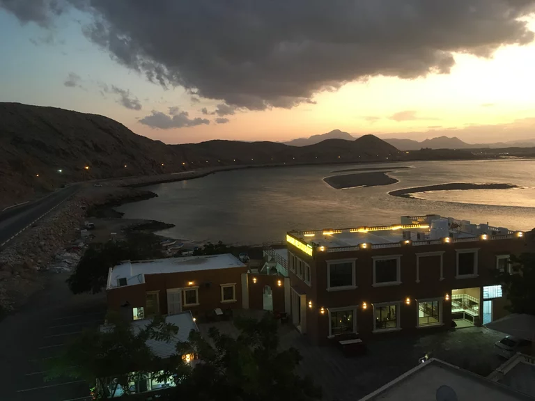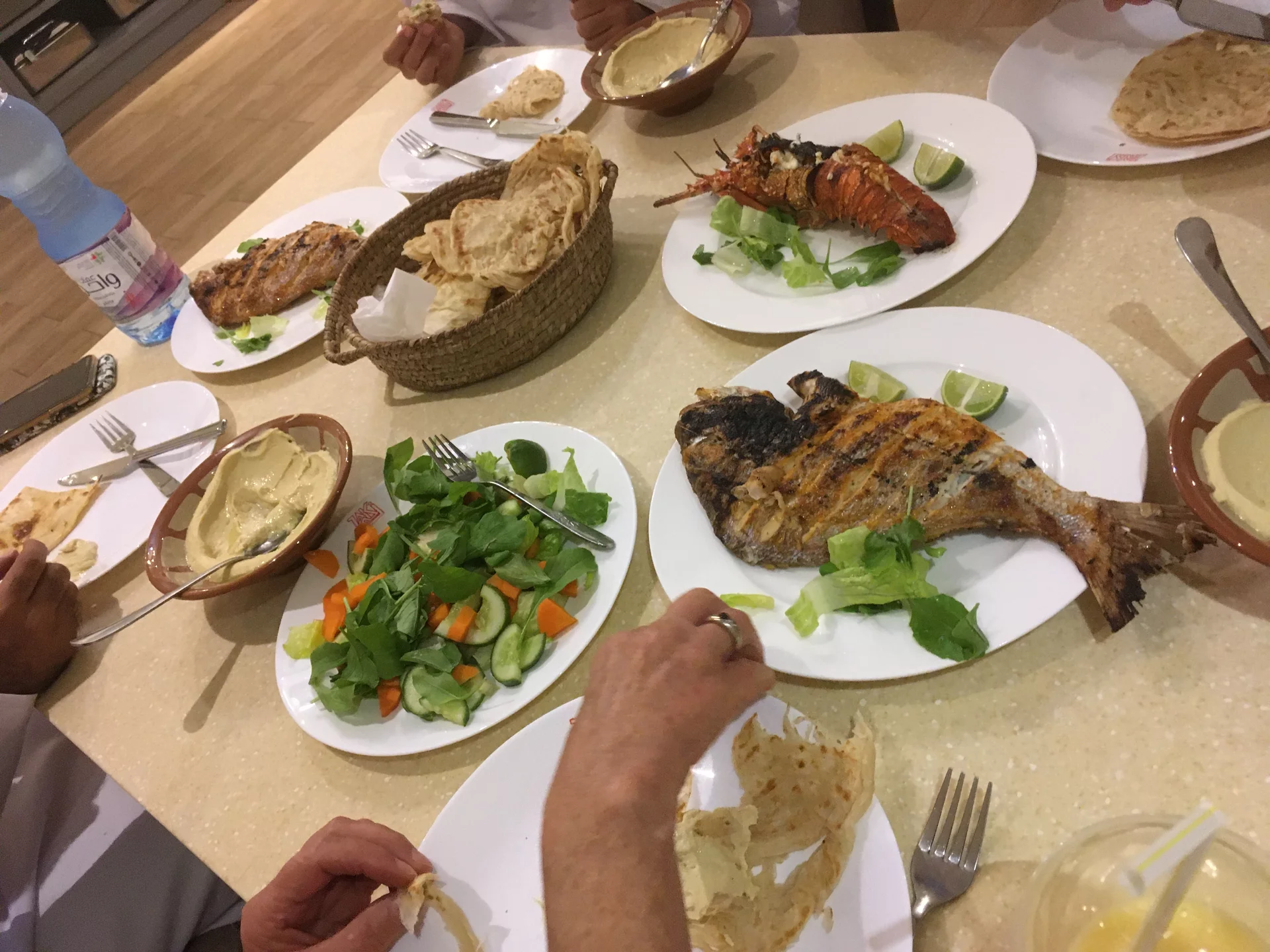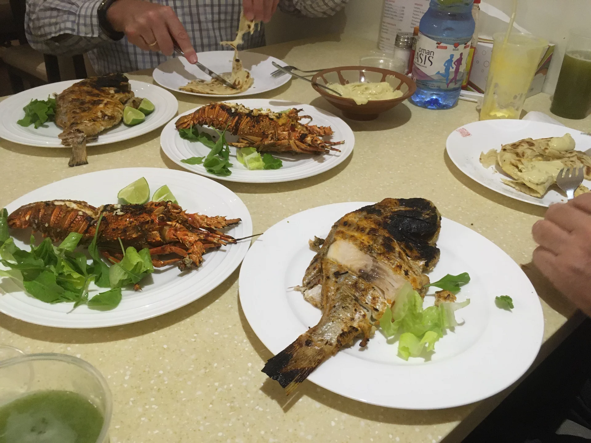 Zum Dank für die Lebensrettung des Fisches gab es dann zum Ende unserer Bootsfahrt von Allah noch einen schönen Sonnenuntergang. Dann erwartete uns noch ein sehr leckeres omanisches Buffet zum Abendessen