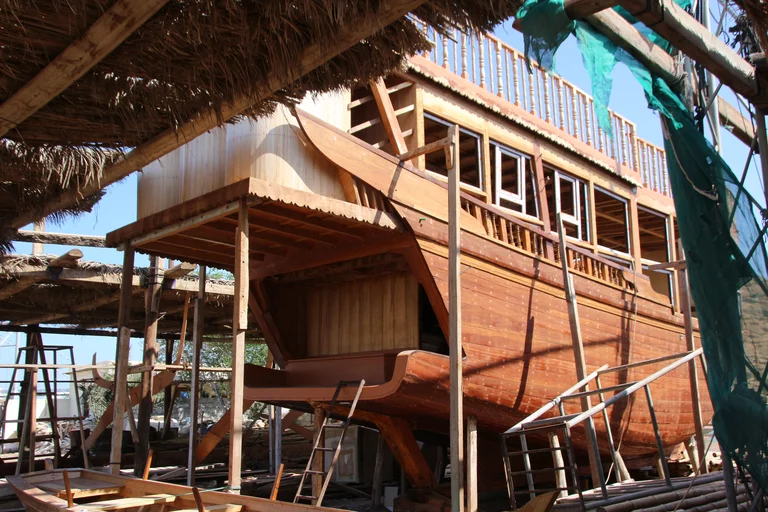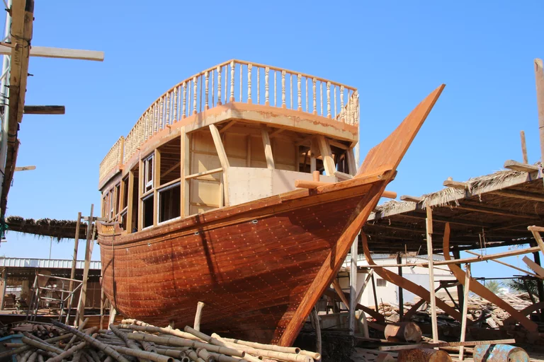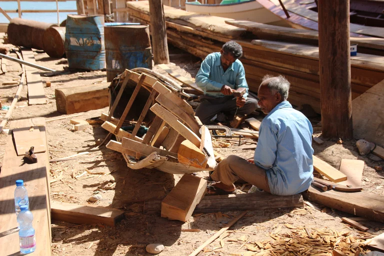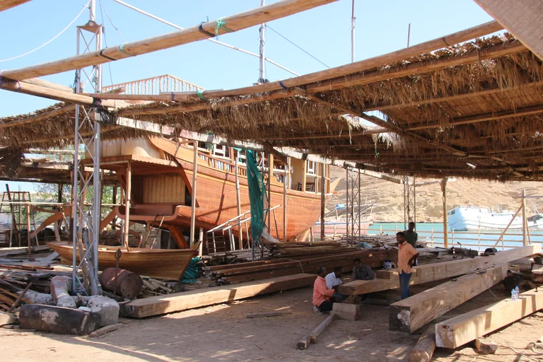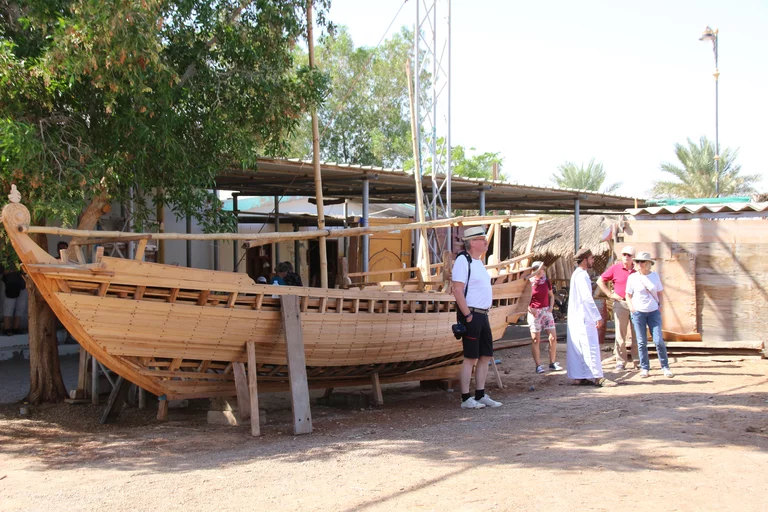 Damit die traditionelle Handwerkskunst des Holzschiffbaus nicht vollends ausstirbt, erhält der Staat 3 Dhauwerften, die sich einen Standort teilen, am Leben. Zur Zeit werden für den Irak 13 größere Dhau-Segler gebaut. Ein interessanter Aspekt dabei ist, dass die Arbeiter fast alle aus Bangladesh kommen, denn sie arbeiten für ein Drittel des Geldes, was ein Omani bekommen würde. Deutschland ist an diesem Projekt übrigens auch beteiligt, denn die Fenster der Schiffe werden von der Firma Bauplast geliefert.