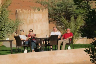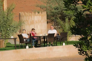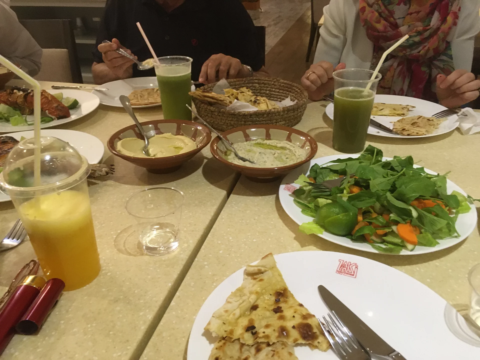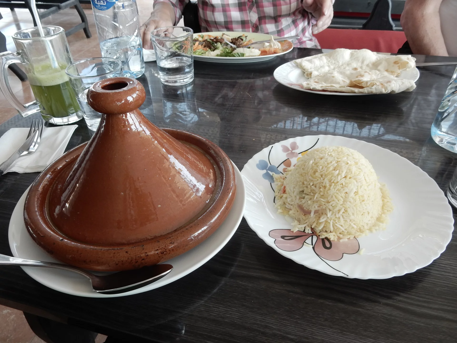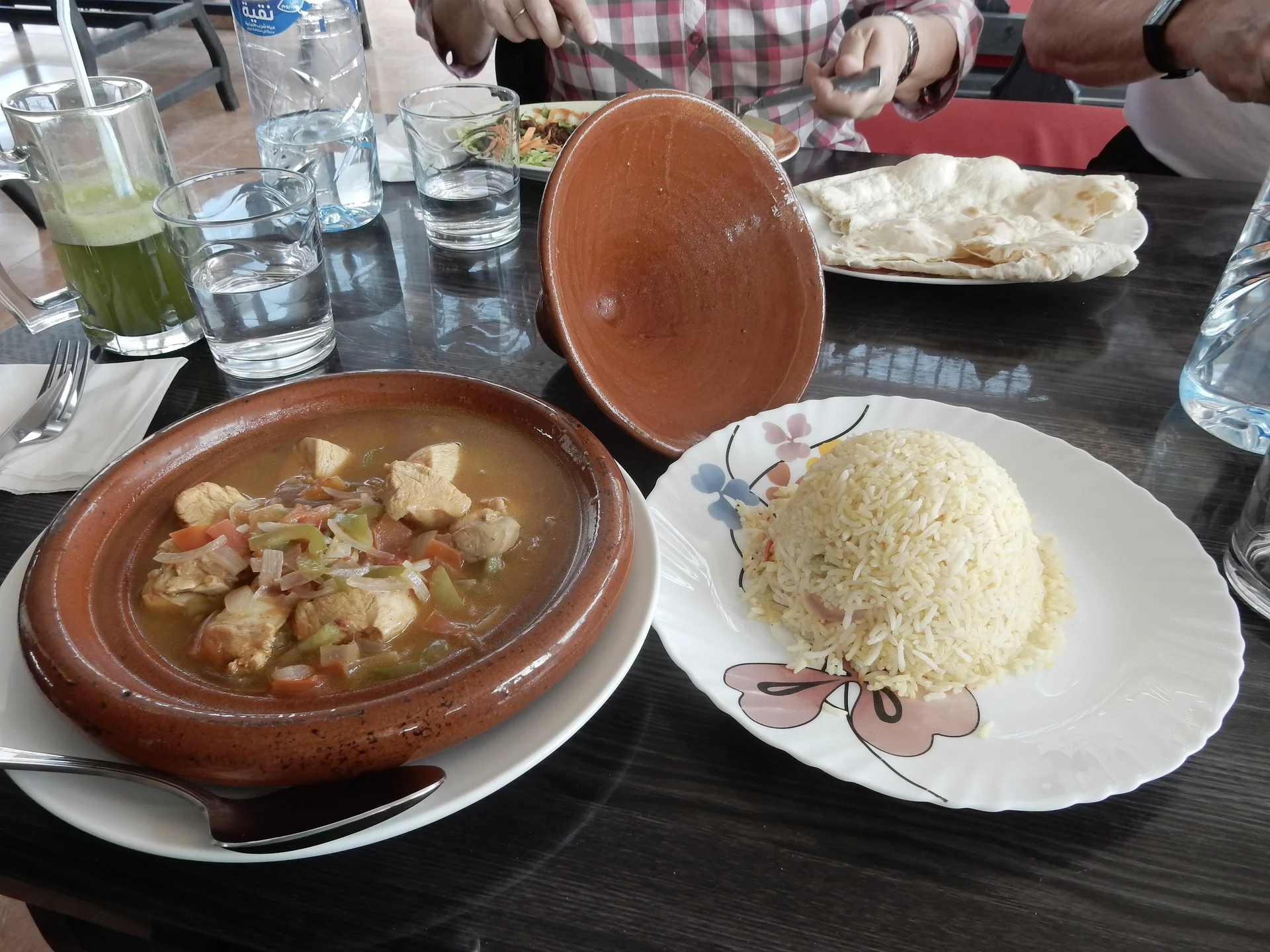 Im Hotel gab es dann ein indisch/omanisches Mittagessen. Traditionell gehört dazu zumeist Reis und dünnes Fladenbrot. Meine Wahl fiel auf einen Hühnertopf mit Gemüse, nachdem mir der Kellner versichert hatte, dass dieses Gericht wirklich "non-spicy" = nicht scharf sei. Müßig zu erwähnen, dass es mir bereits nach der zweiten Gabel den Schweiß auf die Stirn trieb. Trotzdem war es sehr lecker, wie eigentlich alles, was wir bisher hier gegessen haben. Hin und wieder mal ein kühles Bier oder ein Glas Wein zum Essen wäre nicht schlecht. Aber dafür sind wir einfach im "falschen" Land.