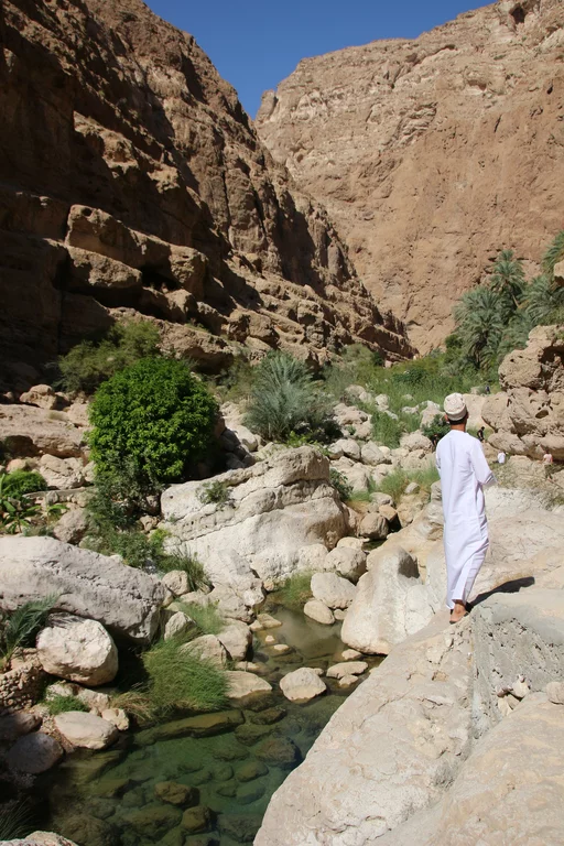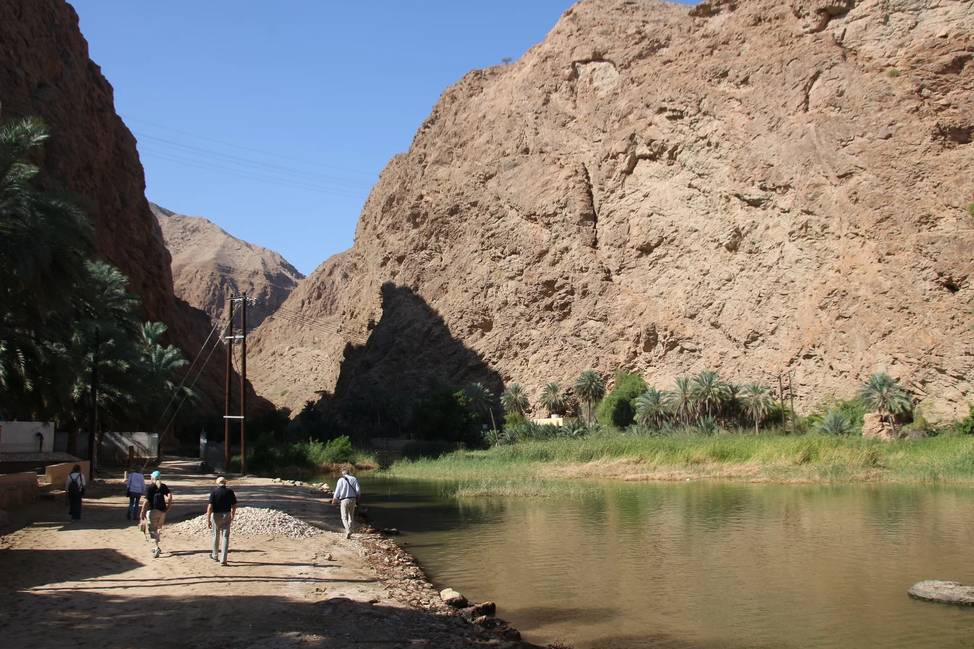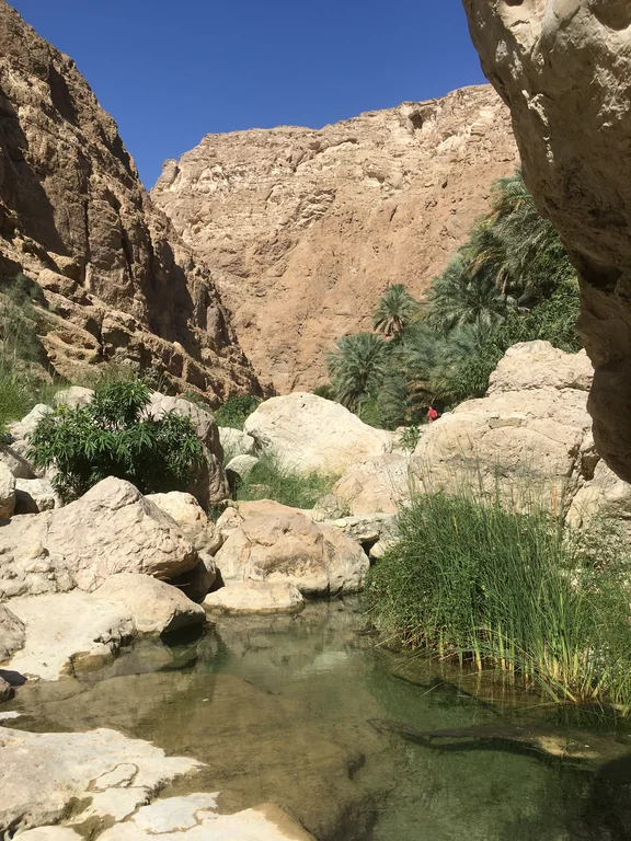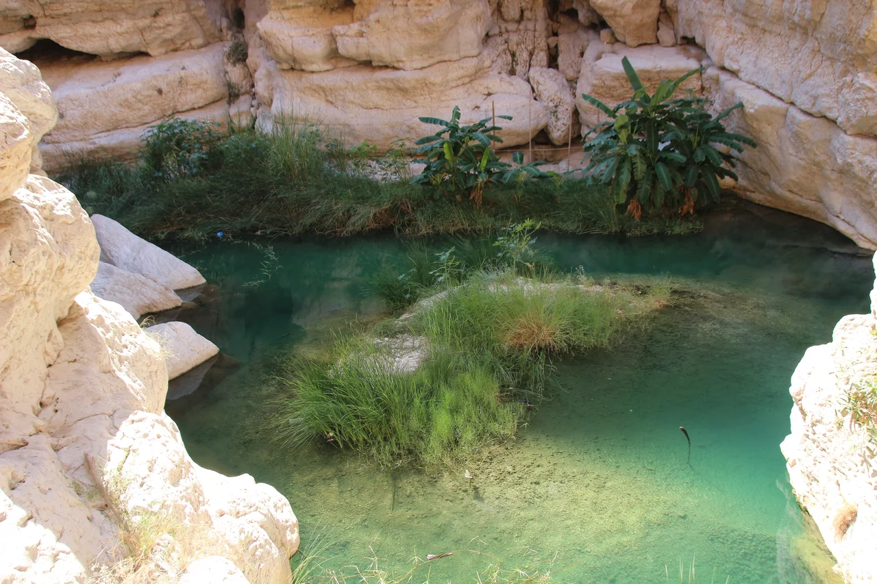 Ungefähr 40km von Sur entfernt liegt das Wadi al-Shab. Es zählt mit seinen senkrecht aufstrebenden Felswänden, smaragdgrünen Palmen und türkisblauen Pools zu den 10 schönsten Wadis im Oman.