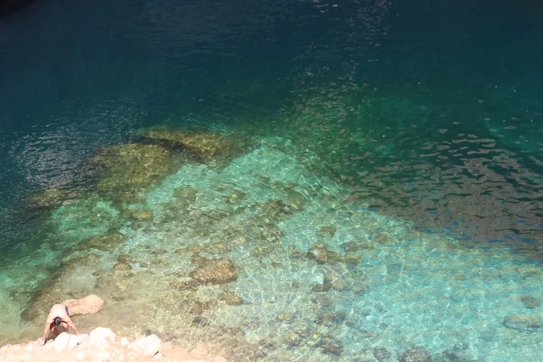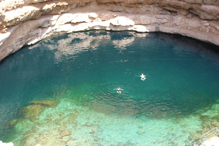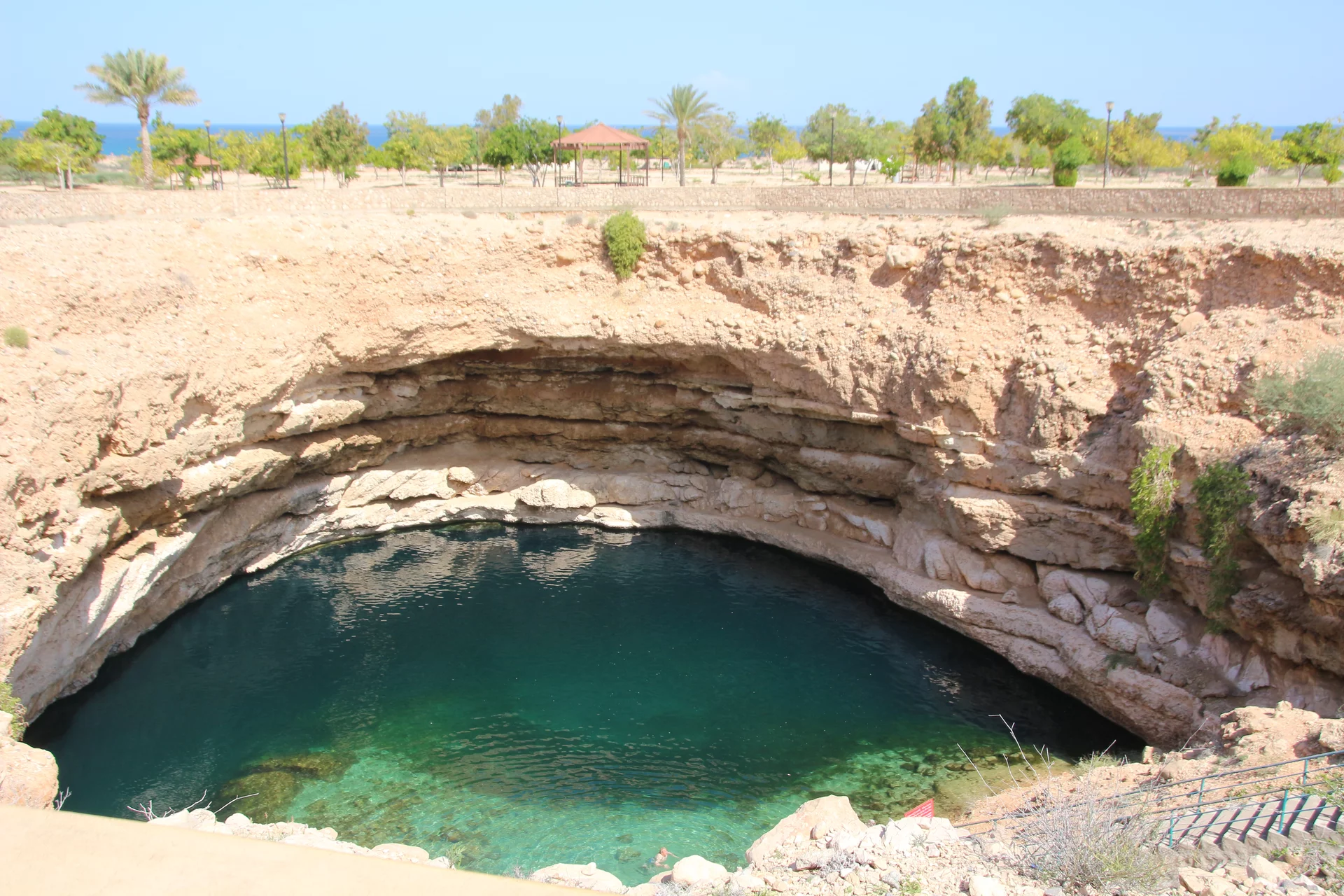 Einheimischen Geschichten nach zu urteilen, soll ein Meteorit einst einen 40 Meter großen Krater in die Küstenregion des Omans geschmettert haben - tief genug, um das türkisblaue Meerwasser zum Vorschein zu bringen, das sich hier mit Grundwasser vermischt.
