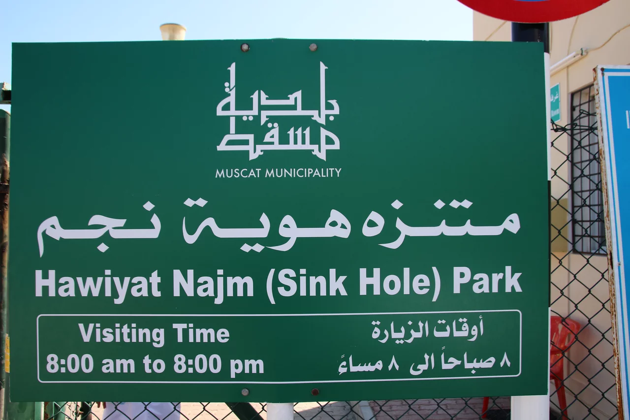 Lediglich 600 Meter trennen die nordöstliche Küste des Omans von dieser wundersamen Sinkhöhle nahe der Ortschaft Bimmah. Der Sandstein-Krater wird von dem kleinen Hawiyat Najm Park mit Sitzgelegenheiten, Parkplätzen und Toiletten umgeben.