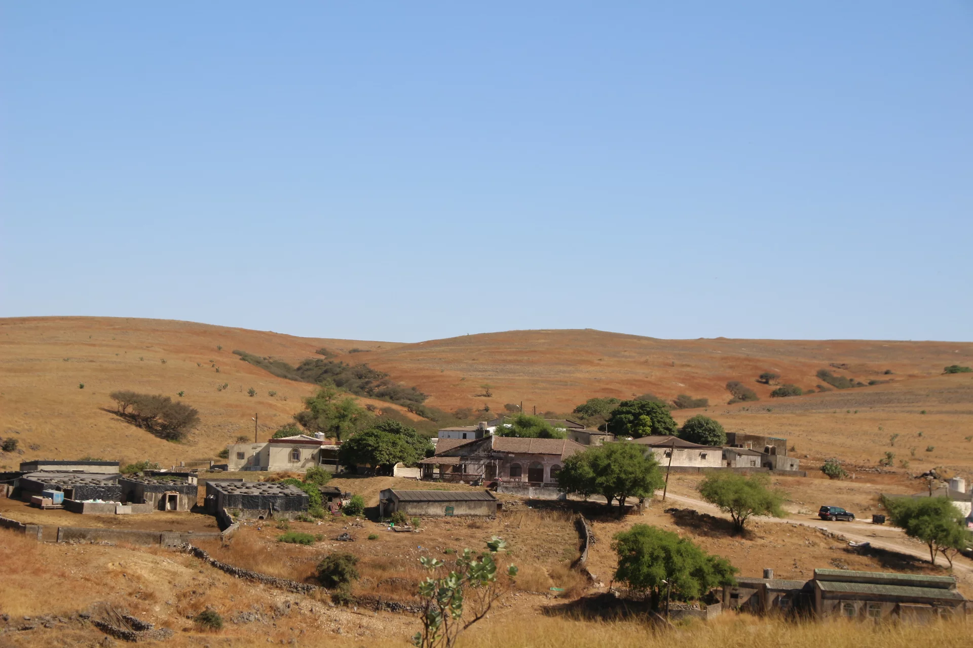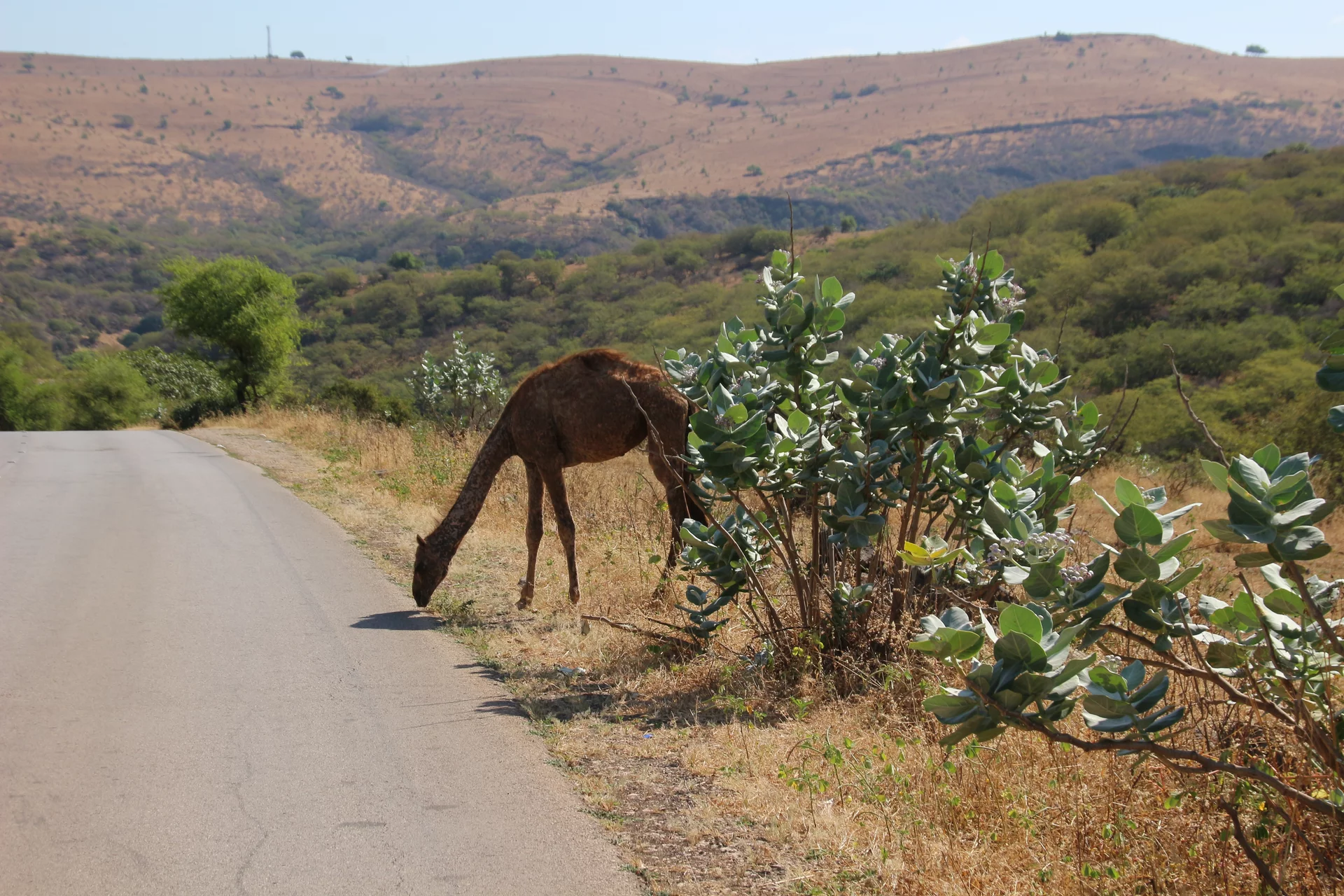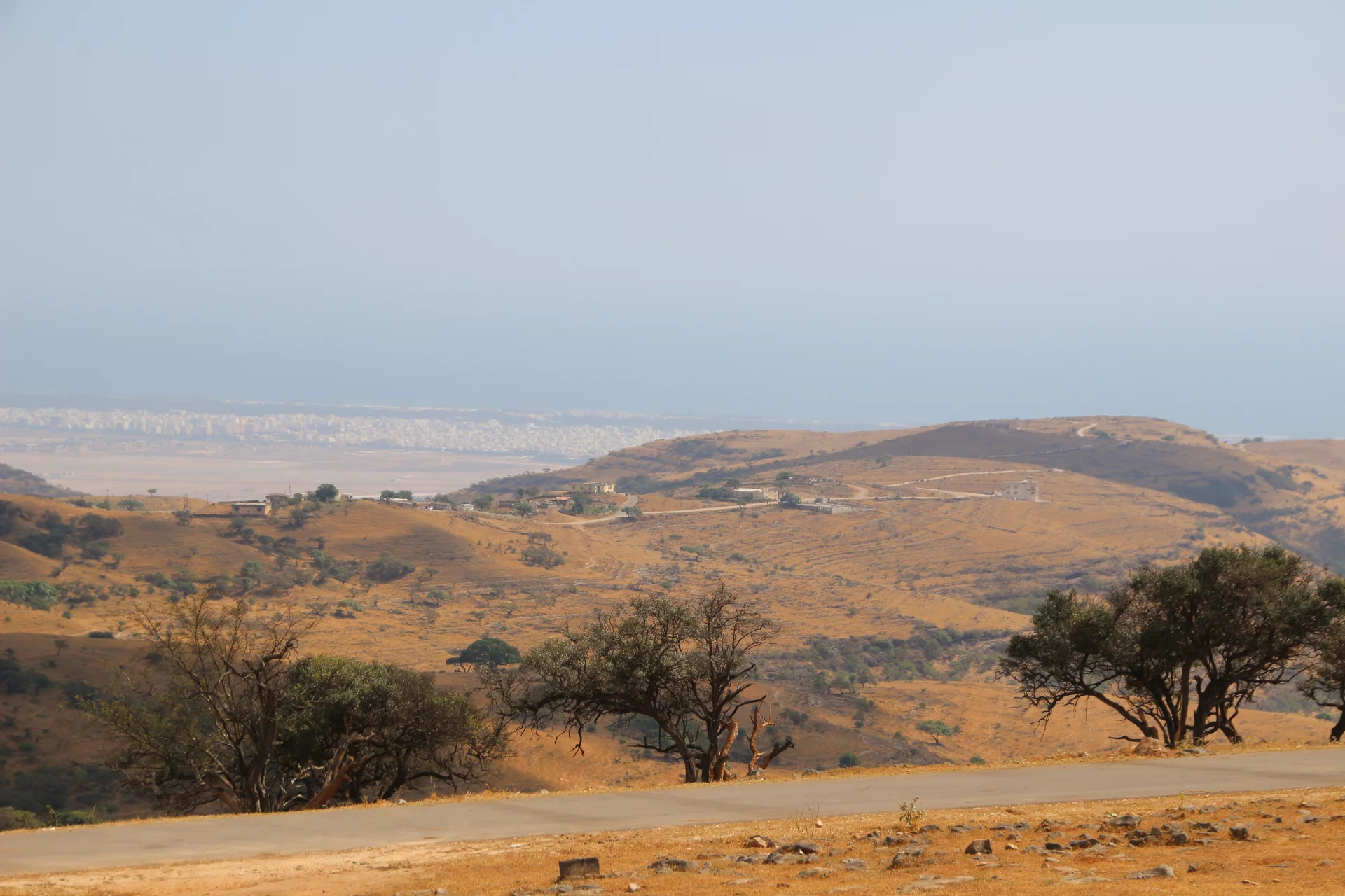 Mussallem Hassan, unser Reiseleiter wie er sich selber nennt, hatte aber ein wenig am geplanten Programm "gedreht" und brachte uns anstelle eines Dorfes der Jebalis zur Kamel- und Ziegenfarm seines Onkels. In seinem großen Toyota-Geländewagen ging es auf schmaler werdenden Straßen durch mehr oder weniger idyllische Dörfer aufwärts in das Qara-Gebirge. Die Straßen muß man sich allerdings mit frei laufenden Dromedaren teilen, von denen es in der Gegend mit über 150.000 fast soviel gibt wie Einwohner. Kein Wunder, dass sie oft die Straße blockieren und wir immer wieder um bedächtig malmende Kiefer Slalom fahren mussten. Und weil auch jede Menge Kühe unterwegs sind, führt das gelegentlich zu tierischen Staus.