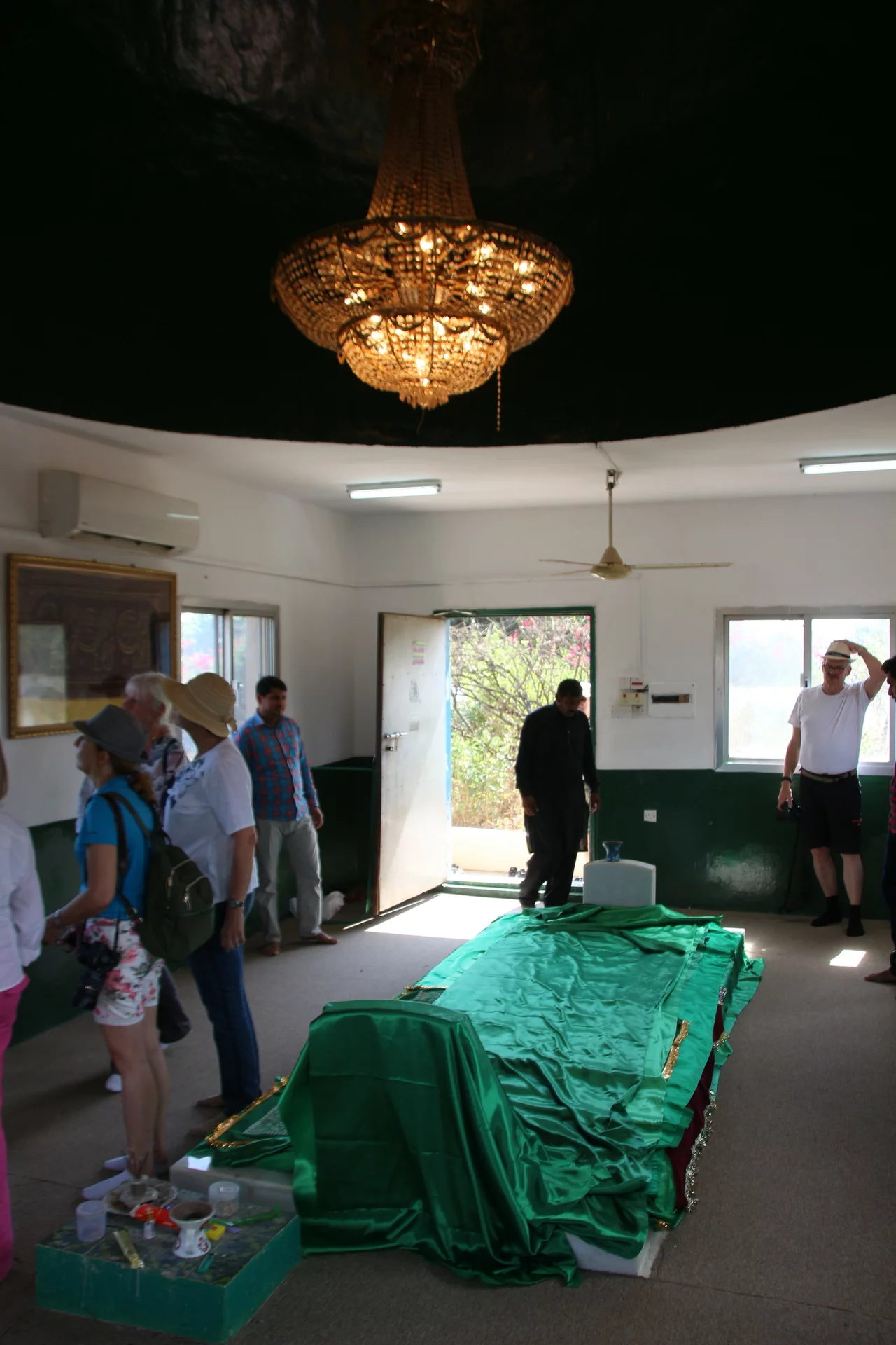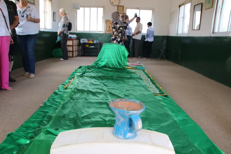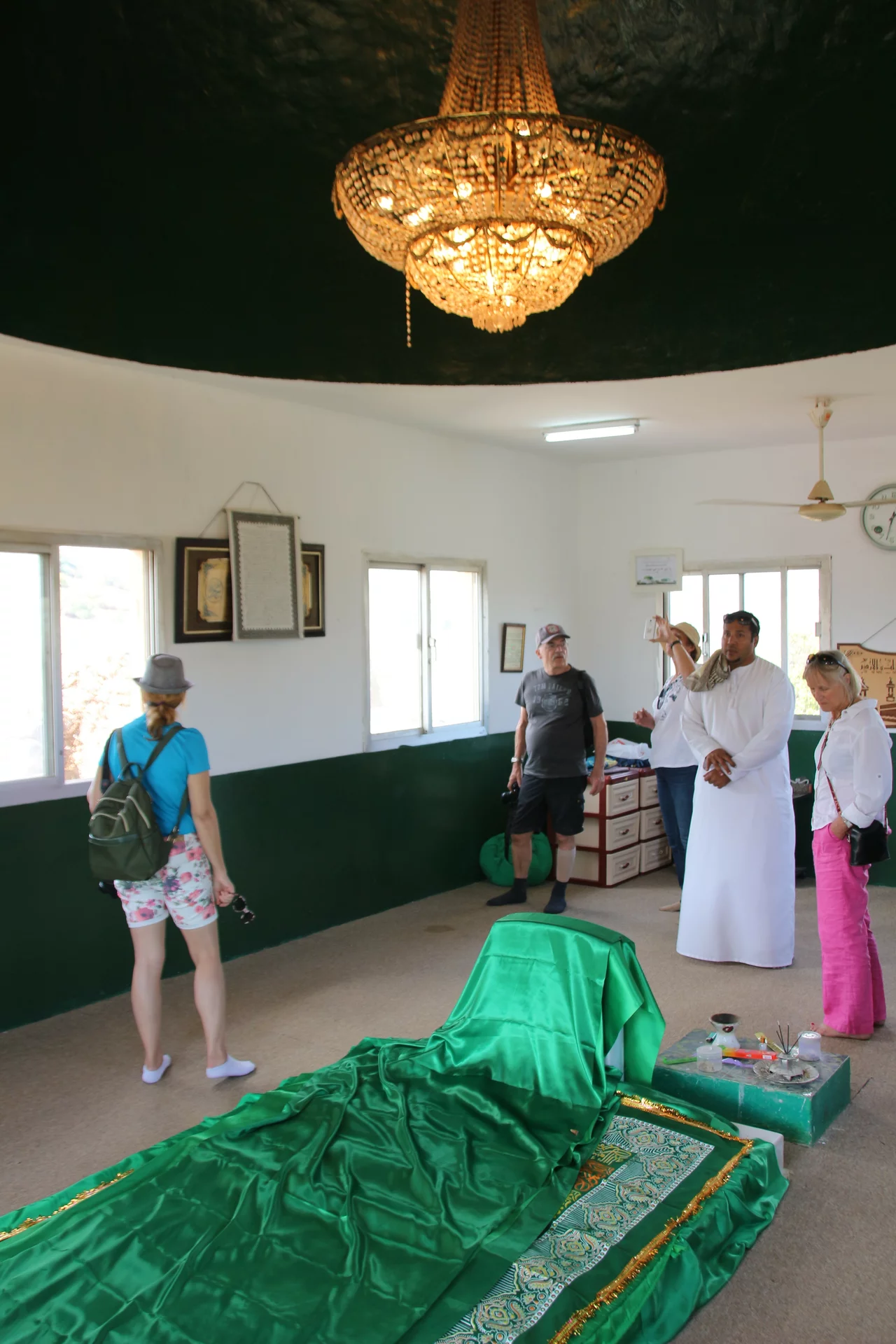 Unser Weg führte uns dann aus der Wüste wieder in grünere Gefilde. Das nächstes Ziel war das Mausoleum von Nabi Ayoub, wie er im Koran genannt wird. In der Bibel ist er als Hiob bekannt. Grüne Mangobäume, Akazien und Oleander umgeben die kleine Moschee, welche dringend einen neuen Anstrich benötigt. Immerhin ist das Grab eine bedeutende Pilgerstätte für Muslime und Christen gleichermaßen. Gemessen an der religiösen Bedeutung wirkt das Mausoleum fast ein wenig ärmlich.