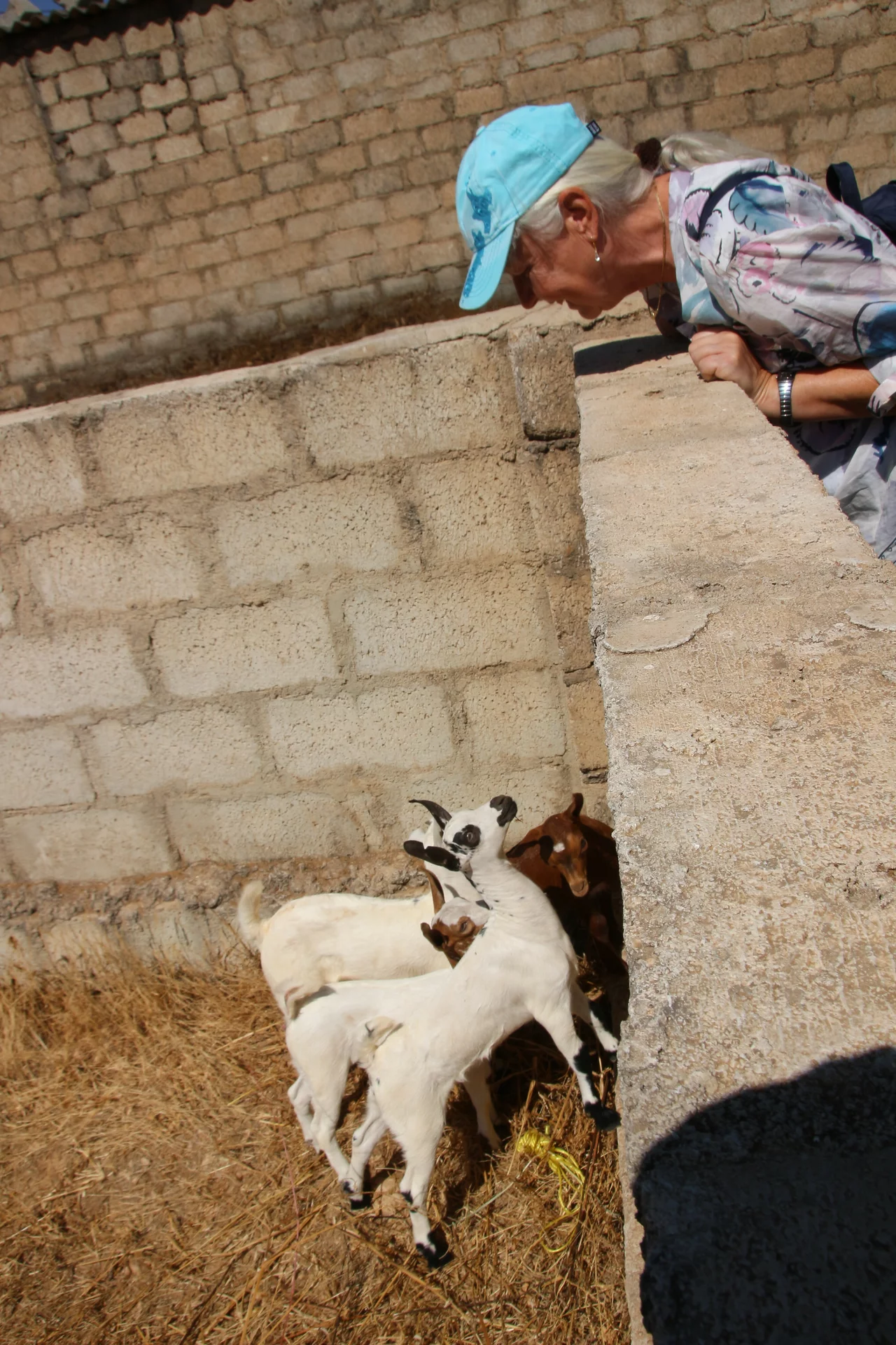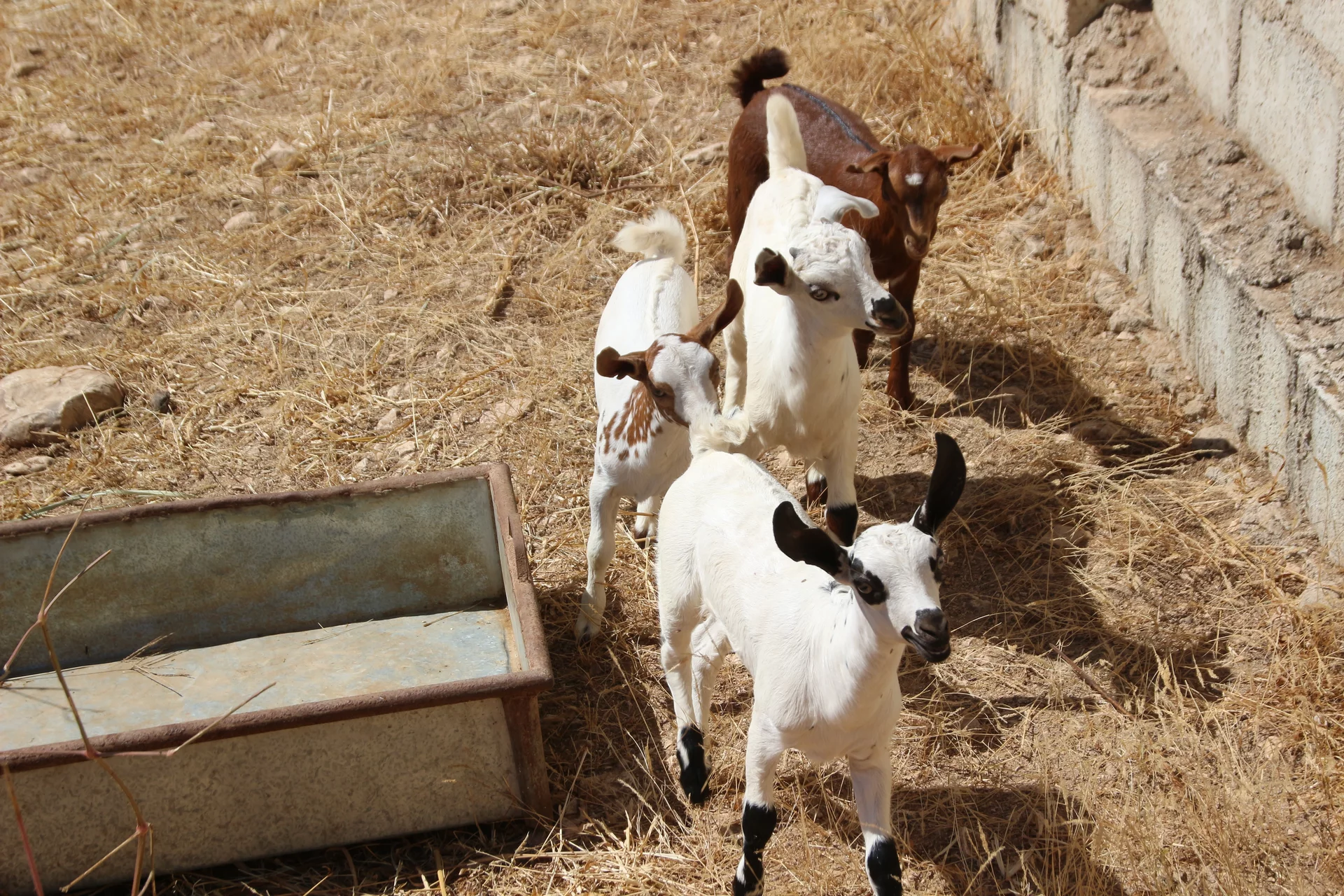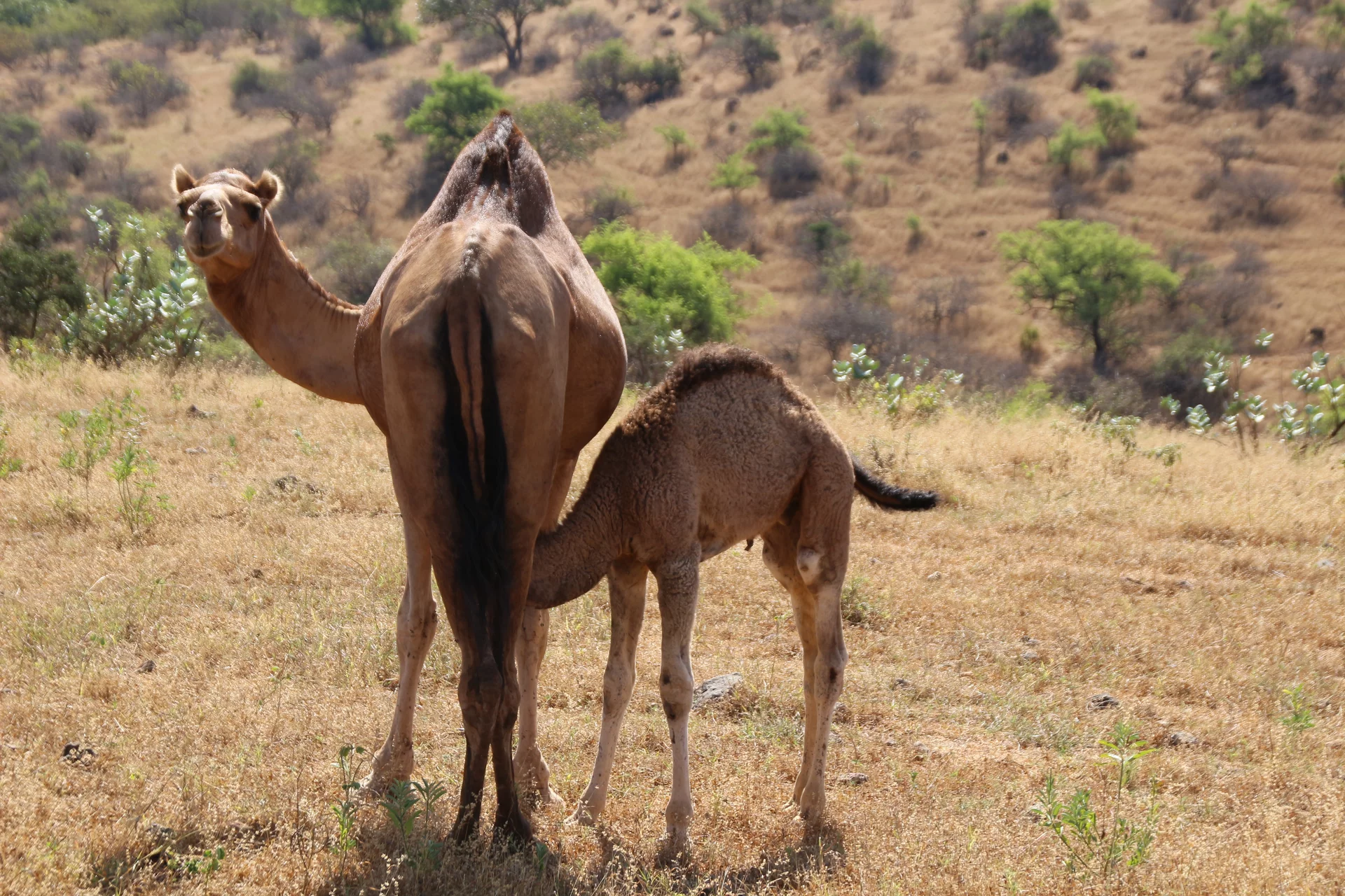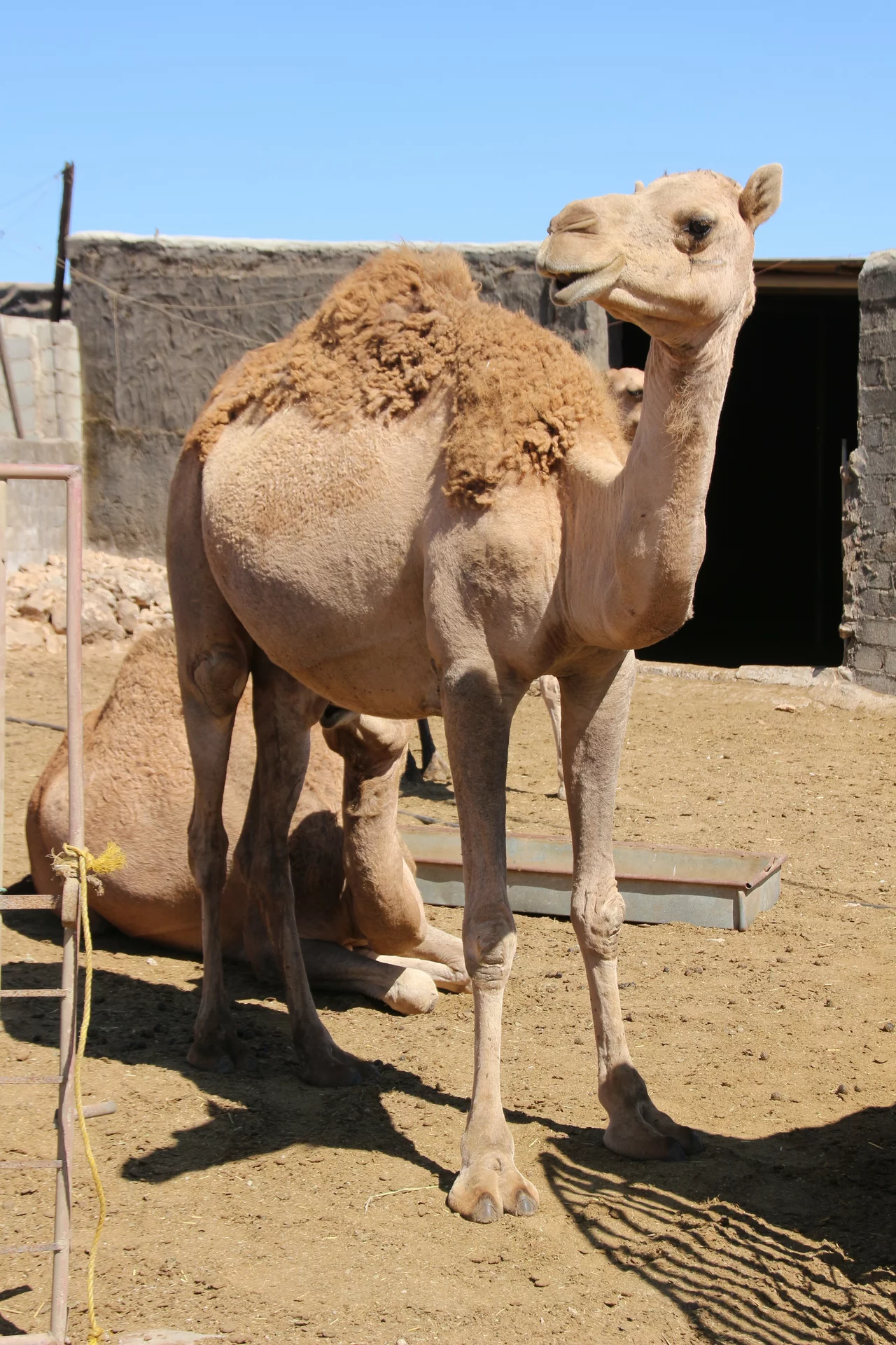 Auf der "Farm" angekommen, wurde uns direkt frische Kamelmilch angeboten. Und natürlich haben wir diesen Willkommenstrunk nicht ausgeschlagen. Mussallem behauptet ja, dass die Milch der Kamele seines Onkels ein wenig nach Fisch schmecken würde, denn er füttert sie mit getrockneten Sardinen. Wir haben es nicht herausgeschmeckt. Die Milch schmeckt der Kuhmilch sehr ähnlich. Sie hätte vielleicht etwas kälter sein können, aber sie war ganz frisch "gezapft". Anschließend wurden uns stolz die Kamele und Ziegen vorgeführt.