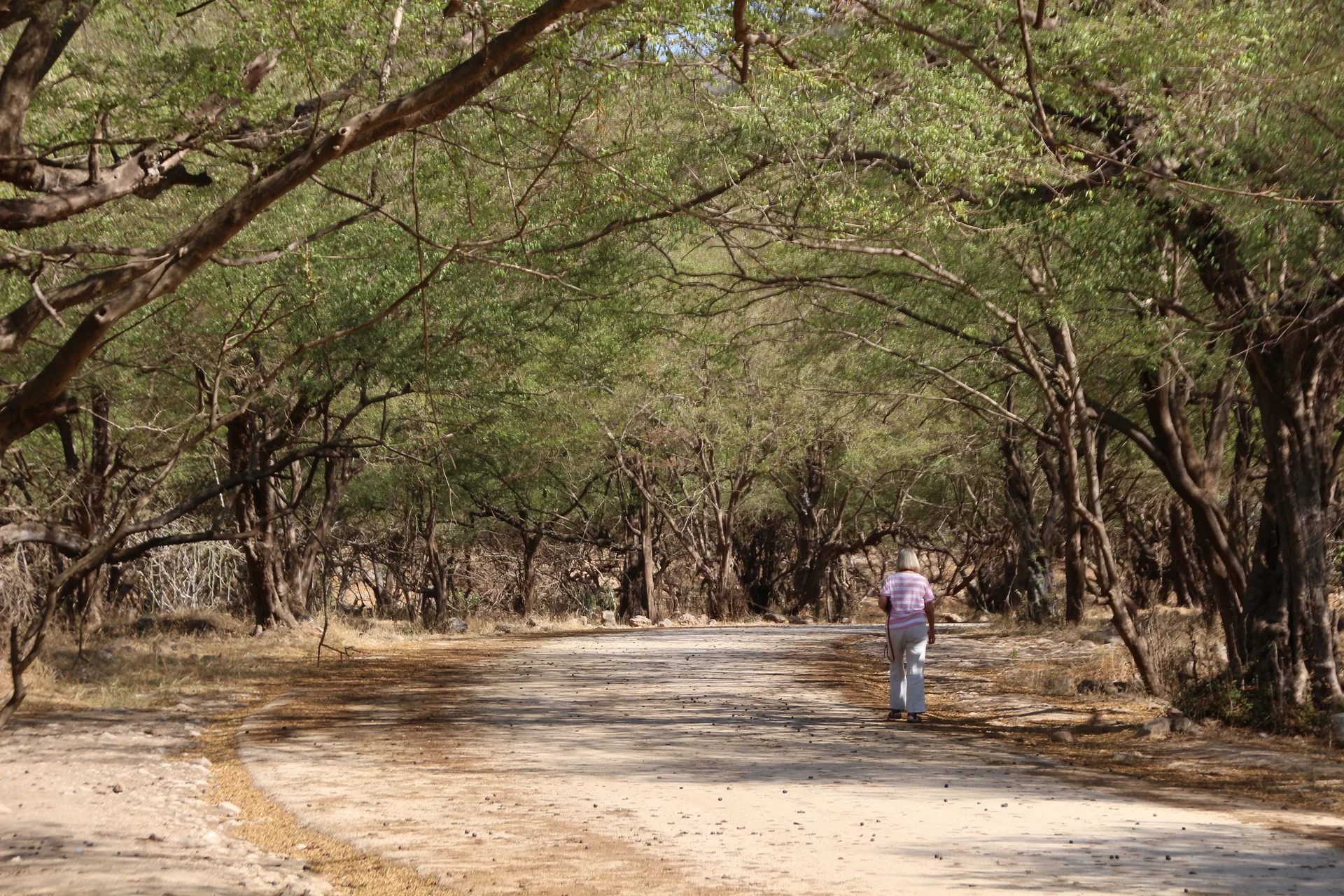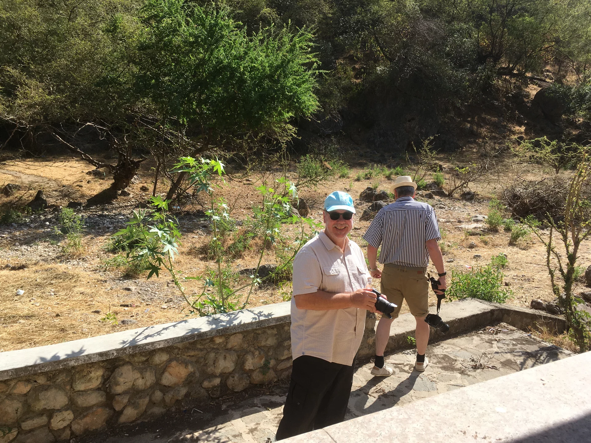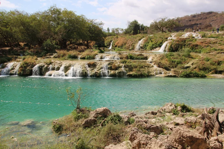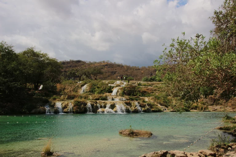 Der Weg führte uns heute in die unberührte Natur des Hinterlands von Salalah. Eine landschaftlich schöne alleeartige Straße führte hinauf zu einer der vielen Quellen, die über Kanäle die kleinen Dörfer weiter unten versorgen. Leider gibt es zu dieser Jahreszeit kaum Wasser, so dass wir quasi in ein leeres Loch geschaut haben.