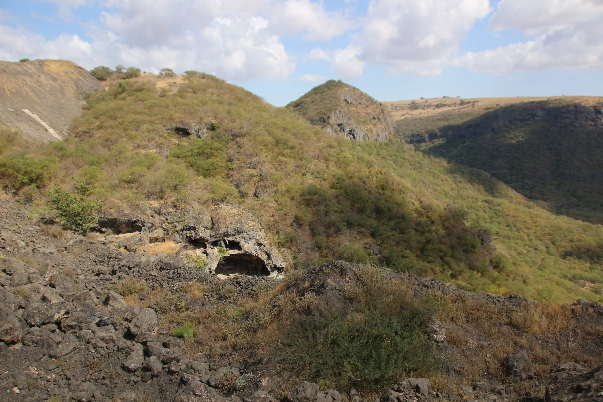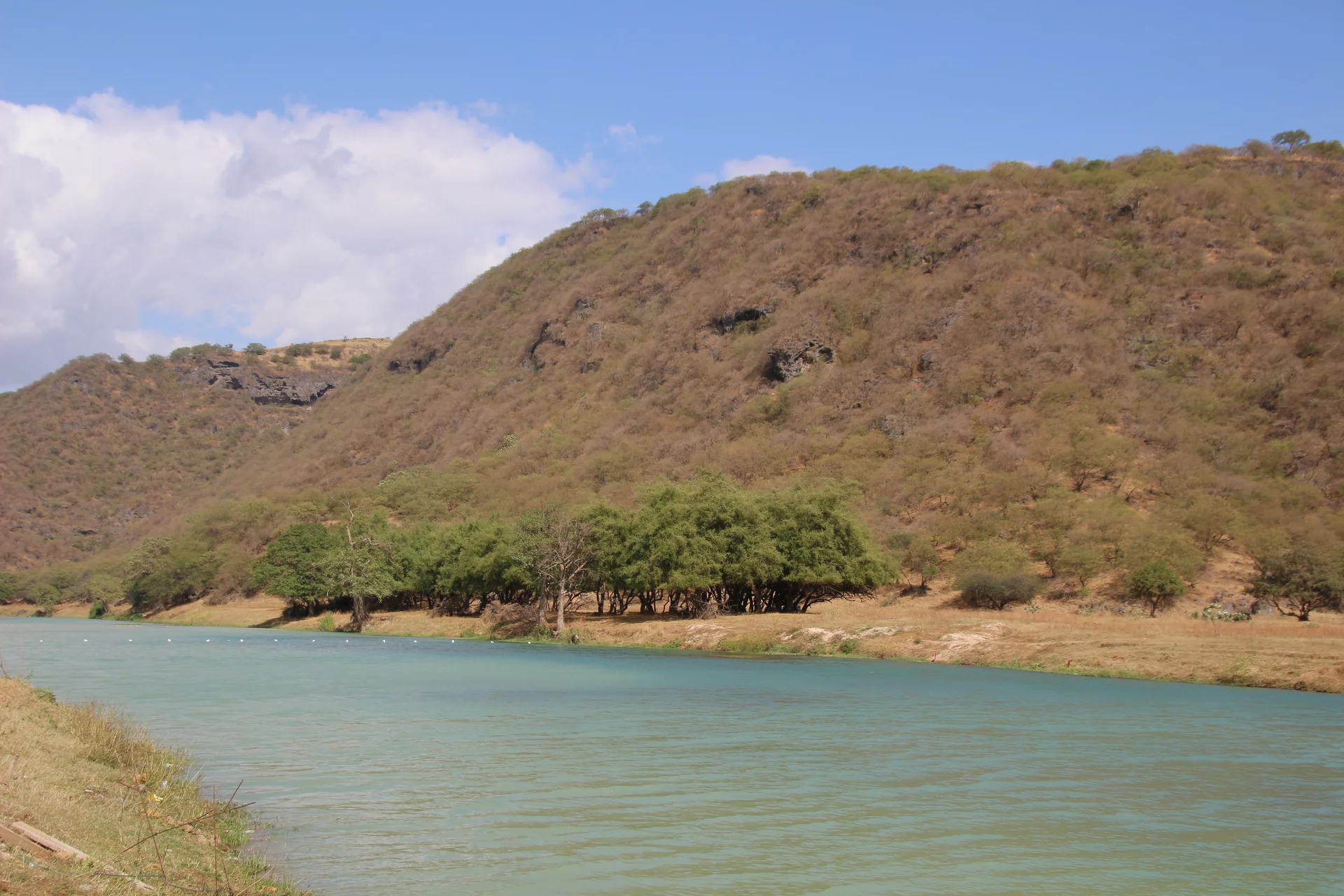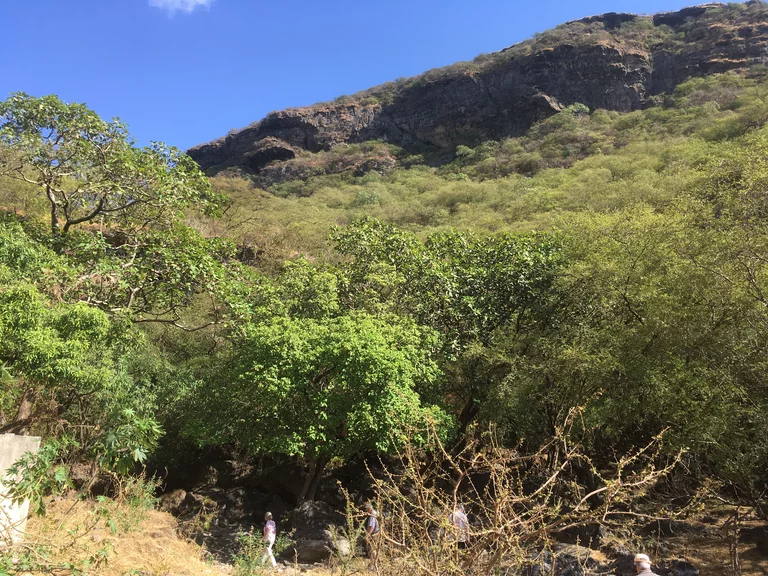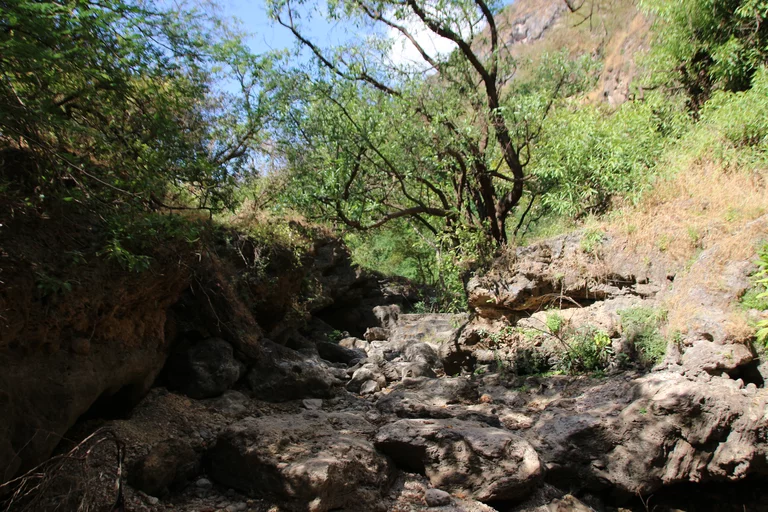 Der Weg führte uns heute in die unberührte Natur des Hinterlands von Salalah. Eine landschaftlich schöne alleeartige Straße führte hinauf zu einer der vielen Quellen, die über Kanäle die kleinen Dörfer weiter unten versorgen. Leider gibt es zu dieser Jahreszeit kaum Wasser, so dass wir quasi in ein leeres Loch geschaut haben.