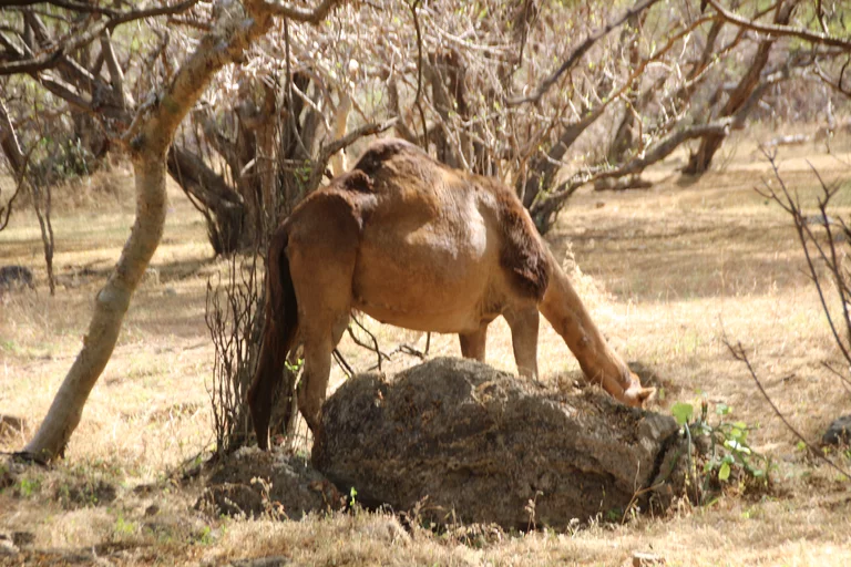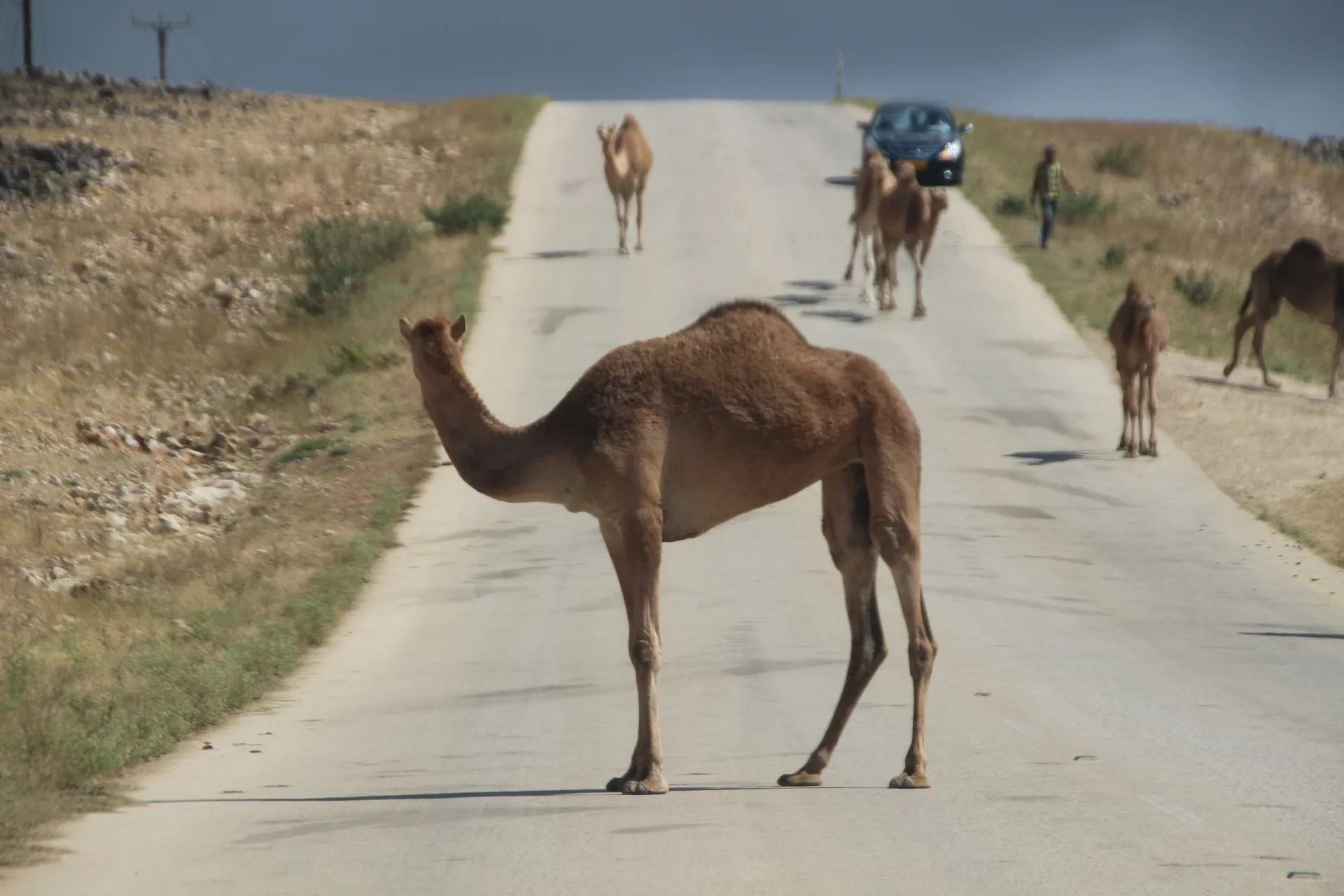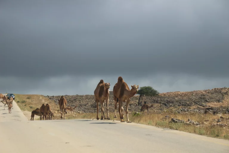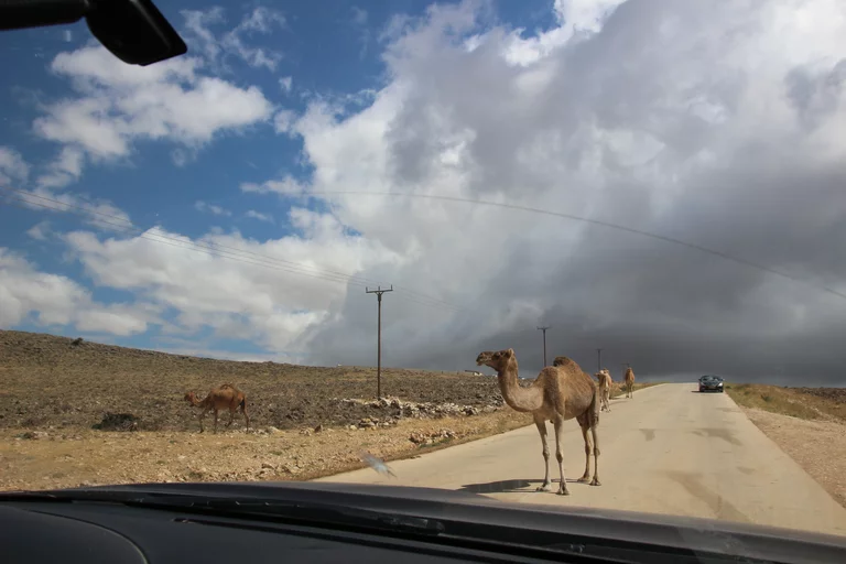 Auch heute morgen hieß es wieder gelegentlich Slalom um die Kamele zu fahren, die sich gemütlich wiederkäuend auf der Straße tummelten.