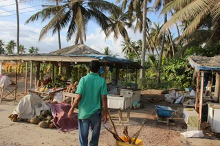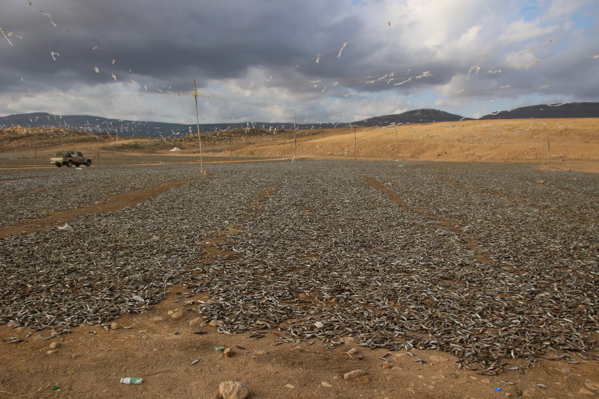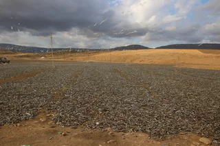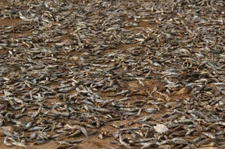 Auf der Fahrt zum Hotel machte Mussallem noch schnell an der Müllhalde von Salalah halt. Er wollte uns beweisen, dass die Geschichte mit den Sardinen fressenden Kamelen auch wirklich stimmt. Hier werden die Sardinen zum trocknen auf große Felder verteilt. Überflüssig zu erwähnen, dass dieser Fotostop nicht nur etwas für die Augen, sondern auch ein ganz besonderes "Highlight" für die Nase war.