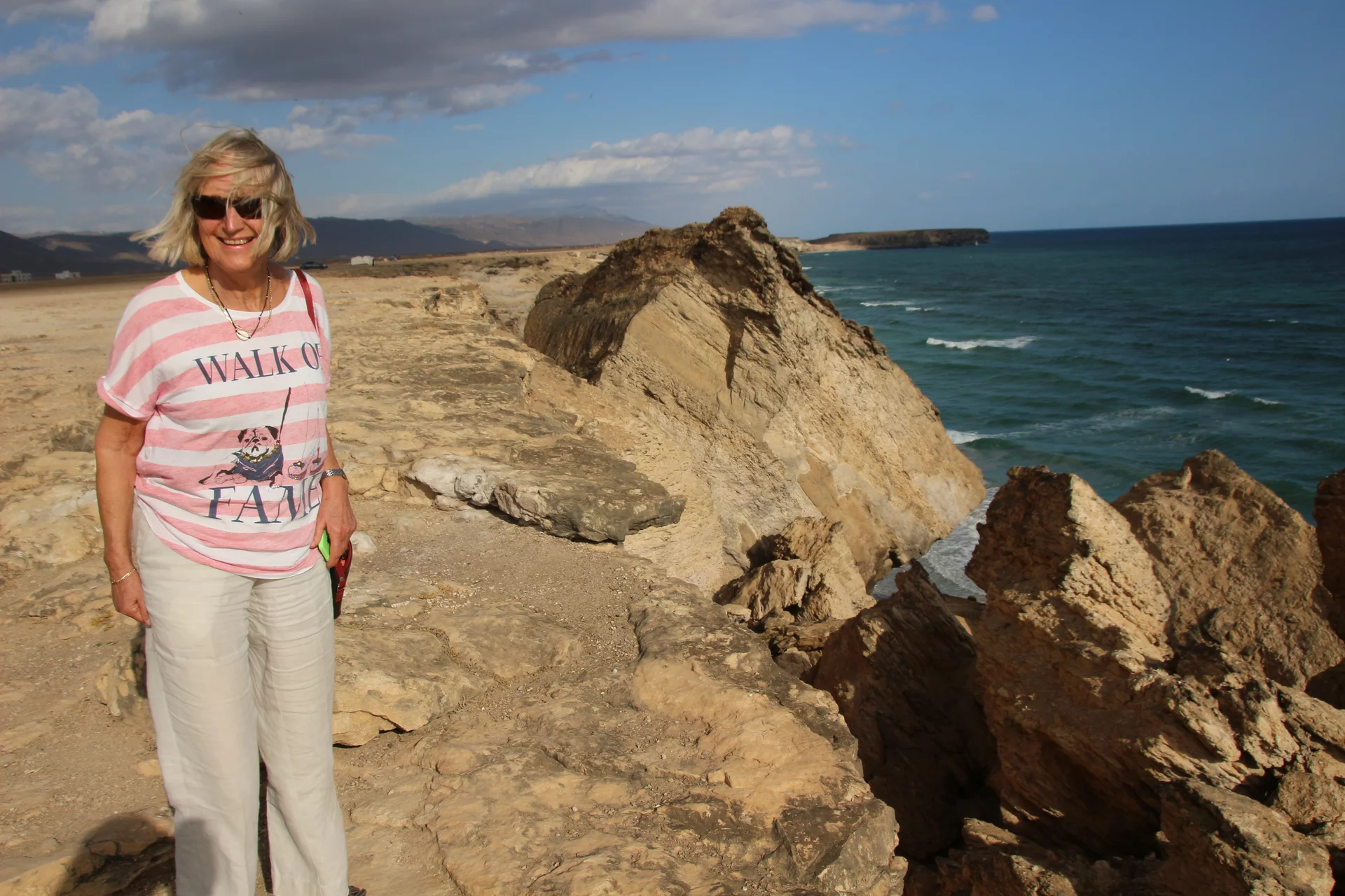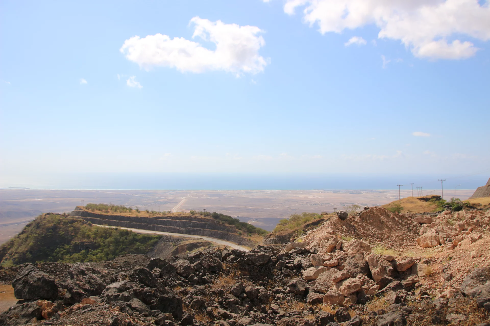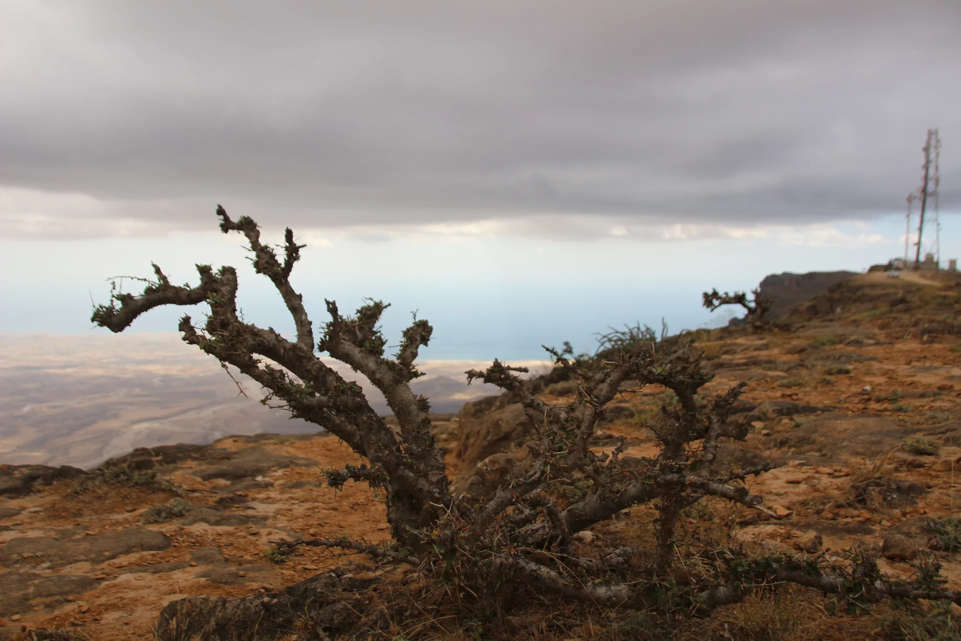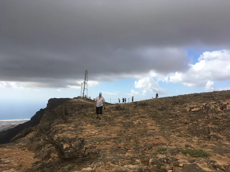 Oben angekommen gab es dann grandiose Aussichten über das Dhofar Gebiet bis hinunter zur Küste. Es war ziemlich kühl dort oben und es pfiff ein kühler Wind über das Platteau. An der Abrisskante ging es gut 900m steil nach unten und selbst mit einigem abstand war mir doch ziemlich mulmig. Aber was tut man nicht alles für ein schönes Foto? Richtig in die Hose ist mir das Herz allerdings gerutscht, als ich Lottchen beim Selfie machen gesehen habe.
