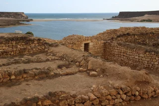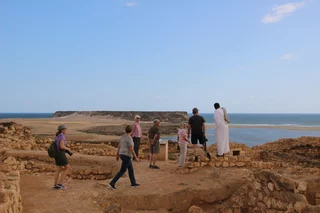 Dann ging es dann weiter zum Sumhuram Archeological Park. Nach dem Weihrauchunterricht vom Vormittag gab es jetzt Geschichtsunterricht. Der antike Weihrauchhafen Sumhuram liegt 40km östlich von Salalah. Als Teil der Weihrauchstraße war Sumhuram einst eine blühende Handelsstadt, von deren Vergangenheit heute nur noch Ruinen zeugen. Der Park gehört zum Weltkulturerbe. Zu der Stadt gehörten neben einem Hafen mit Lagerhallen für den Weihrauch auch Wohnkomplexe und eine Tempelanlage.