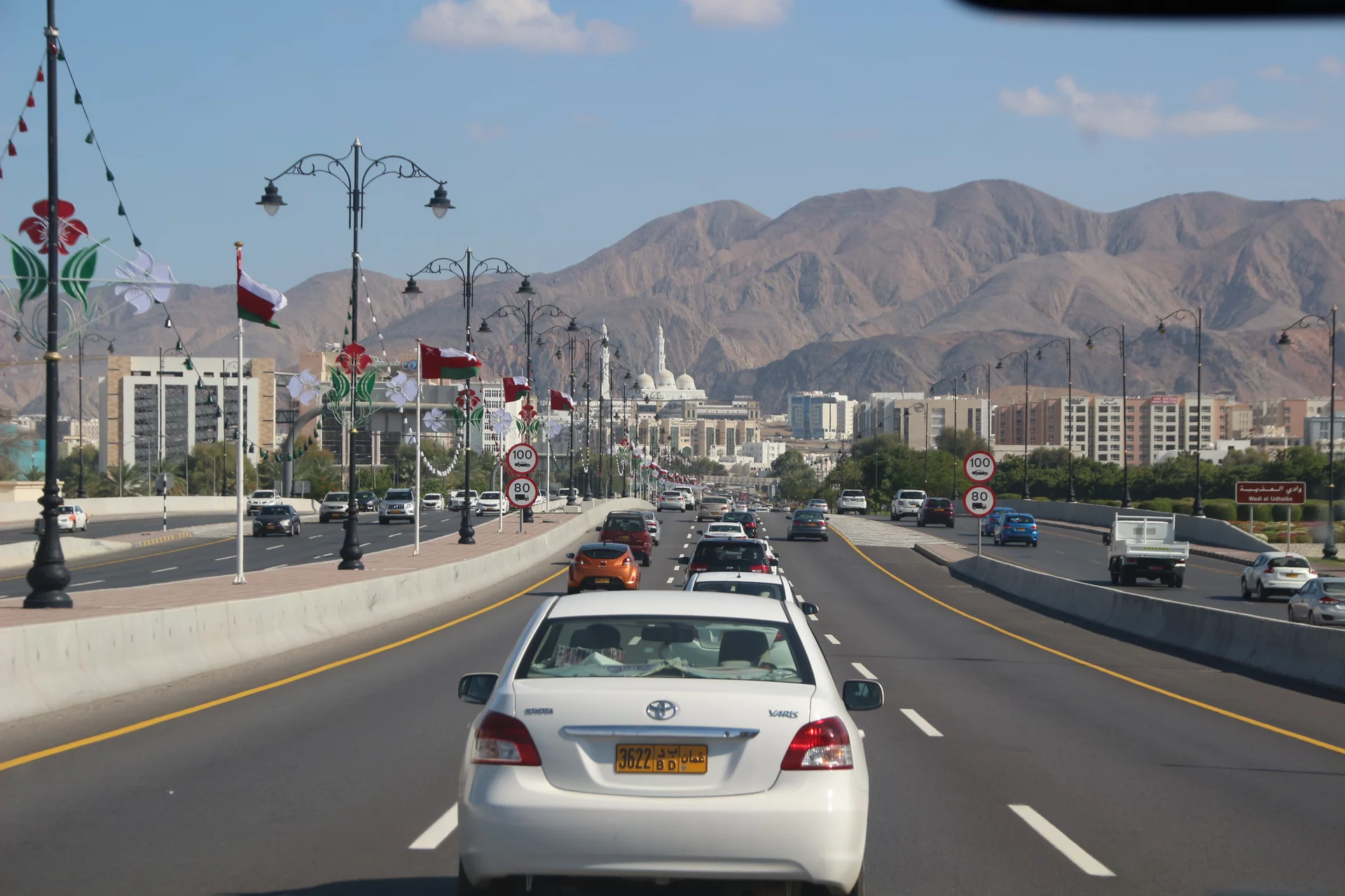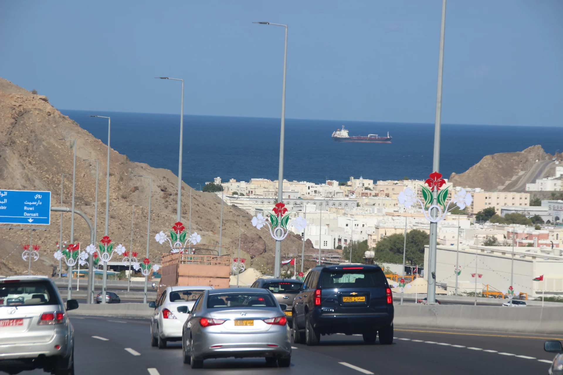Auf der Fahrt vom Flughafen zum Hotel in Muscat habe ich noch