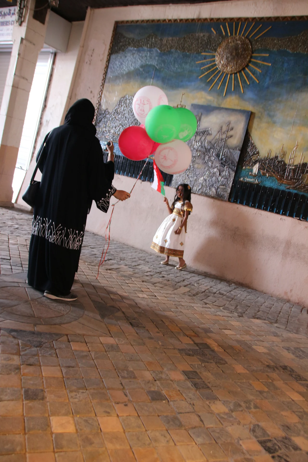 omanischen Flagge und Bilder von Sultan Qaboos geschmückt.