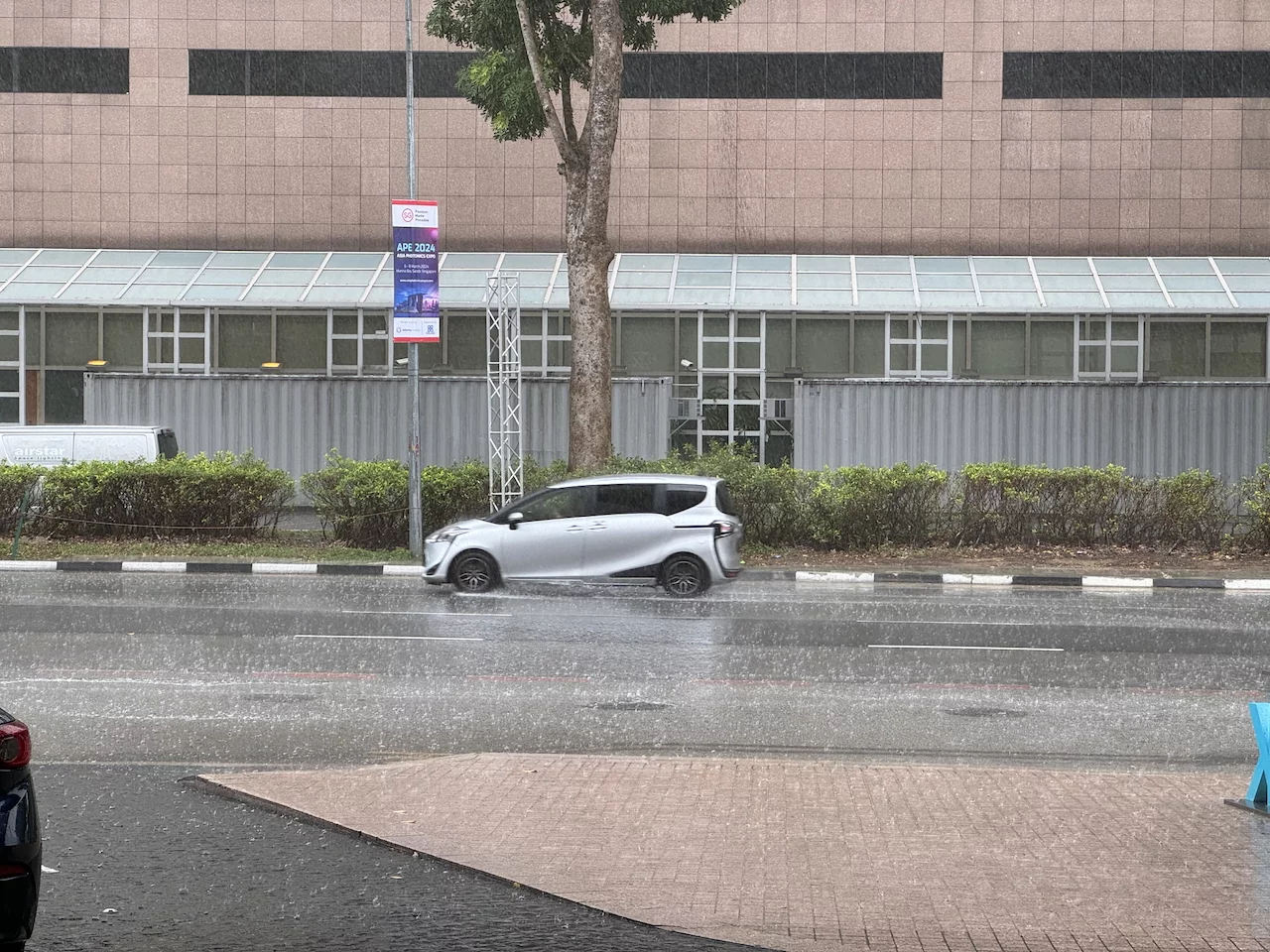 Wie vorhergesagt, hat sich das Wetter heute von der für diese Jahreszeit typischen Seite gezeigt. Es hat immer wieder wie aus Kübeln gegossen. Kommt man dann aus den klimatisierten Bereichen wieder in die Außenwelt, fühlt es sich an, als würde man vor eine dicke schwüle Wand laufen.