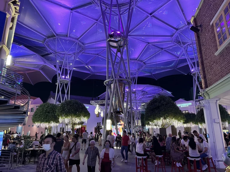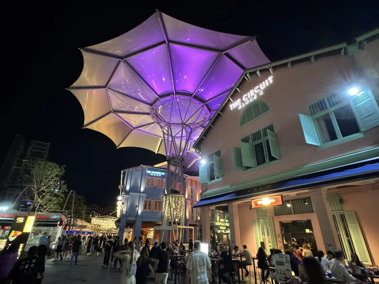 Den Abschluß bildete heute noch ein kleiner Spaziergang zum nördlichen Teil des Boat Quay. Dies ist DIE Partymeile von Singapur und hier ist buchstäblich der Teufel los, vor allem an einem Samstagabend. Von Liveband bis Karaoke ist alles geboten. Und wer den Nervenkitzel braucht, der läßt sich in einer Kugel 50 Meter in den Himmel schießen.