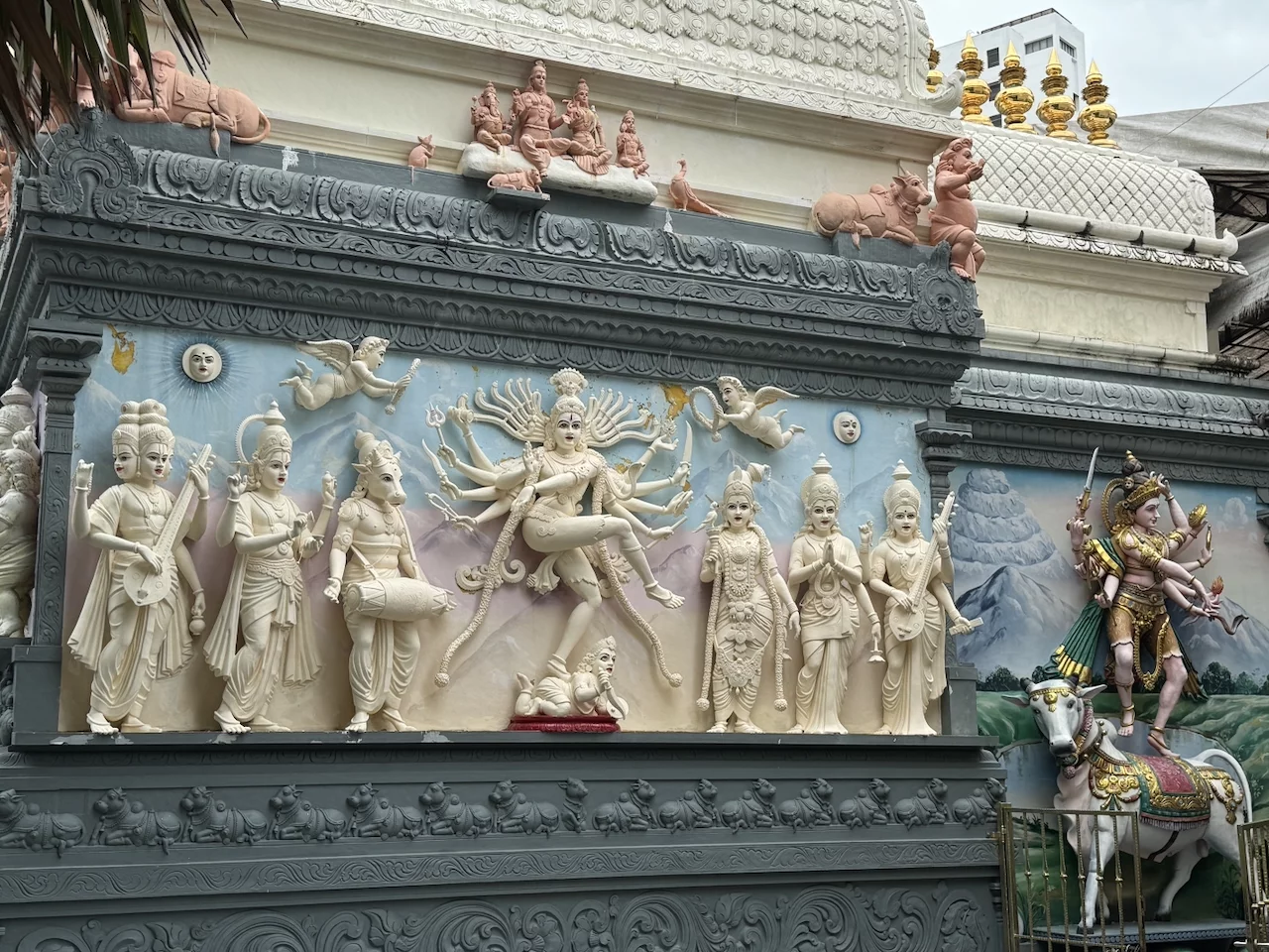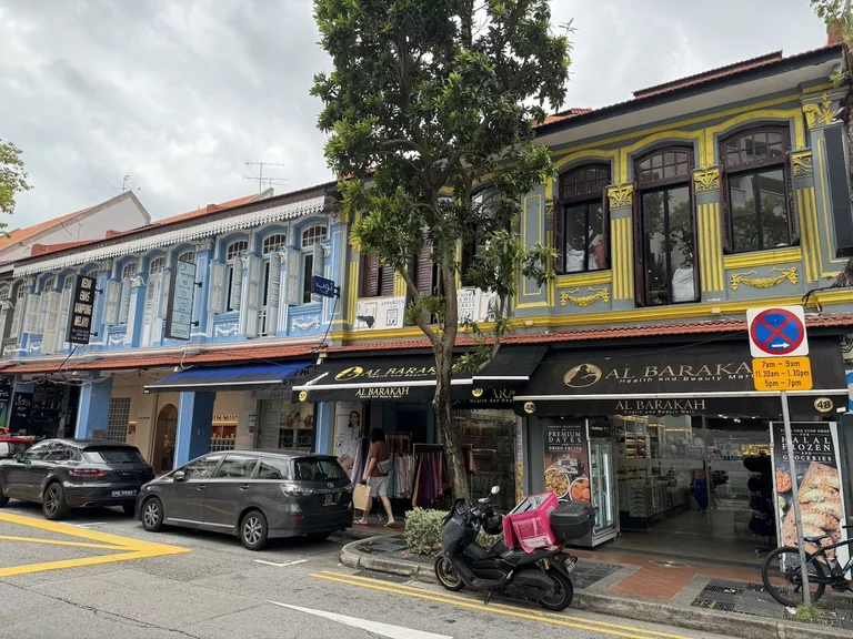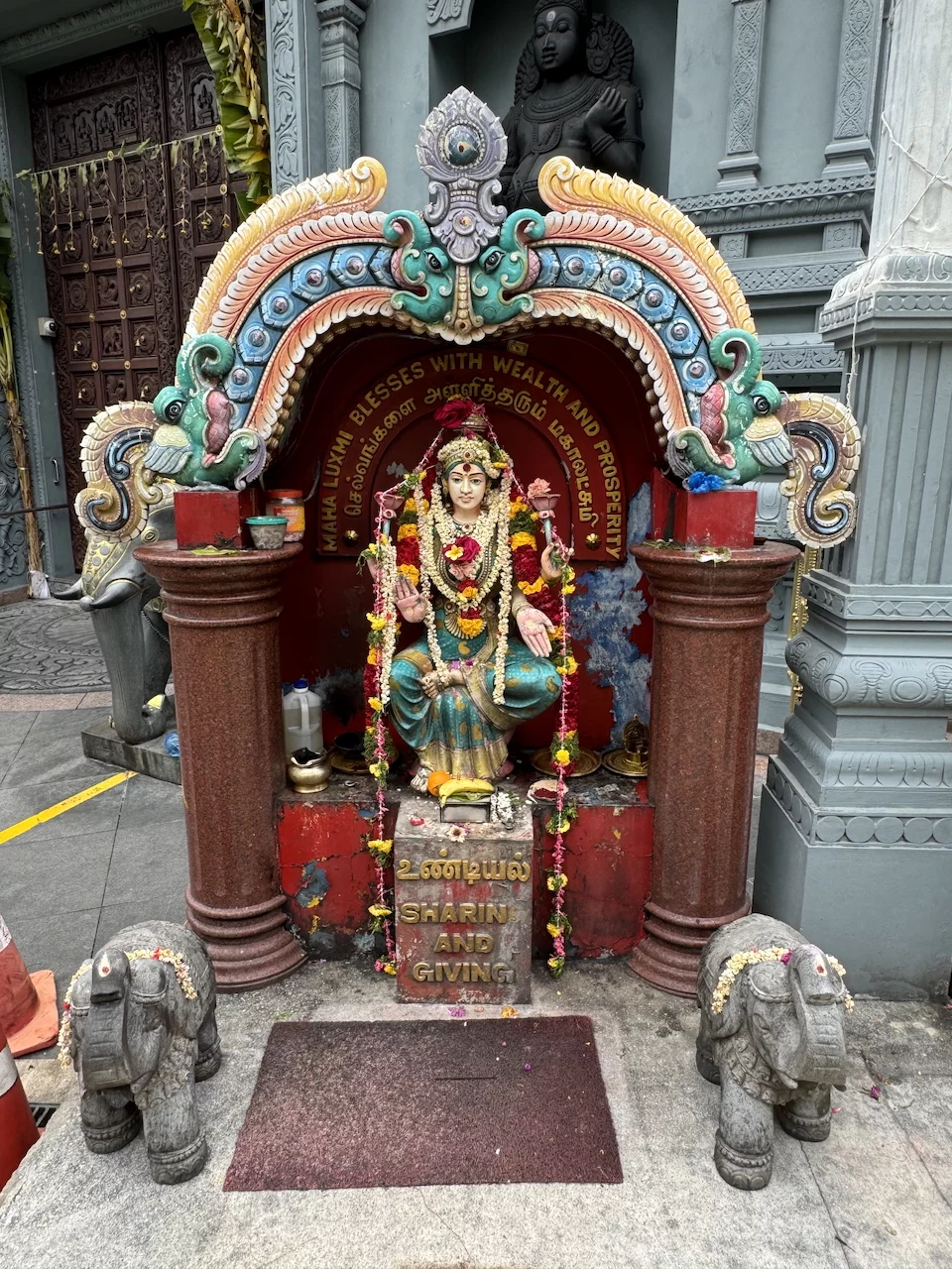 Das Gesicht dieser Gegend unterscheidet sich gewaltig von dem, was man von Singapur so kennt. Sie ist zwar von Hochhäusern jedweder Art umsäumt, aber das Viertel selber beeindruckt durch eine einzigartige Vorkriegsarchitektur mit farbenfrohe zweistöckige Shophouses, Reihenhäuser mit Schwingtüren und ihren kunstvollen Fassaden mit teilweise aufwendigen Motiven und Keramikfliesen. Wie auch sonst im asiatischen Teil der Welt, spielt sich das tägliche Leben auf engstem Raum direkt auf der Straße ab. Ob "Tante Emma Laden", Schlosserei, Bistro oder die typische Garküche, es ist alles vertreten. Zudem beherbergt das Viertel auch zwei sehr schöne Hindu-Tempel, von denen wir einen besichtigen konnten. Den spektakulärsten der beiden konnten wir allerdings nur von außen anschauen, denn drinnen wurde eine Hochzeit zelebriert.