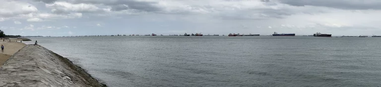Da wir bereits dicht dran waren, haben wir anschließend noch einen Abstecher an den "East Coast Beach" gemacht. Singapur hat keine natürlichen Strände. Wie eigentlich die ganze Stadt, sind alle Strände dem Meer "abgerungen" und aufgeschüttet worden. Schön ist sicherlich etwas anderes, und es ist wahrlich kein Vergleich zu dem, was z.B. Thailand oder die Karibik diesbezüglich zu bieten haben. Aber, die hunderte von Tankern und Frachtschiffen, die vor dem Hafen vor Anker liegen und darauf warten "abgefertigt" zu werden, sind ein deutliches Zeichen der prosperierenden Wirtschaft dieses Landes. Flächenmäßig so groß wie Hamburg, aber fast dreimal soviel Einwohner, die generell durch diesen wirtschaftlichen Erfolg einen sehr hohen Lebensstandard genießen!!