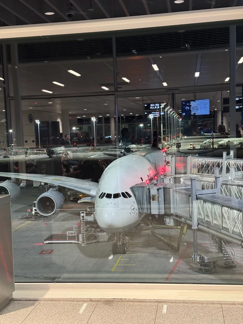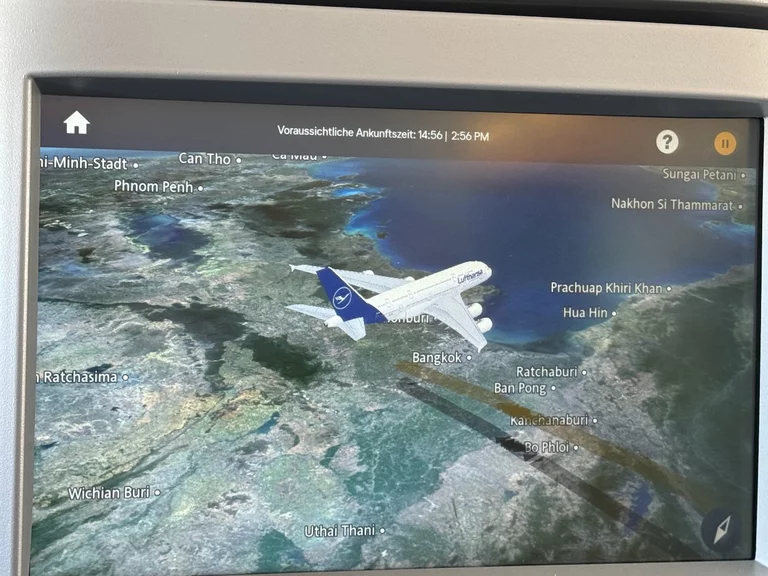 Abgesehen davon, dass es ein verdammt langer Tag wurde, verlief die Anreise nach Bangkok problemlos. Wir sind Samstagmittag in Papenburg los nach Hamburg gefahren, wo wir Birgit und Hartmut trafen. Von dort ging's über München in unserem absoluten Lieblingsflieger Airbus A380-800 nach Thailand. Eine kurze unerwartete Verzögerung gab es noch auf dem Weg zur Startbahn, denn der Flieger hatte über Nacht in München gestanden und musste aufgrund leichter Eisbildung auf den Tragflächen vorsichtshalber noch enteist werden.
