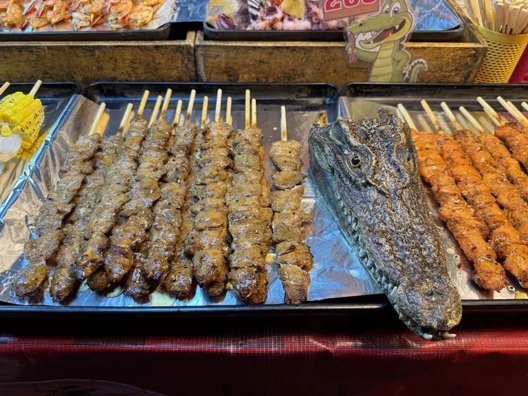 Es gibt in diesem Markt alles, was man sich nur denken kann. Von der falschen Rolex bis zu Krokodilkopf als Streetfood ist alles geboten.
