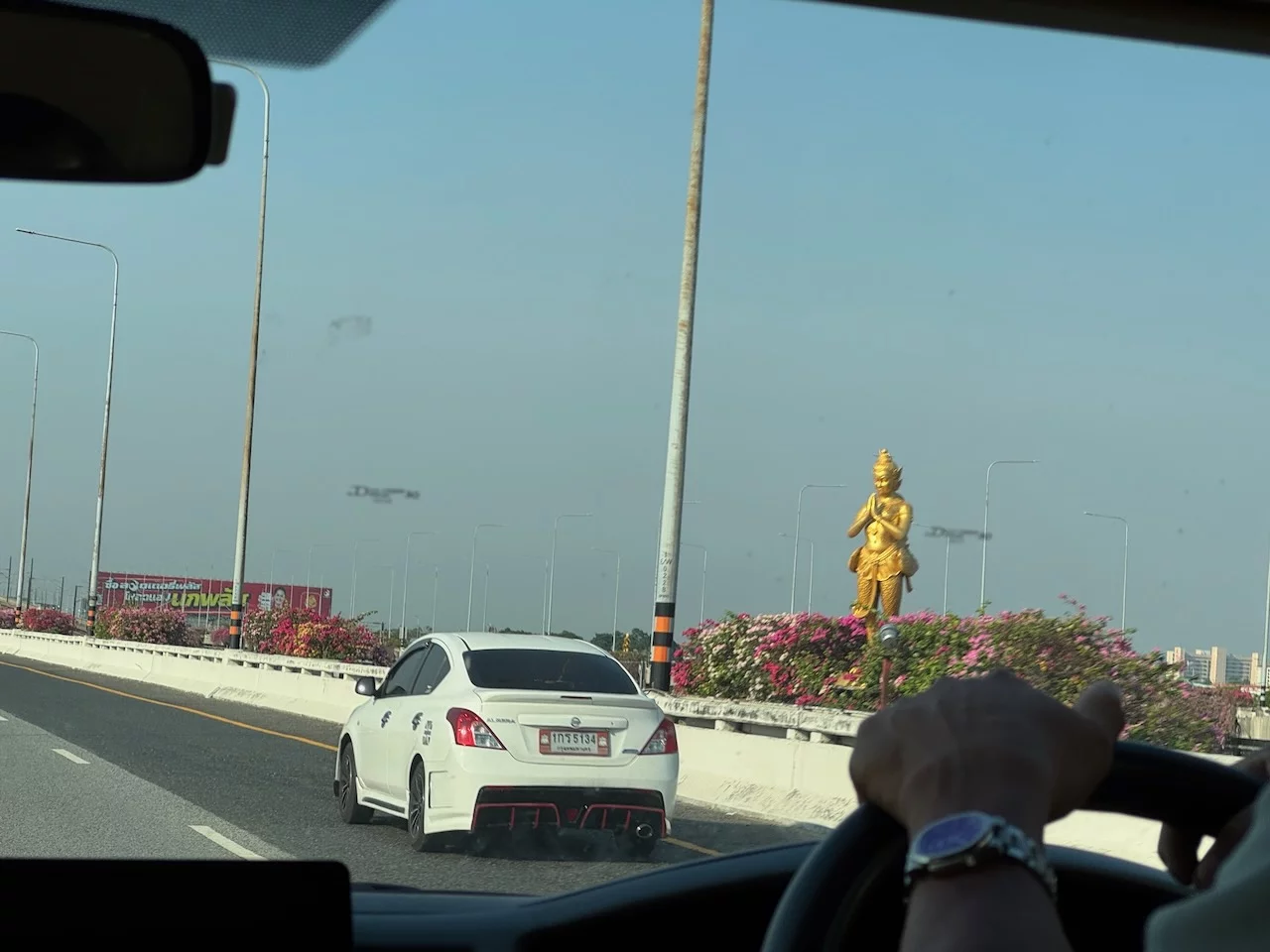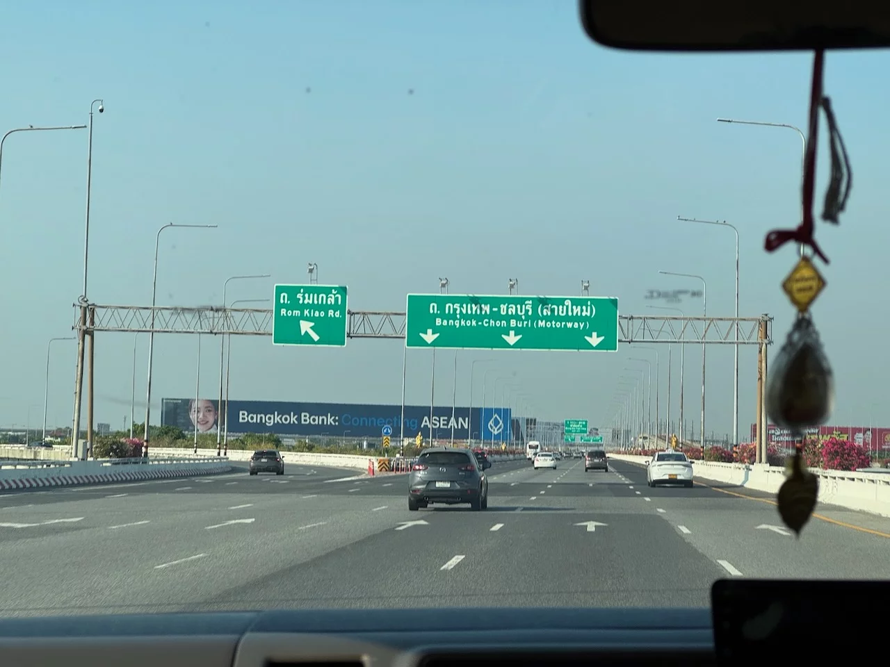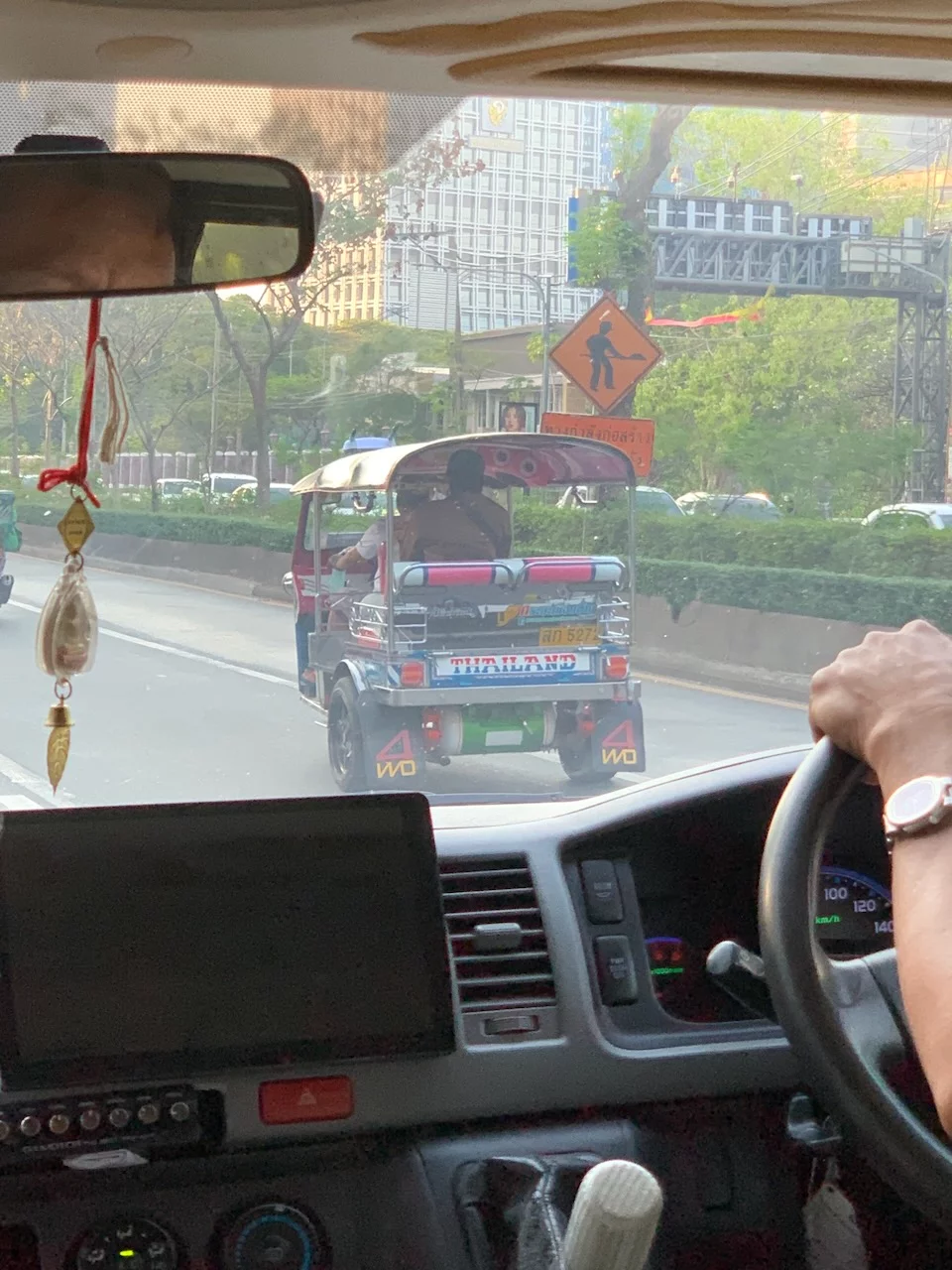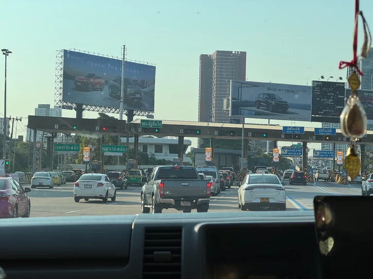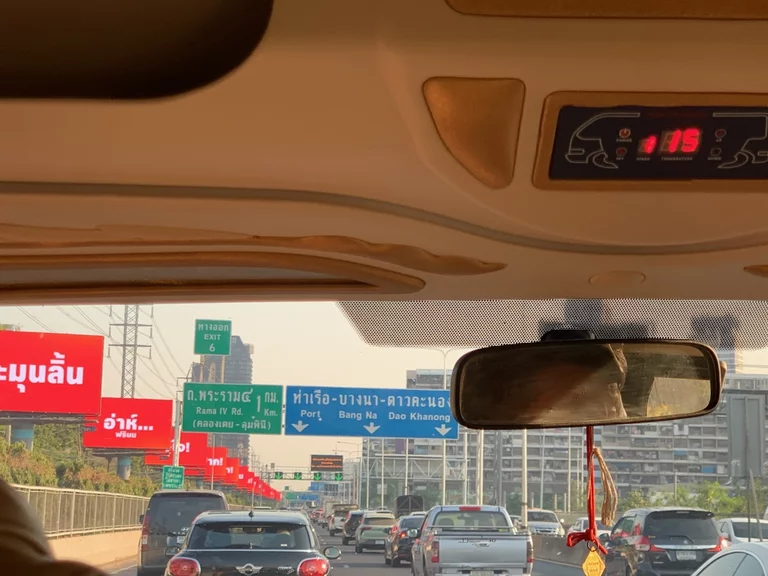 Nachdem wir zueinander gefunden hatten und das Gepäck verstaut war, konnten wir uns dann in einem gut gekühlten Minivan in das sonntägliche Verkehrschaos von Bangkok stürzen.