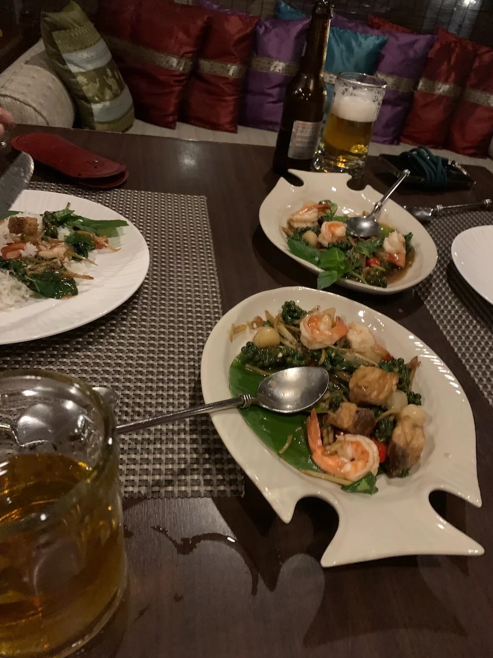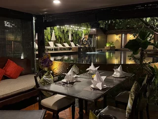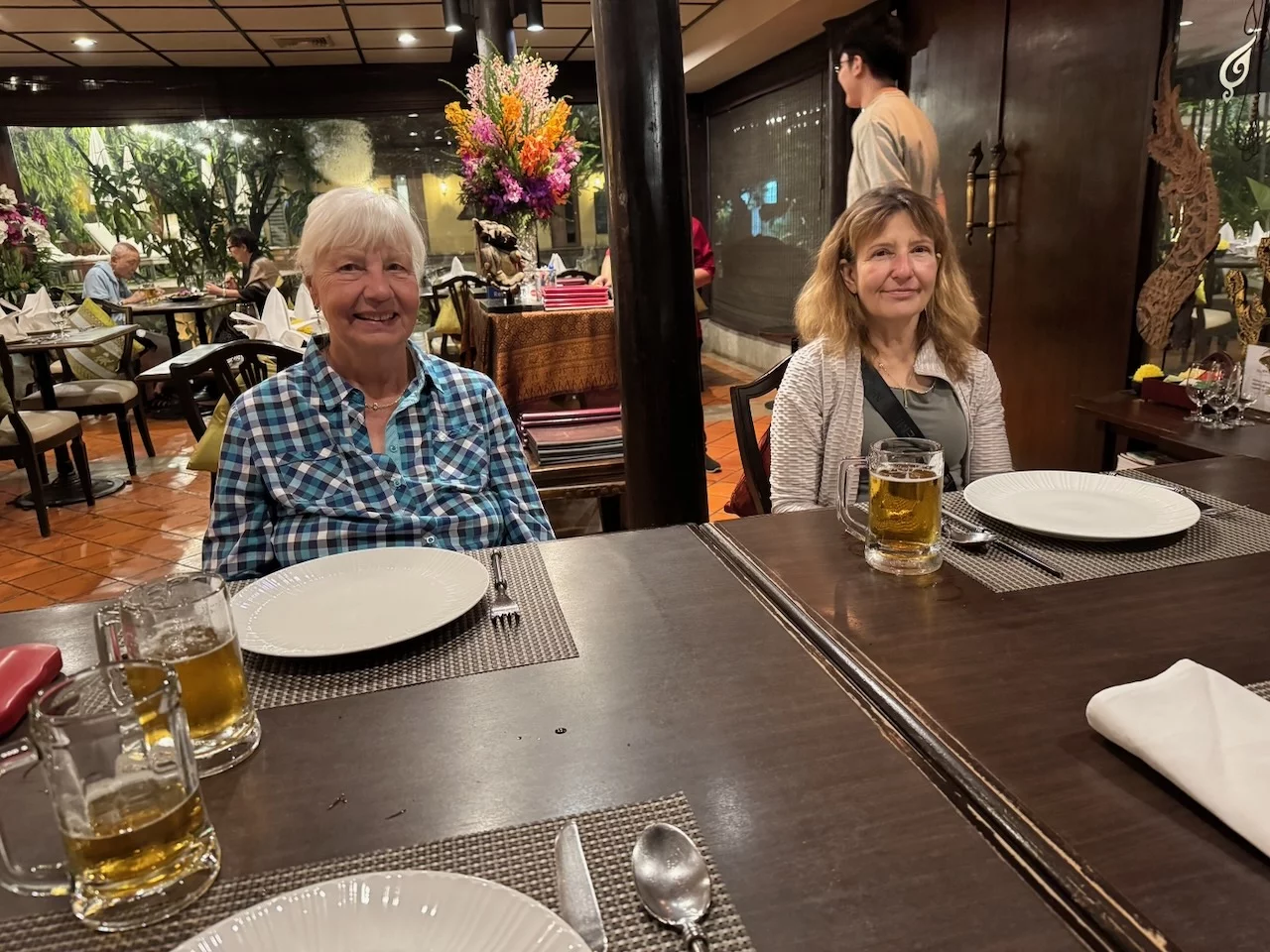 Wir haben uns am ersten Abend für das Hotelrestaurant entschiedend, was eine gute Wahl gewesen ist. Es gab ein leckeres eisgekühltes Bier und thailändische Kleinigkeiten. Kurz danach mussten wir alle Vier dem langen Tag Tribut zollen und haben uns in unsere "Kemenaten" zurückgezogen. Davon gibts später ein paar Bilder.