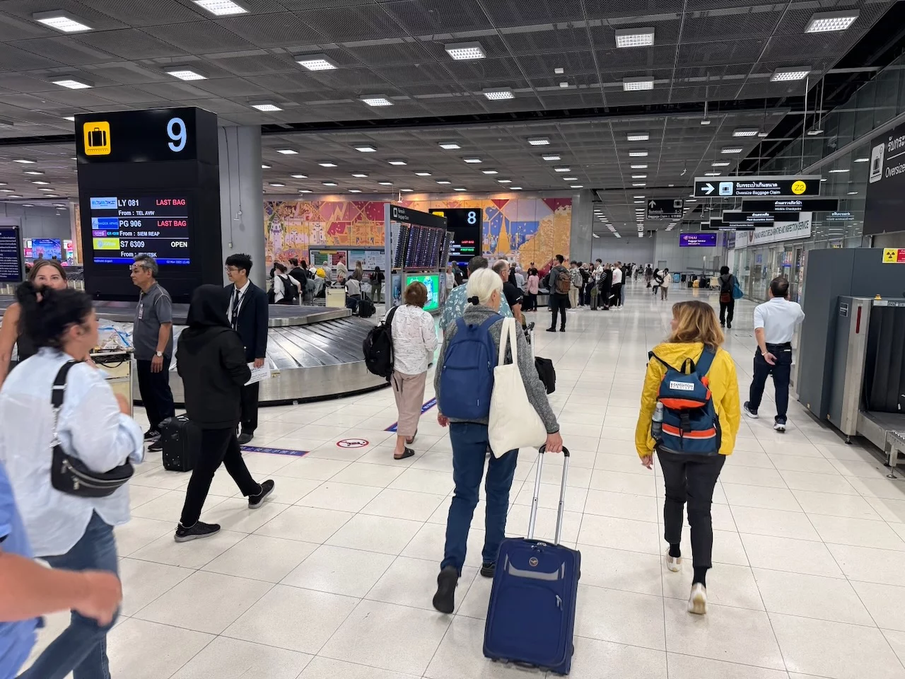 9,5h Stunden später setzte der Flieger in Bangkok auf. Der Marsch vom Gate zur Passkontrolle und Immigration zog sich ein wenig, doch die Einreiseformalitäten waren schnell erledigt.