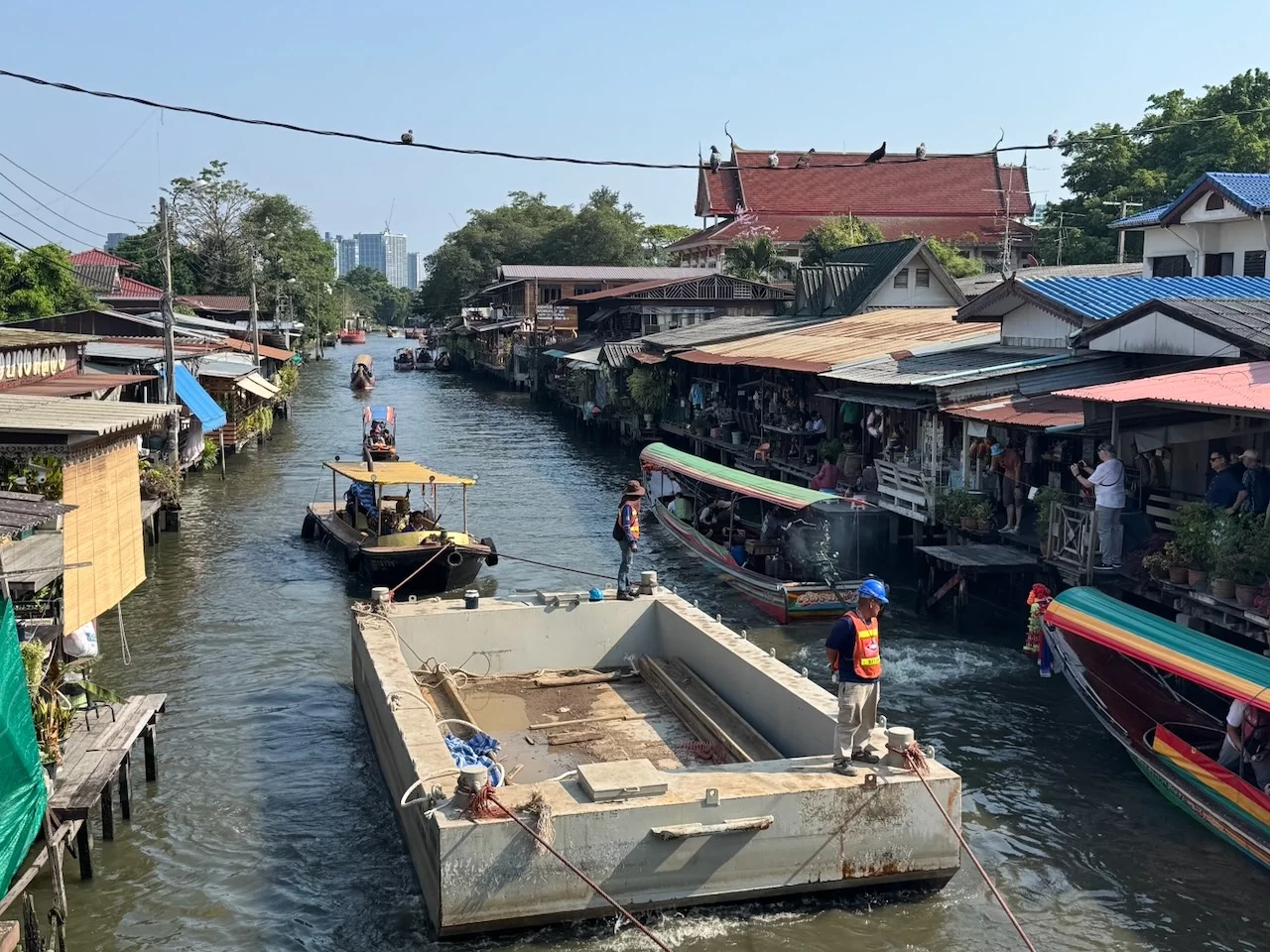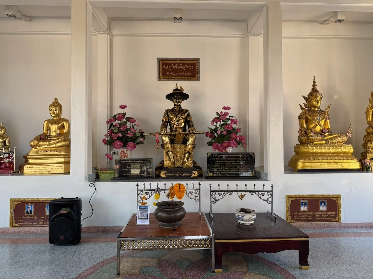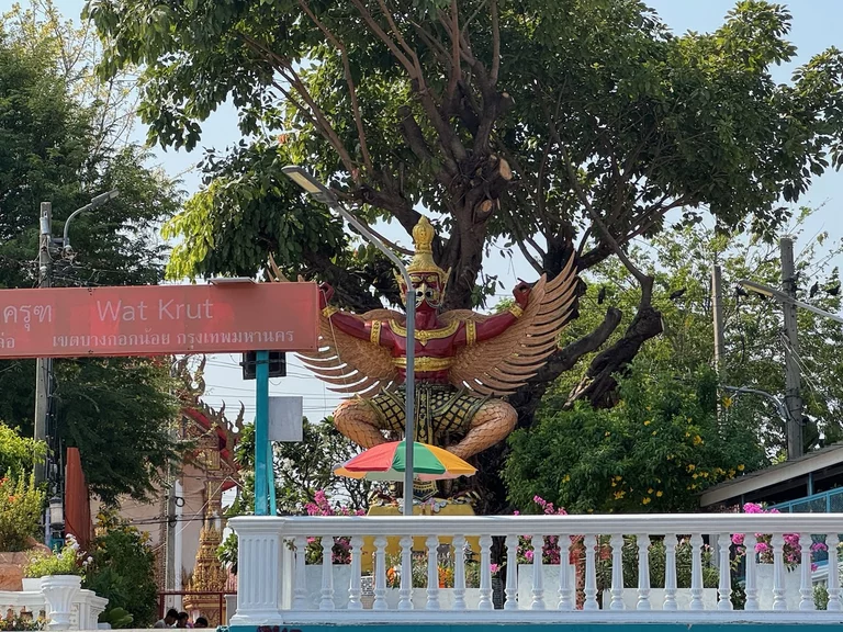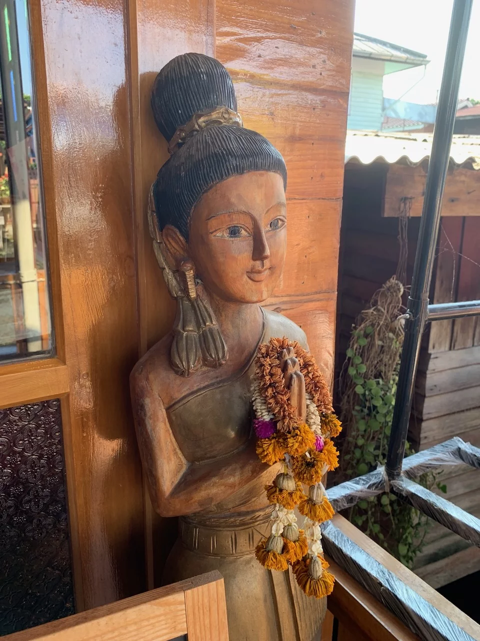 Dann ging es wieder in die Boote durch verschiedene Kanäle zu unserem nächsten Ziel, die Poomjai Gardens. Der Fahrt führte vorbei an einem goldenen Buddha der uns den Rücken zuwandte und einer weiteren Buddha-Statue, die komplett eingerüstet war.