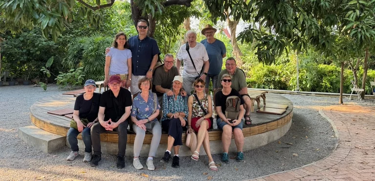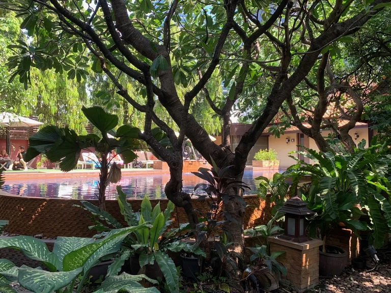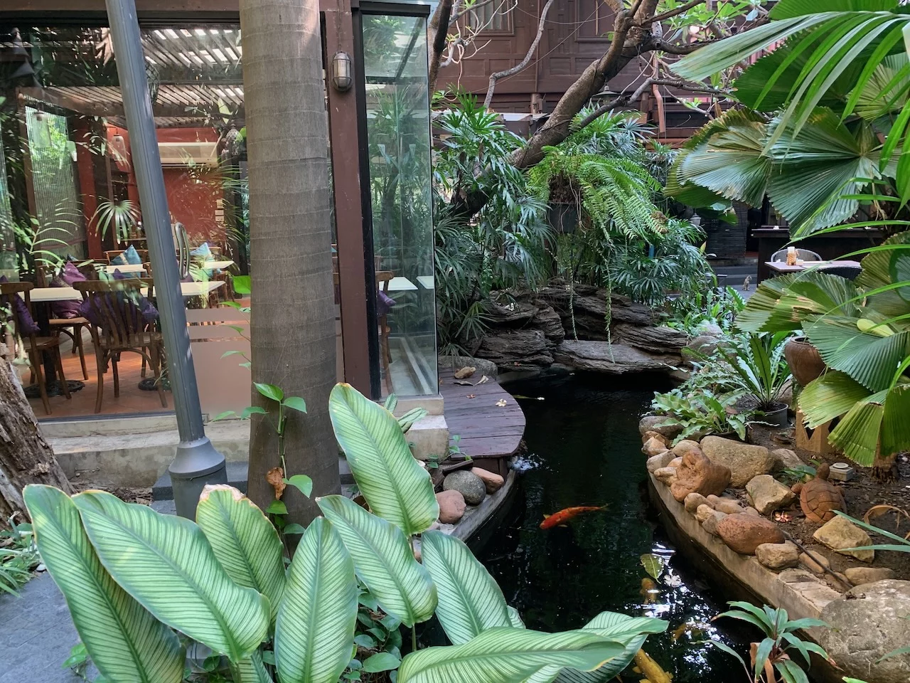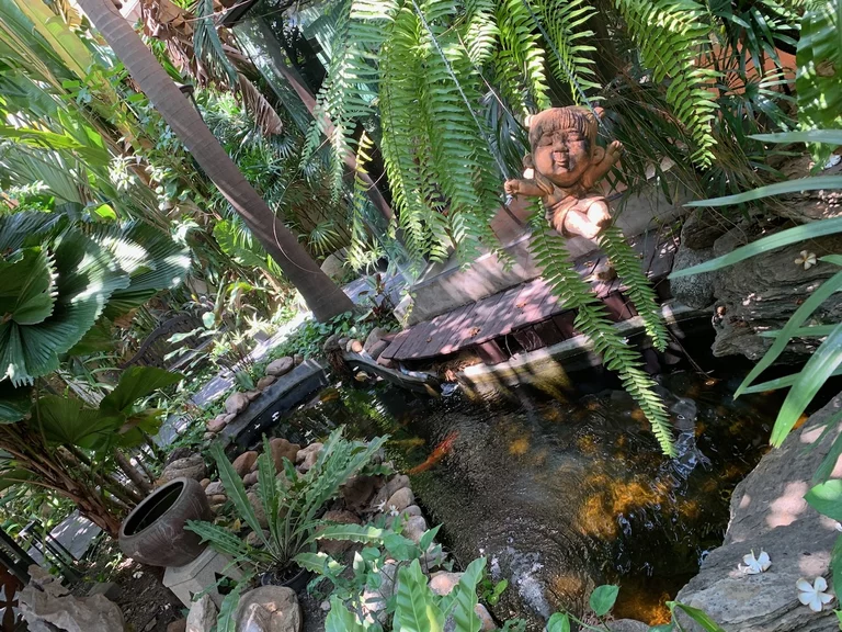 Bei den Poomjai Gardens handelt es sich um eine herrliche grüne Oase mitten in der Stadt, die versteckt am Ufer des Kanals liegt. Der Garten ist schon seit 100 Jahren im Besitz einer thailändischen Familie, die es sich zur Aufgabe gemacht hat, dieses Fleckchen Erde zu erhalten und seltene Pflanzen, wie zum Beispiel einen jahrhundertealten Litschibaum zu schützen.