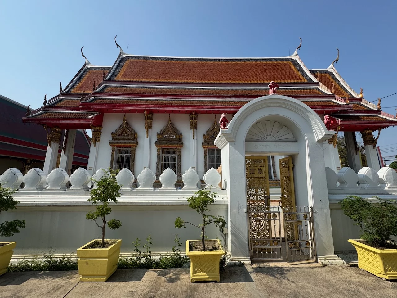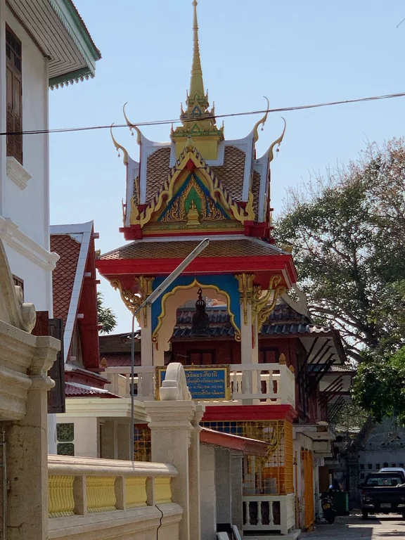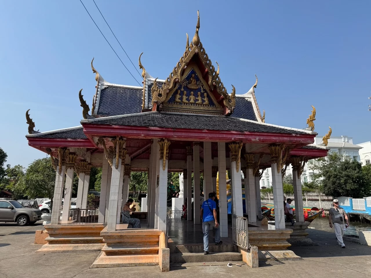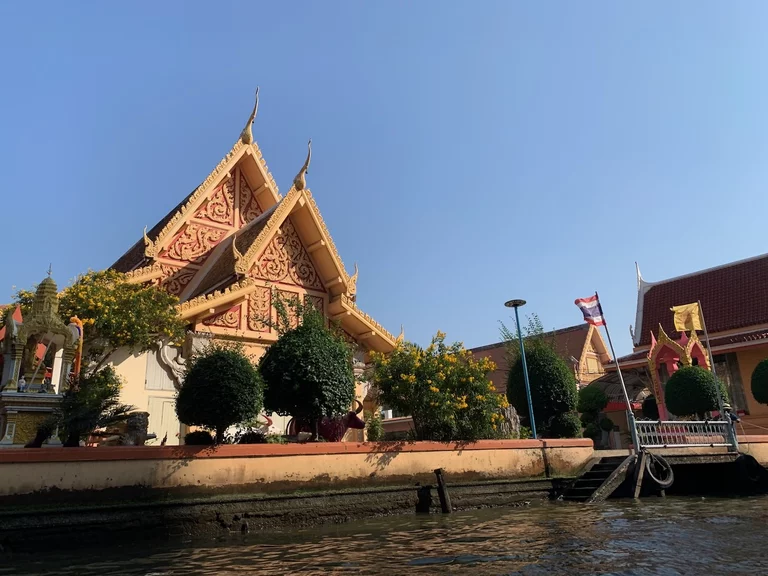 An einem kleinen Tempel fand unsere Longtail-Boat Fahrt ein zwischenzeitliches Ende. Leider war er geschlossen und so blieb uns nur der Blick auf das schöne Äußere.