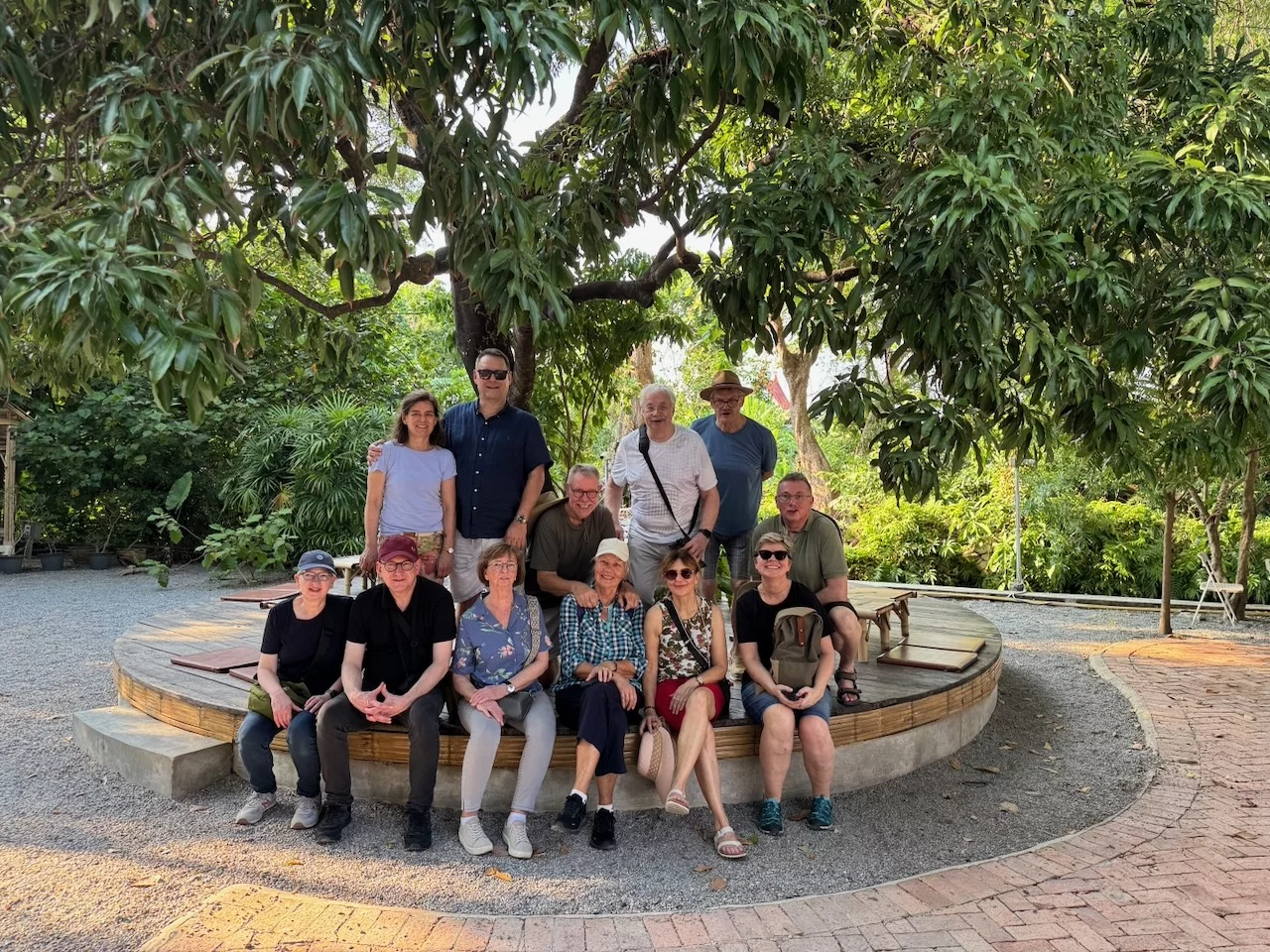 Herr Müller pflegt übrigens die Leidenschaft der Gruppenfotos. Bei jeder sich bietenden Gelegenheit müssen wir zusammenkommen und er macht das Foto. So auch hier unter dem alten Litschibaum.