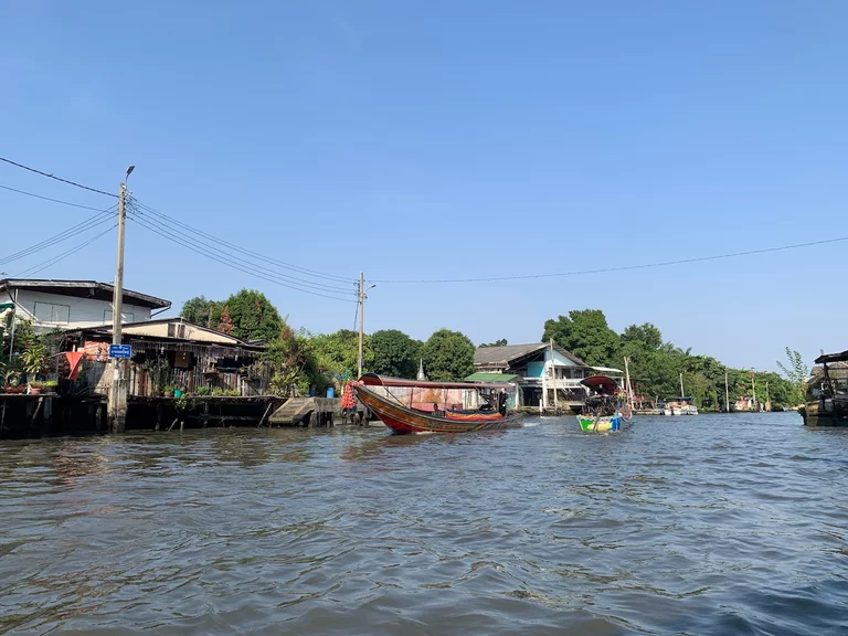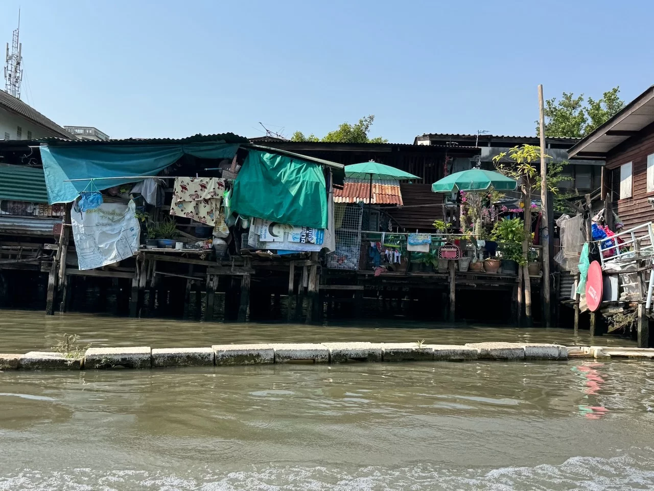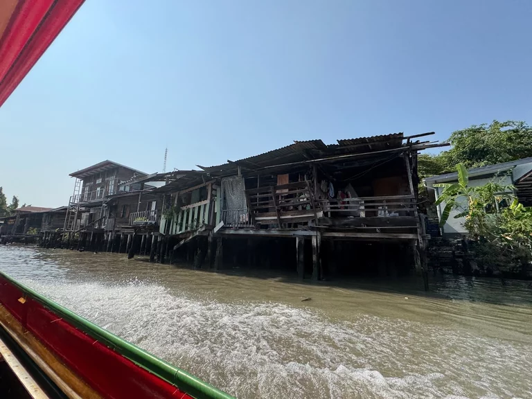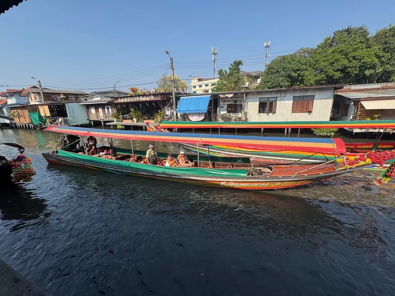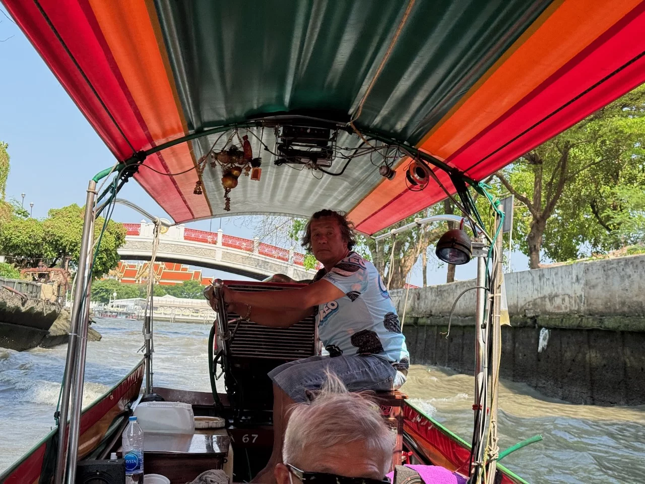 Mit der MRT (U-Bahn) ging es dann zunächst zur Anlegestelle am Fluss Chao Phraya, wo die traditionellen Longtail-Boote bereits für die erste Erkundung von Bangkok vom Wasser aus auf uns warteten. Durch verschiedenen Kanäle führte der Weg vorbei an Tempeln und eindrucksvollen Gebäuden. Aber wir passierten auch immer wieder armselige Häuser, die direkt an das Kanalufer grenzen und einen Eindruck des Lebens abseits von Wohlstand und Reichtum vermitteln. Irgendwie erinnerte uns das an die Diskrepanzen zwischen Arm und Reich, die wir auf unserer Indien-Reise 2015 gesehen haben. Es wird interessant sein zu sehen, wie das normale Leben der Thailänder außerhalb Bangkoks wohl aussieht.