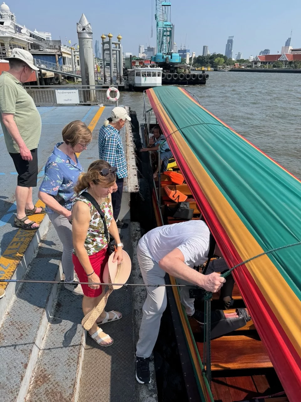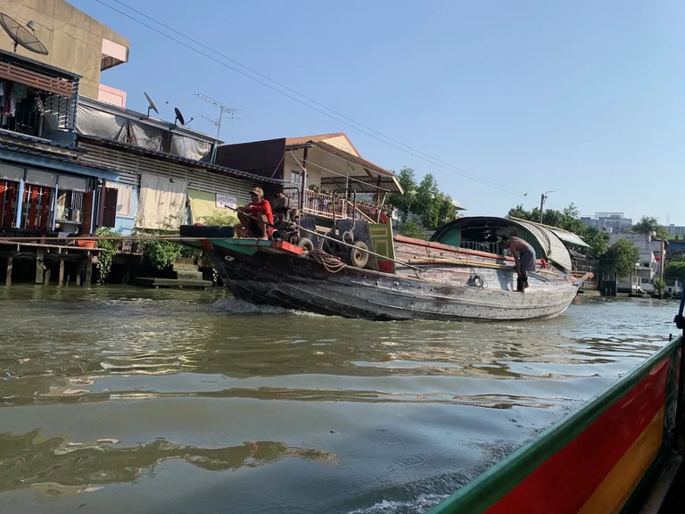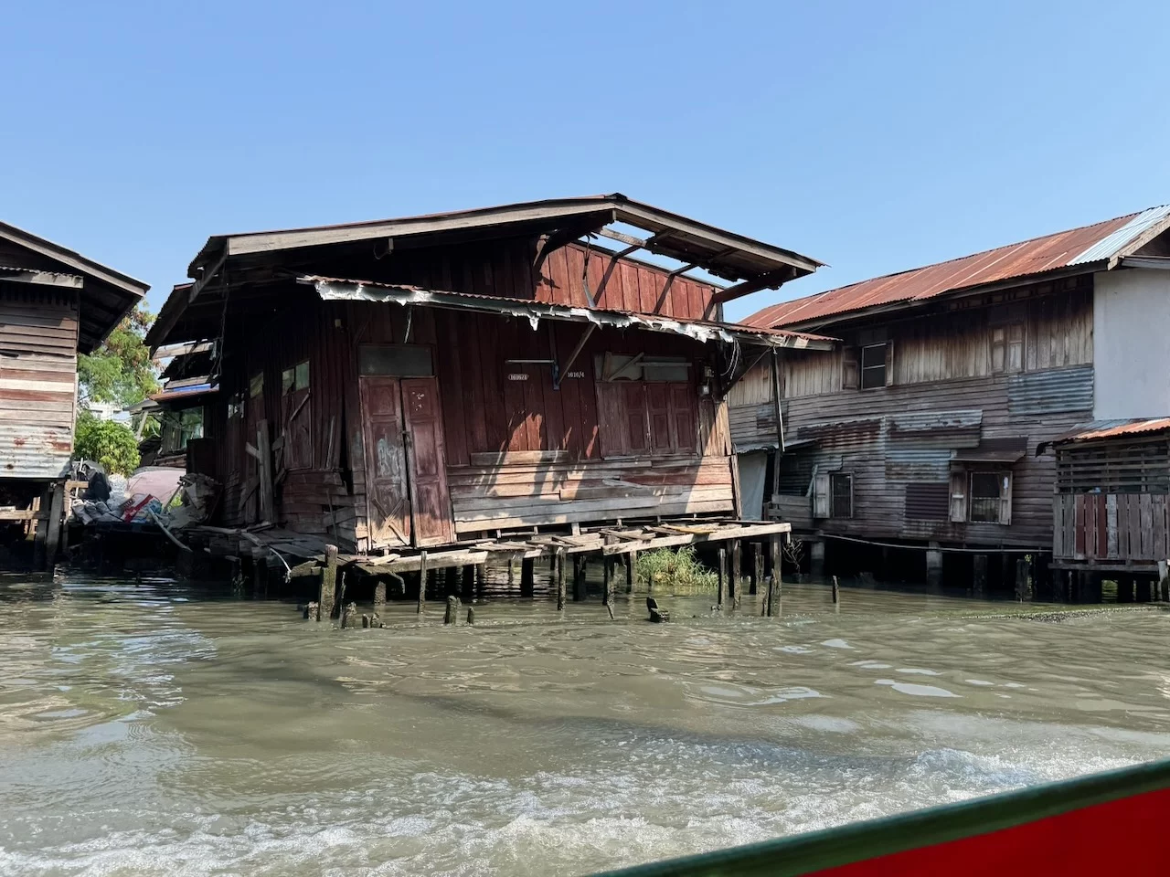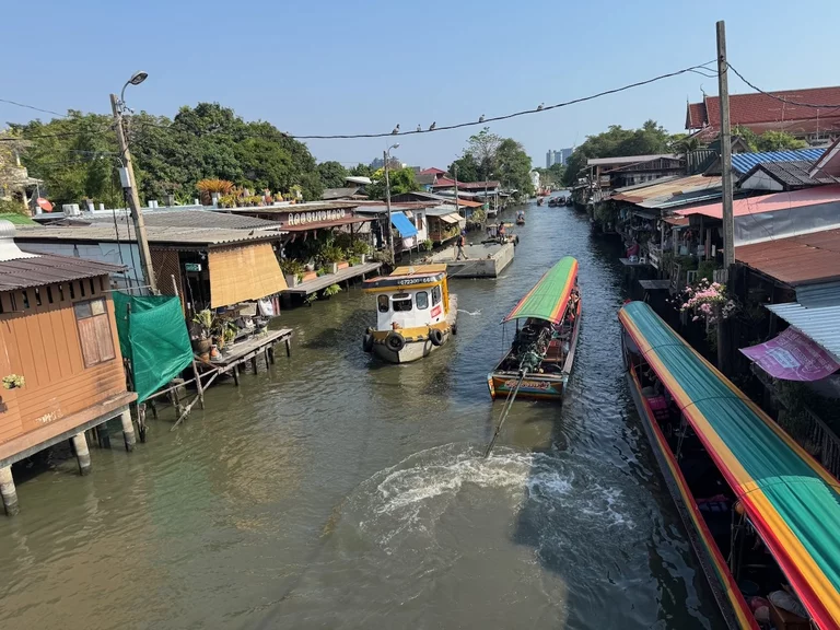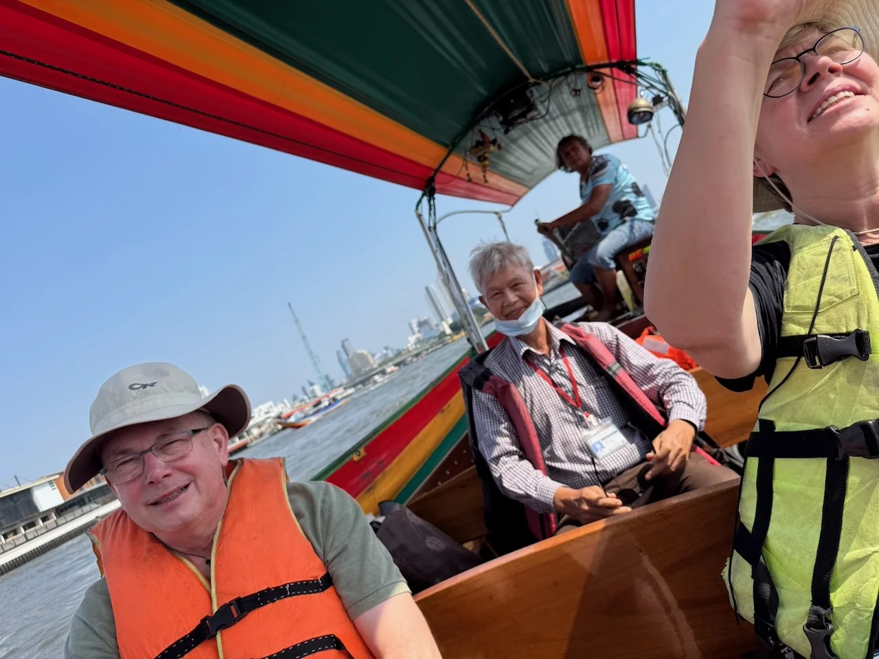 Mit der MRT (U-Bahn) ging es dann zunächst zur Anlegestelle am Fluss Chao Phraya, wo die traditionellen Longtail-Boote bereits für die erste Erkundung von Bangkok vom Wasser aus auf uns warteten. Durch verschiedenen Kanäle führte der Weg vorbei an Tempeln und eindrucksvollen Gebäuden. Aber wir passierten auch immer wieder armselige Häuser, die direkt an das Kanalufer grenzen und einen Eindruck des Lebens abseits von Wohlstand und Reichtum vermitteln. Irgendwie erinnerte uns das an die Diskrepanzen zwischen Arm und Reich, die wir auf unserer Indien-Reise 2015 gesehen haben. Es wird interessant sein zu sehen, wie das normale Leben der Thailänder außerhalb Bangkoks wohl aussieht.