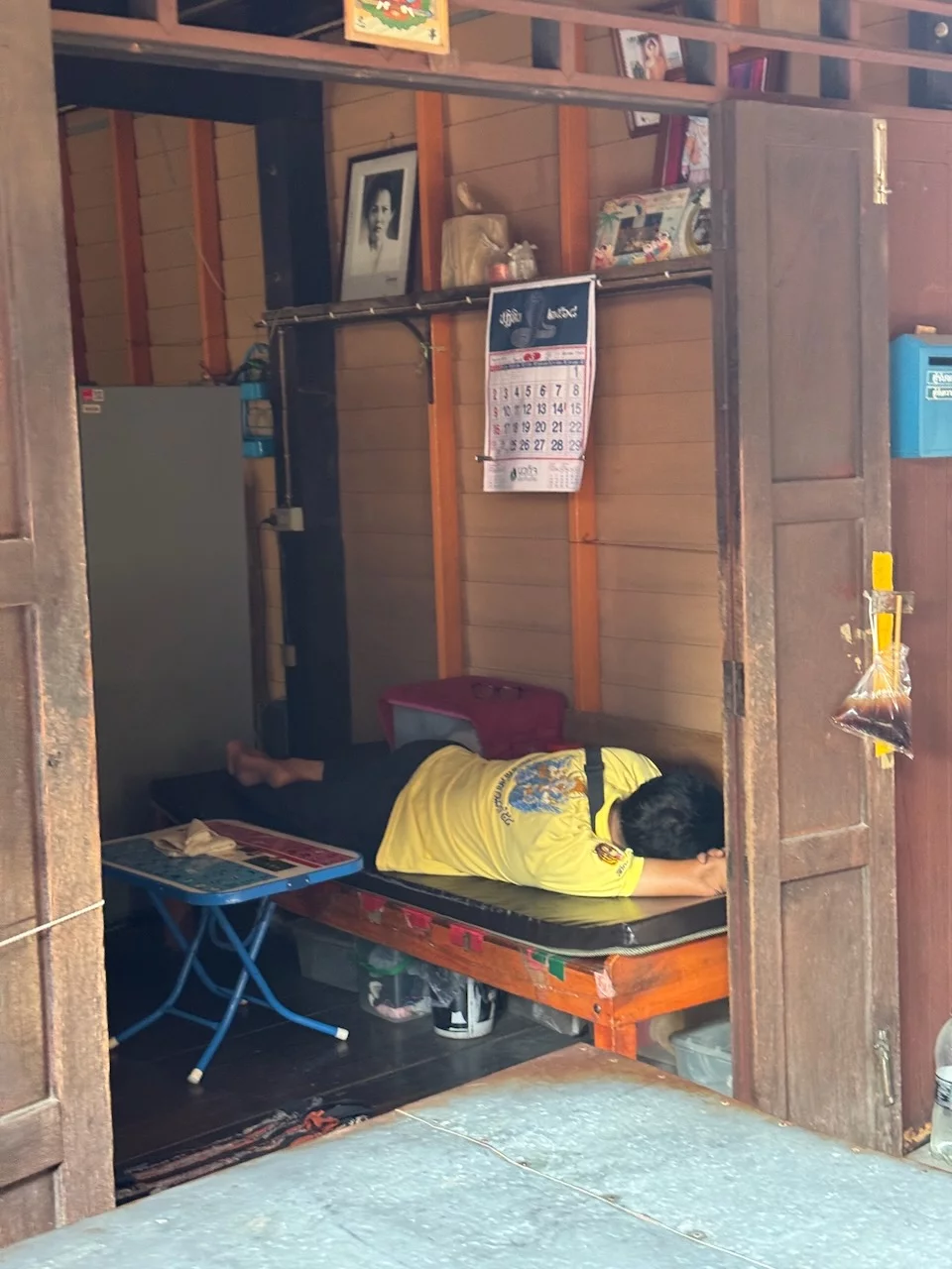 Durch schmale Gassen mit kleinen Geschäften ging es anschließend zurück in Richtung Fluß. Ein schlafender Mann auf der Holzbank in seinem Laden ließ darauf schließen, dass die Nachfrage heute wohl nicht besonders groß war.