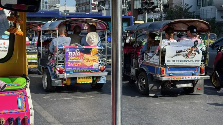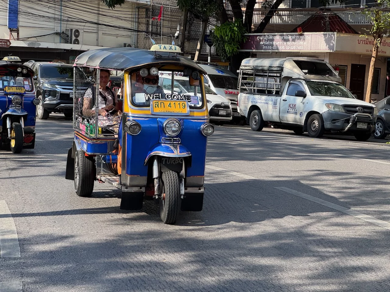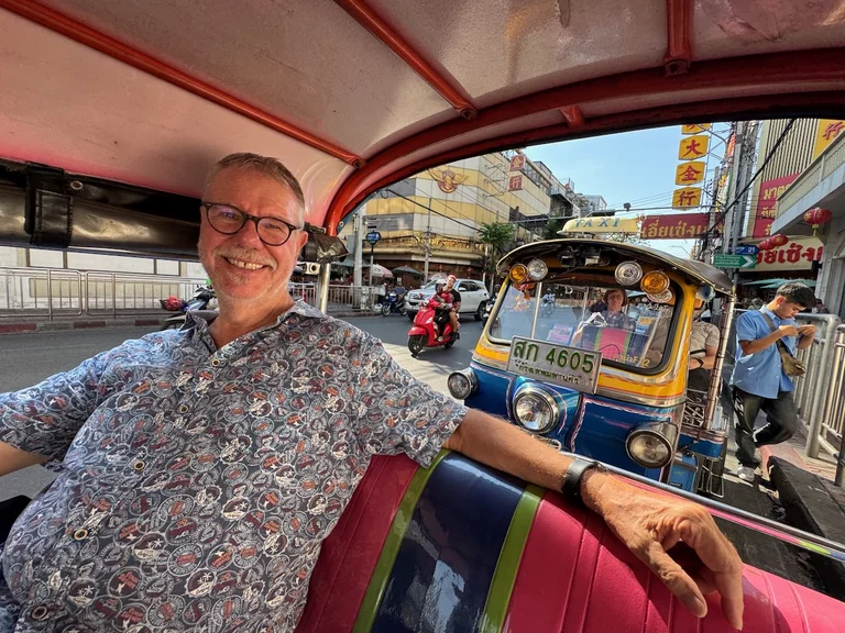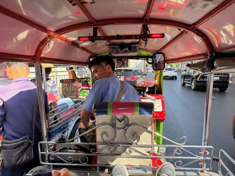 Nach einem ereignis- und lehrreichen Tag stand noch ein Punkt auf der Programmliste: Die Rückfahrt zum Hotel mit einem TuK TuK durch den Feierabendverkehr von Bangkok.