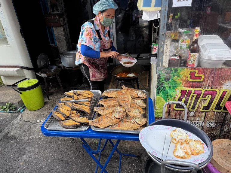 Der erste begegnete uns bereits auf dem Fußweg zur MRT kurz nach der ersten Garküche mit frisch gebratenem Fisch zum Frühstück. Nicht unbedingt etwas für europäische Nasen!!