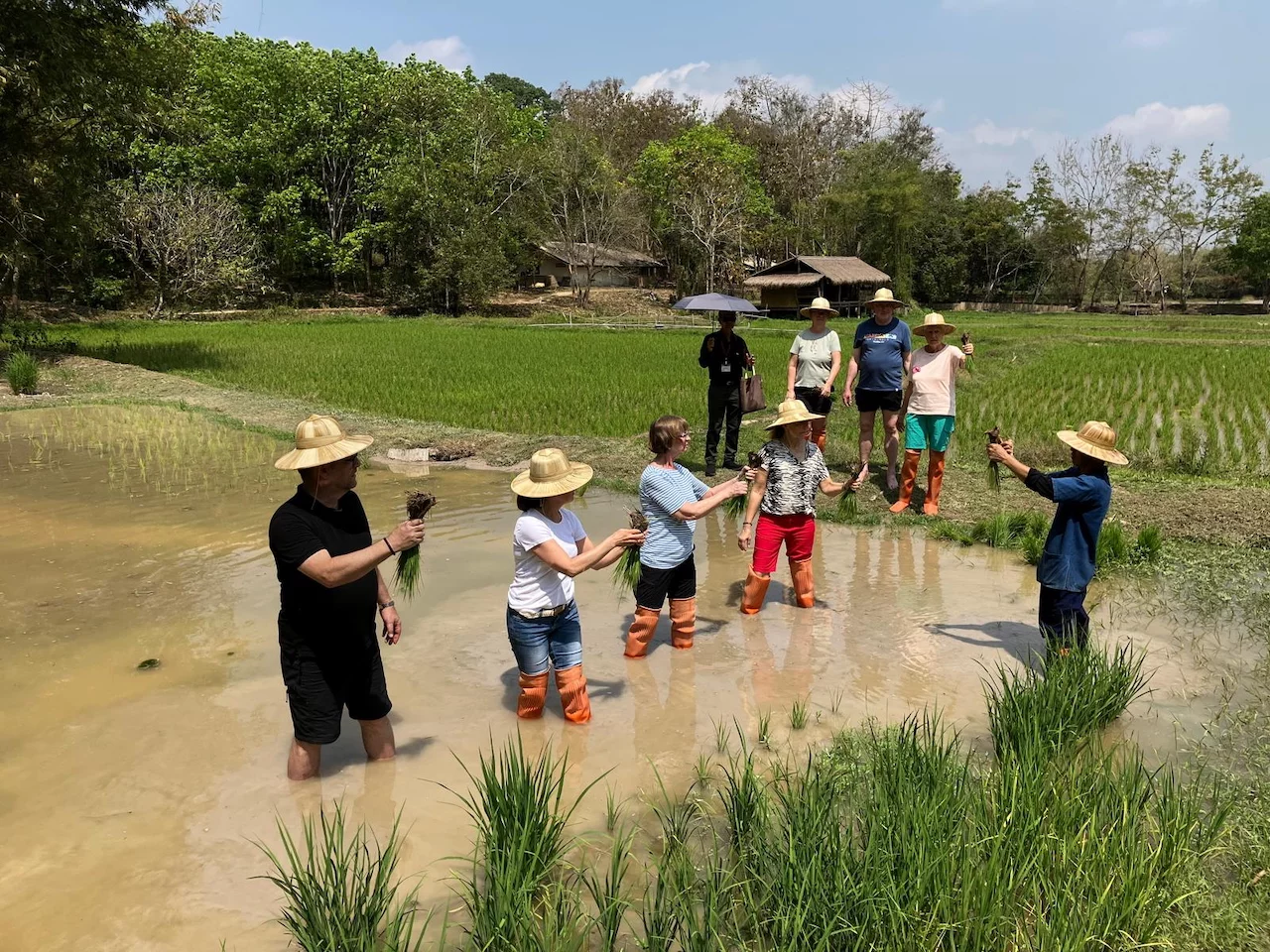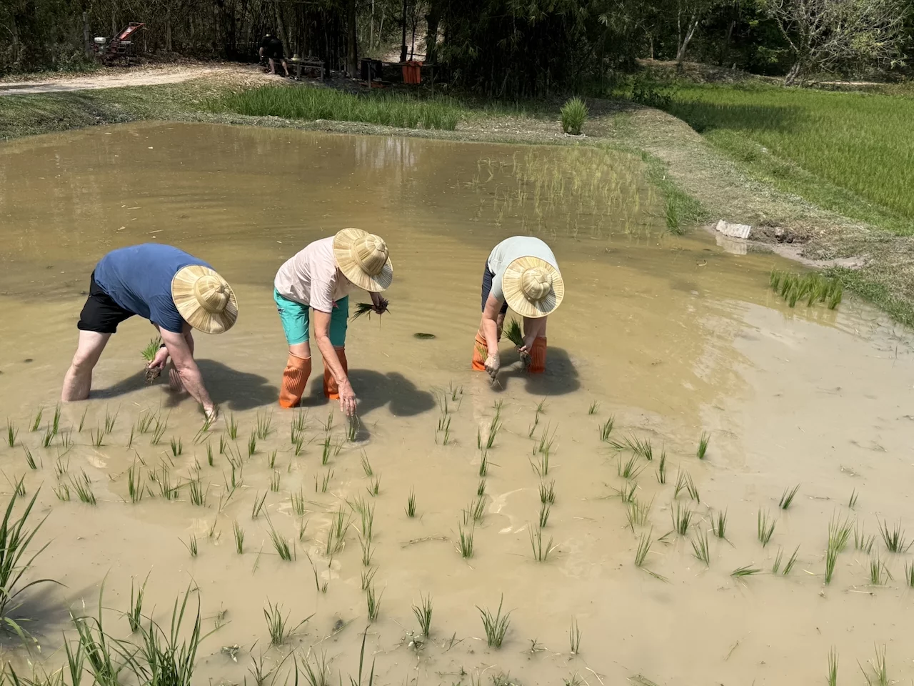 Der heutige Tag startete entspannt mit einem gemütlichen Frühstück. Dann ging es zu einer nahegelegenen Ahsa Farm, wo wir unsere Qualitäten als Farmer oder Farmerin unter Beweis stellen konnten. Bevor es an die Praxis ging, bekam jeder zunächst einen typischen Farm-Hut gestellt, denn das Ganze sollte ja möglichst authentisch wirken.