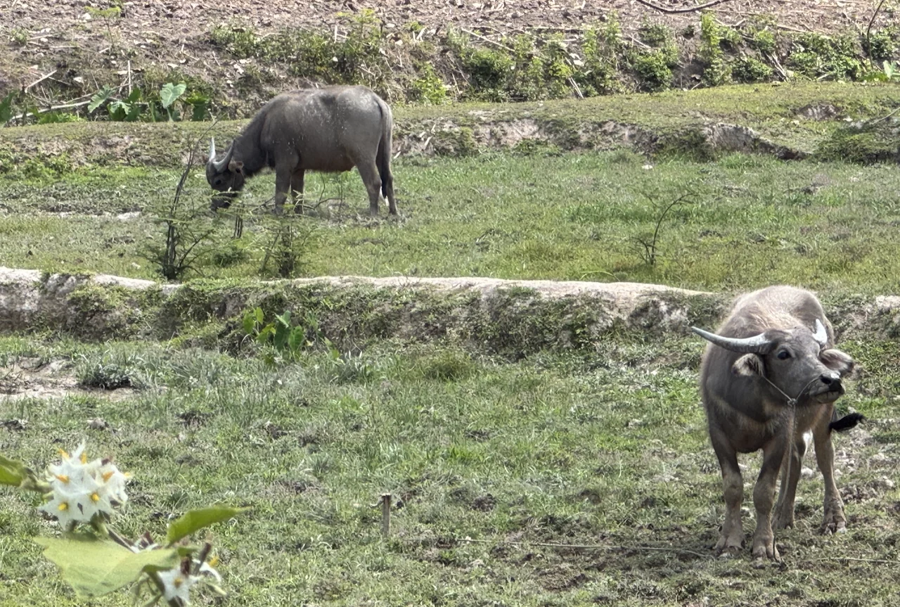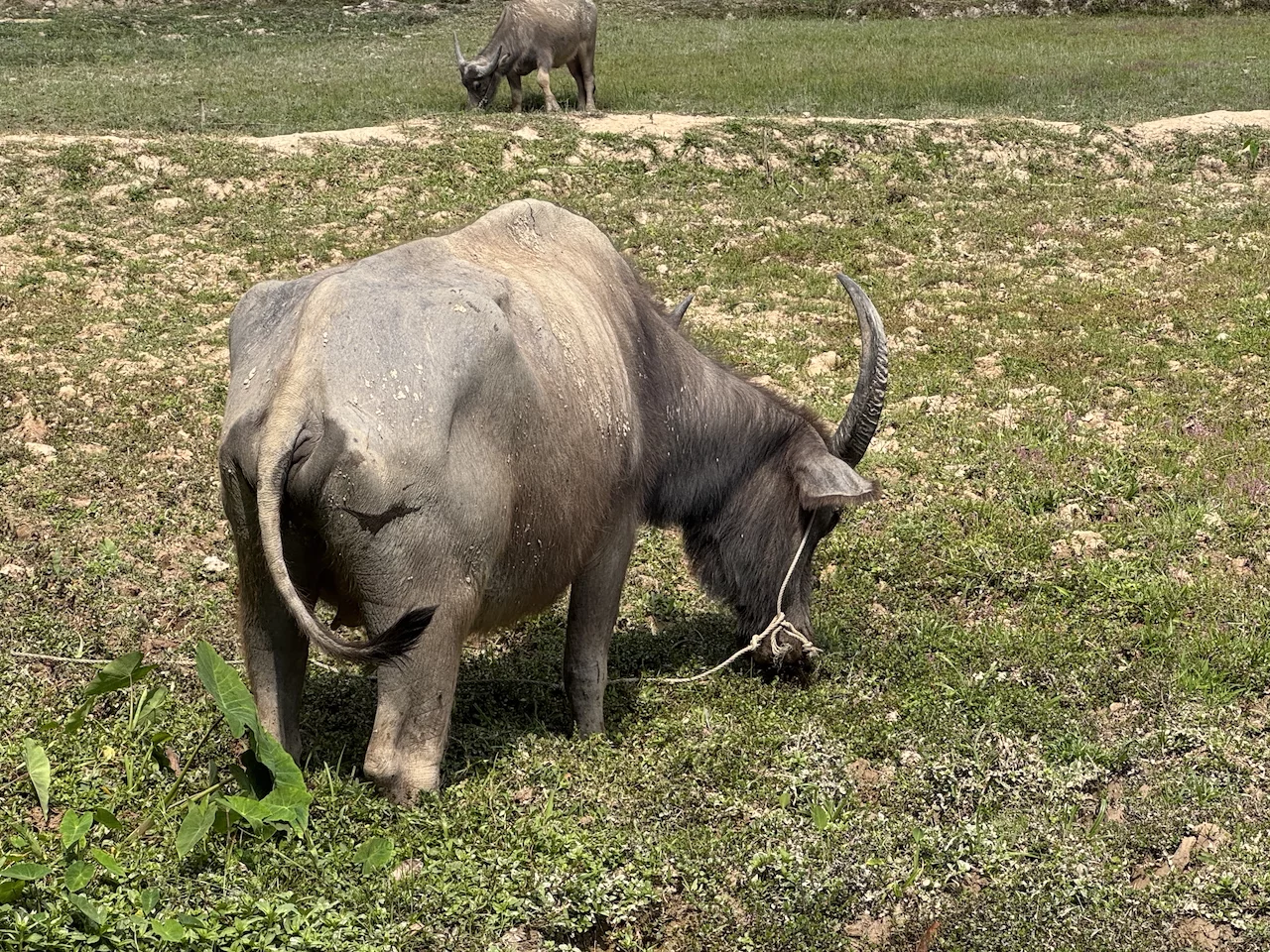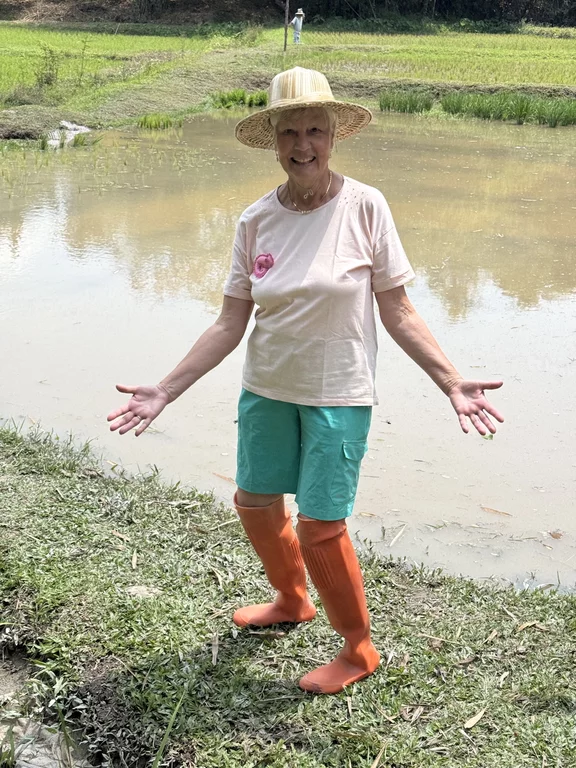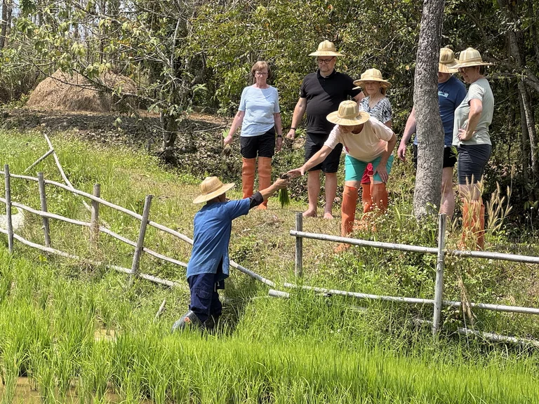 Bei einem Rundgang über das 32 Hektar große Anwesen gab's dann erst einmal einige Information über Reisanbau, Kautschukplantagen, exotische Früchte und die tierischen Mitbewohner/Mitbewohnerinnen der Farm. Es gab einiges zu bestaunen und zu lernen für uns.