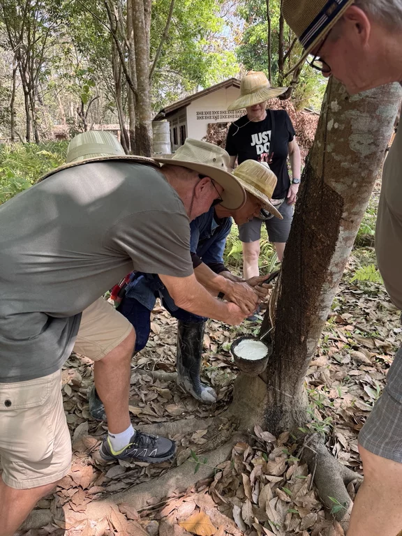 Bei der Fütterung der "Raubtiere", dem Reisanbau und der Kautschukgewinnung durften wir dann schließlich selbst Hand anlegen.