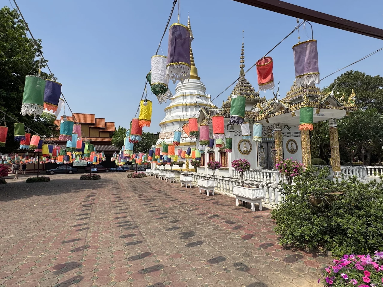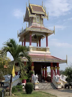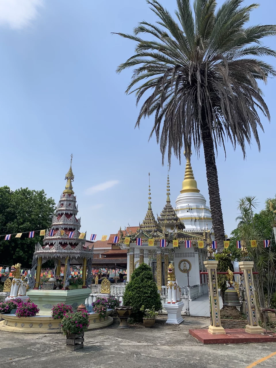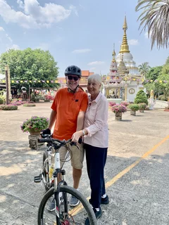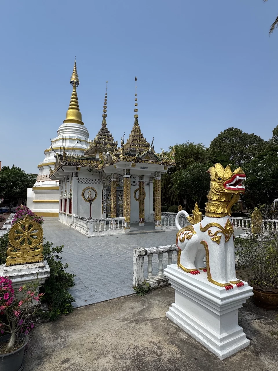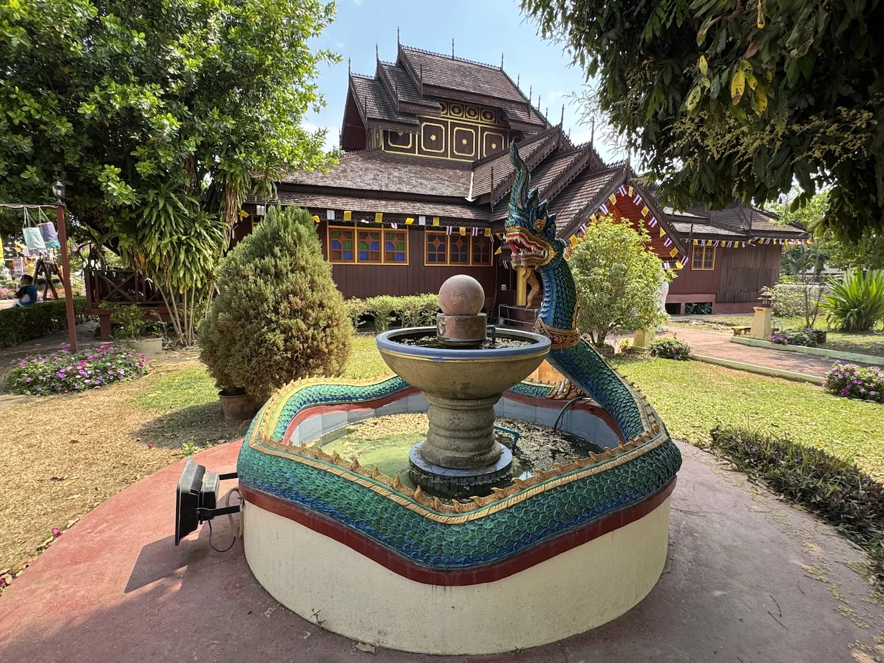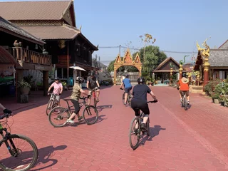 Das letzte Ziel unserer vormittäglichen Radtour war die Tempelanlage Wat Nantaram im Zentrum von Chiang Kham. Dieser Tempel ist ein Ort von großer kultureller Bedeutung und beeindruckt besonders durch seine Architektur im klassischen burmesischen Tai Yai-Stil.