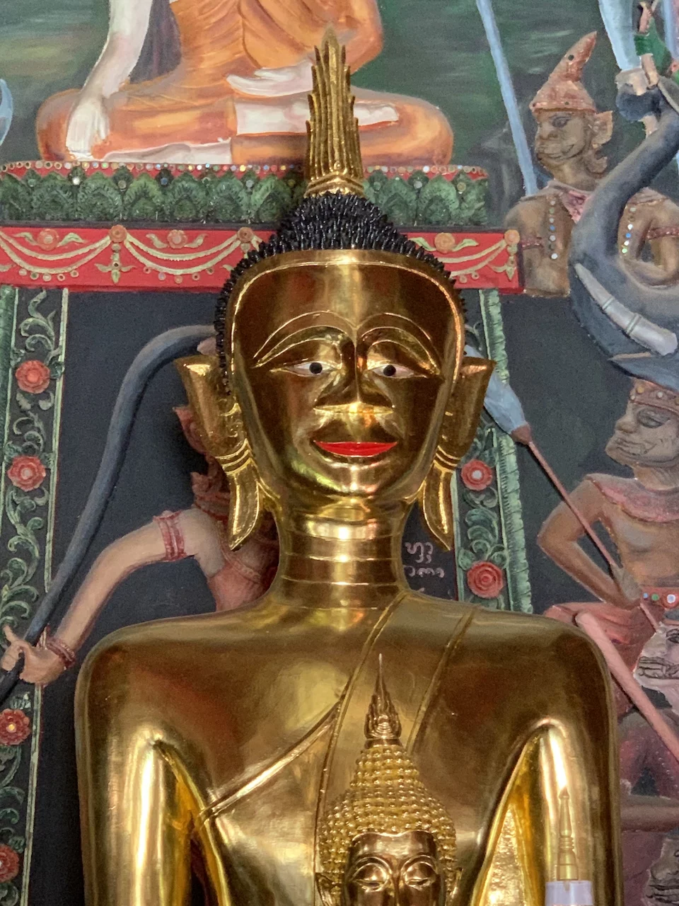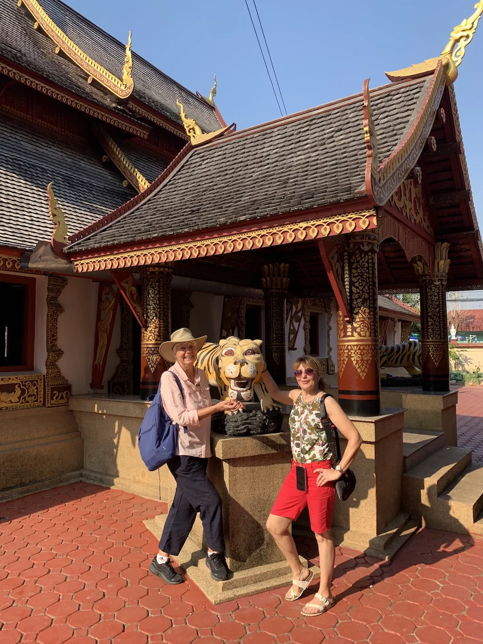 Tourguide Rico hatte diverse Stops eingeplant. Einer davon war die kleine Tempelanlage Wat Saen Mueang Ma. Birgit, Marion und Herr Müller hatten sich aufgrund der hohen Temperaturen entschieden, die Runde in einem der Kleinbusse zu absolvieren und erwarteten uns dort schon. Auch wenn diese Tempelanlage im Vergleich zu denen in Bangkok fast schon winzig ist, hat sie eine ganze Menge zu bieten, vor allem für die Augen.