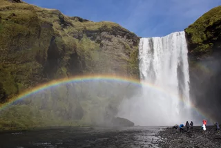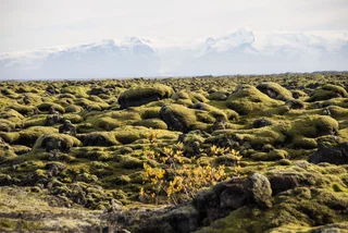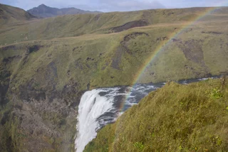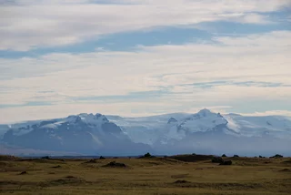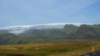 Gletschern, Flüssen begrünten Lavafeldern, Wasserfällen und