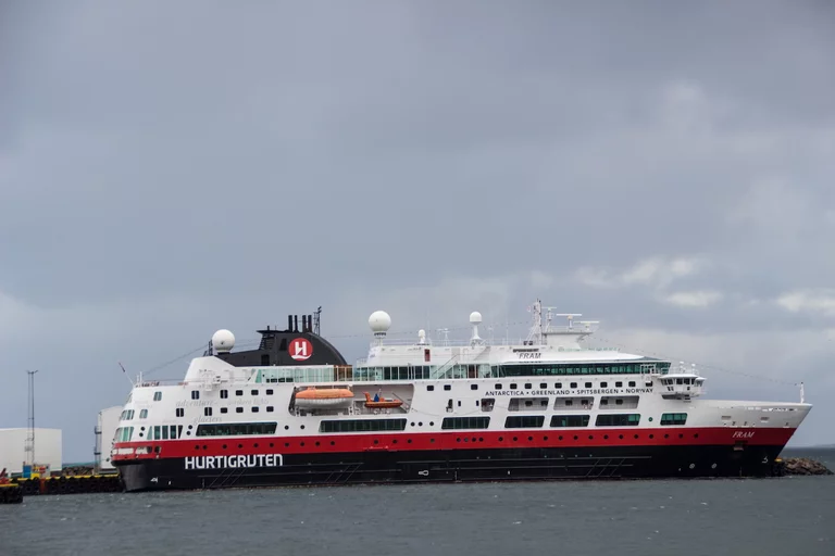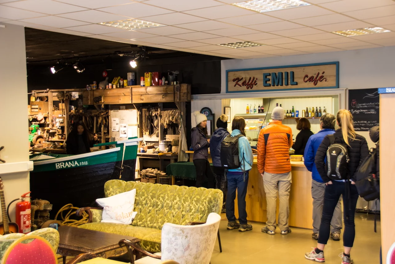 Frühstück gab's im Café Emil zusammen mit vielen anderen Touristen, zumeist junge Backpackers. In dem kleinen Hafen von Grundarfjordur lag am Morgen die "MS Fram", das Arktis-Expeditionsschiff der Hurtigruten-Linie aus Norwegen.