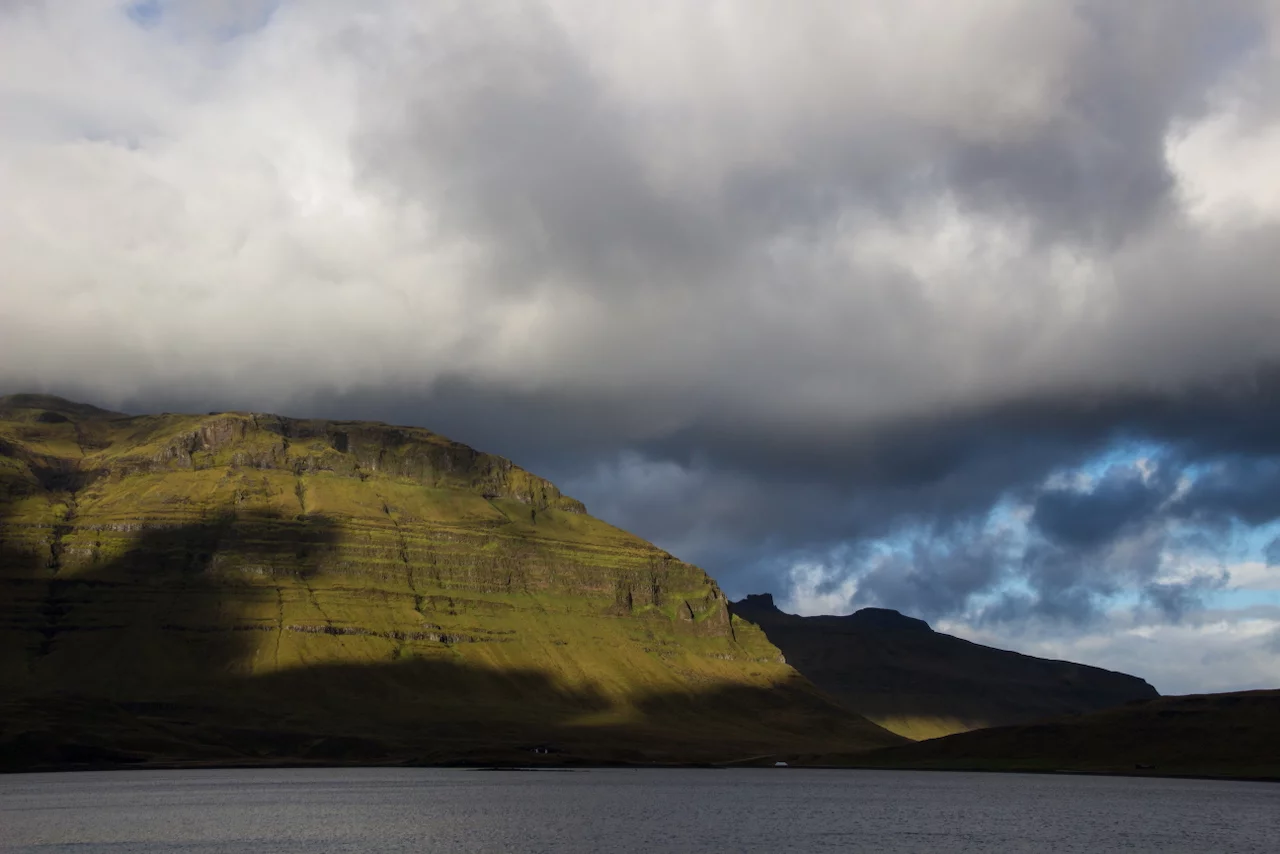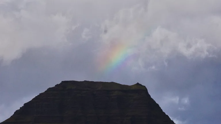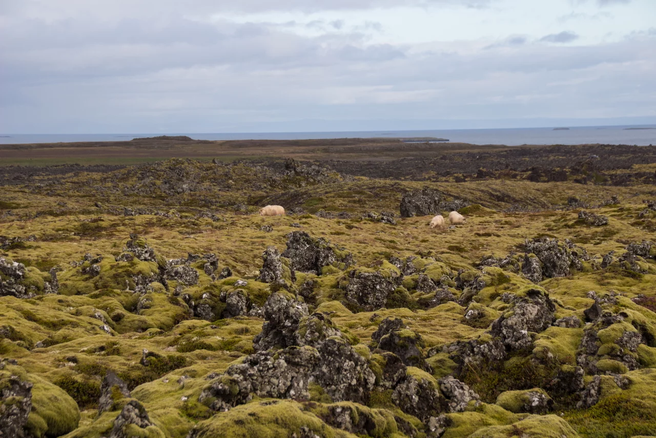 Der Morgen war zunächst noch ziemlich verregnet, doch dann wurde es von Stunde zu Stunde besser. Immer wieder brach die Sonne durch die Wolken und wir bekamen mehr und mehr Eindrücke des sonnigen Islands serviert. Dieses Wechselspiel zwischen Wolken, Sonne und gelegentlichen Regenschauern verleiht dieser faszinierenden Landschaft fast schon etwas Mystisches. Regenbögen die auf Bergspitzen enden, Felswände deren regennasse Oberfläche im Licht der Sonne glänzt, moosbedeckte Lavafelsen die aussehen wie flauschige Kissen, Schafe die sich auf rotbraunen Wiesen tummeln, deren Halme sich im Wind wiegen und die von dem durchbrechenden Sonnenlicht regelrecht zu leuchten scheinen.